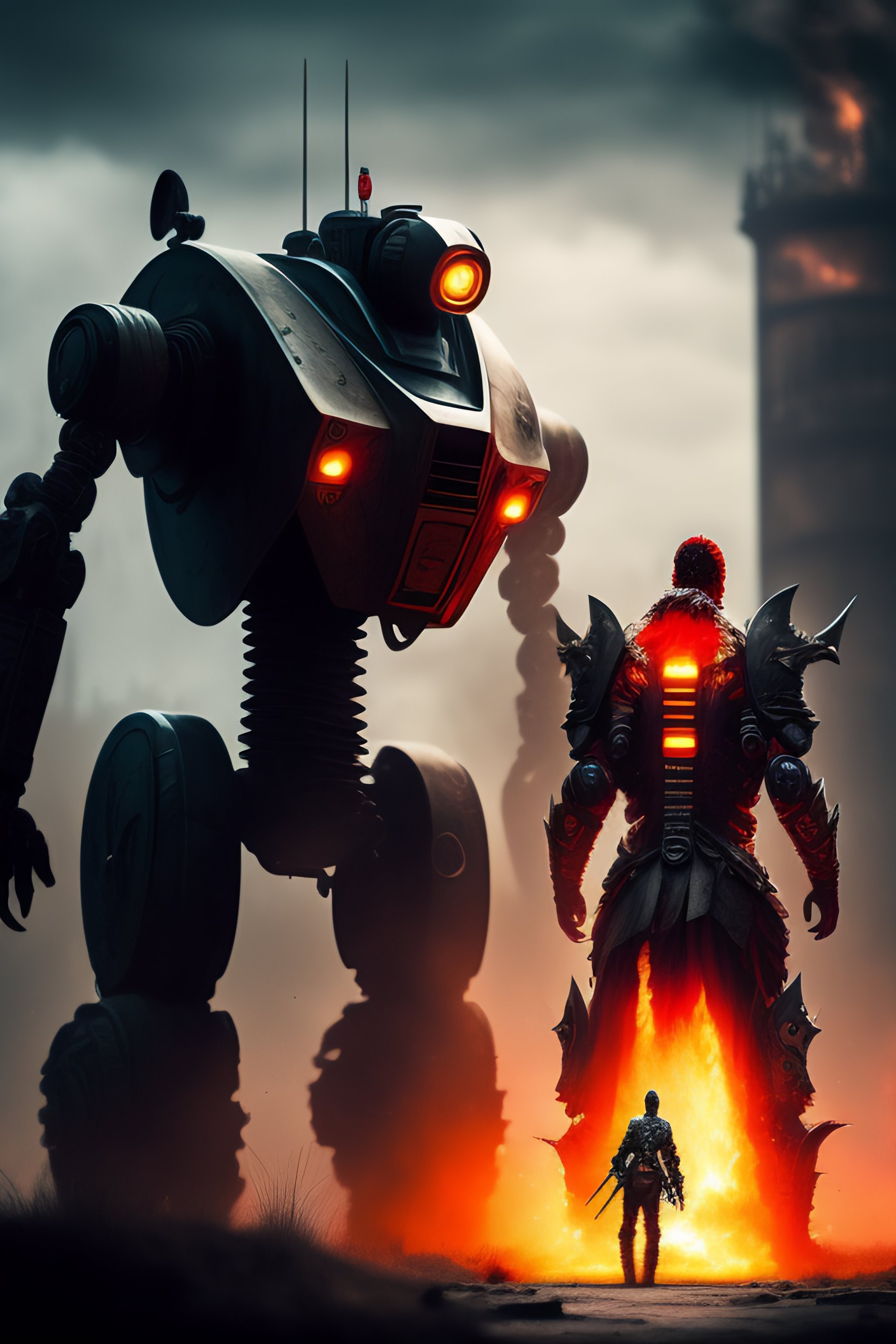 A zombie fighting a robot