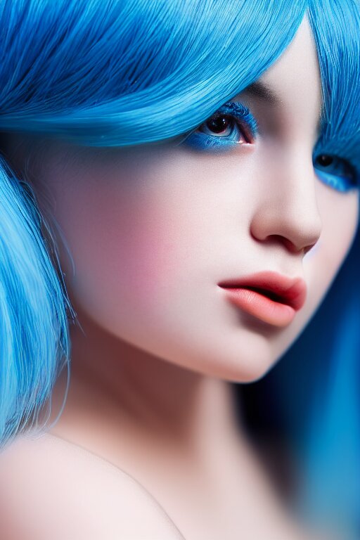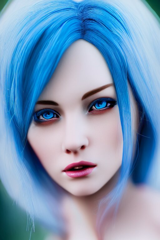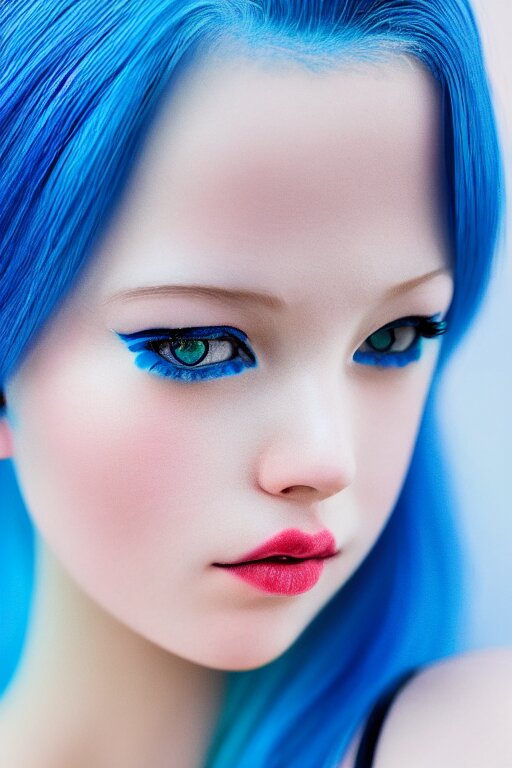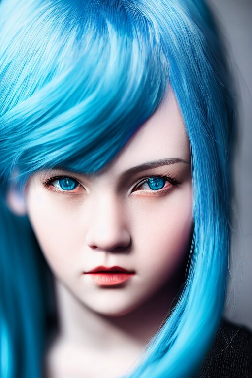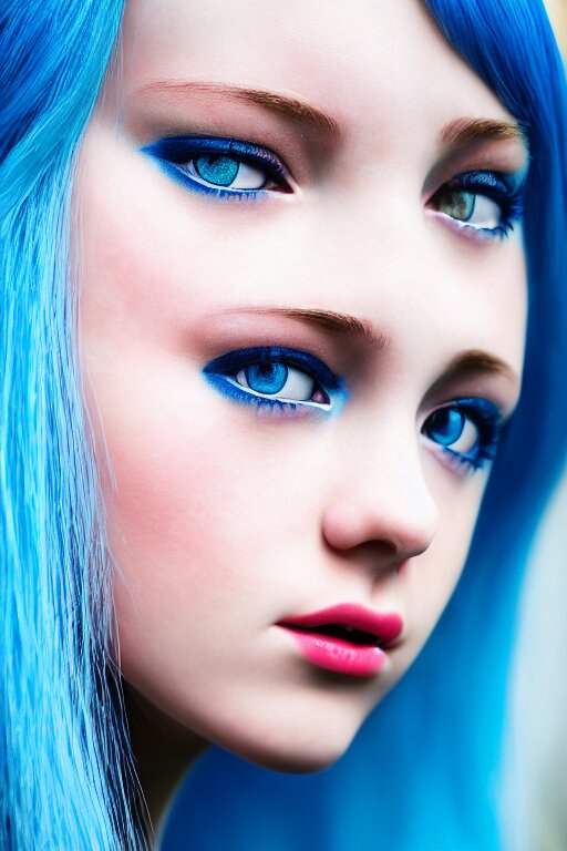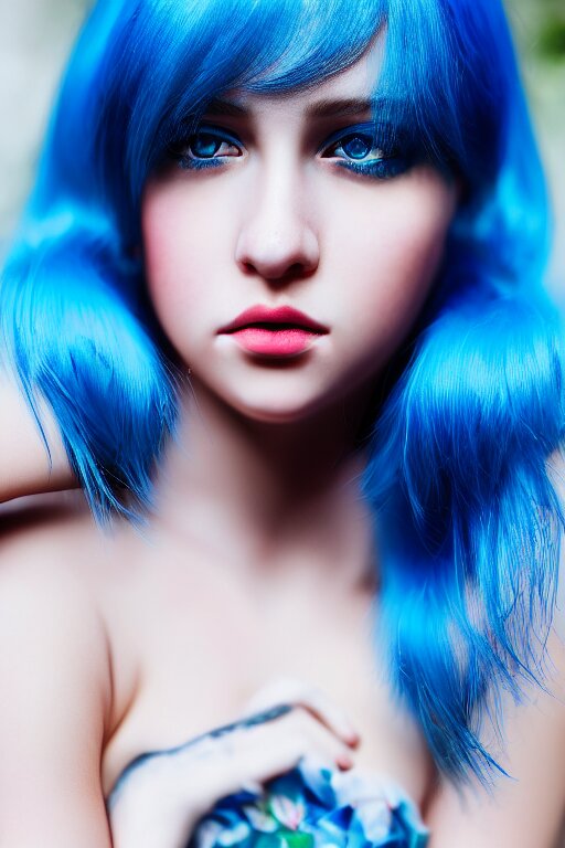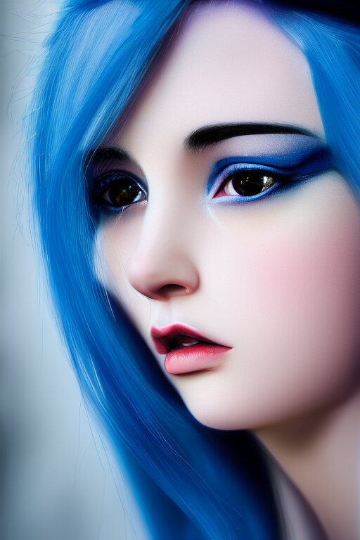 Hd photograph of a pretty girl with blue hair, close up portrait, in the style of ilya kuvshinov, canon eos r 3, f / 1. 4, iso 2 0 0, 1 / 1 6 0 s, dramatic lighting, fantasy, intricate, elegant, highly detailed, lifelike, photorealistic, digital painting, bokeh, hdr, high resolution, artstation, concept art, smooth, sharp focus, art by krenz cushart and albert aublet