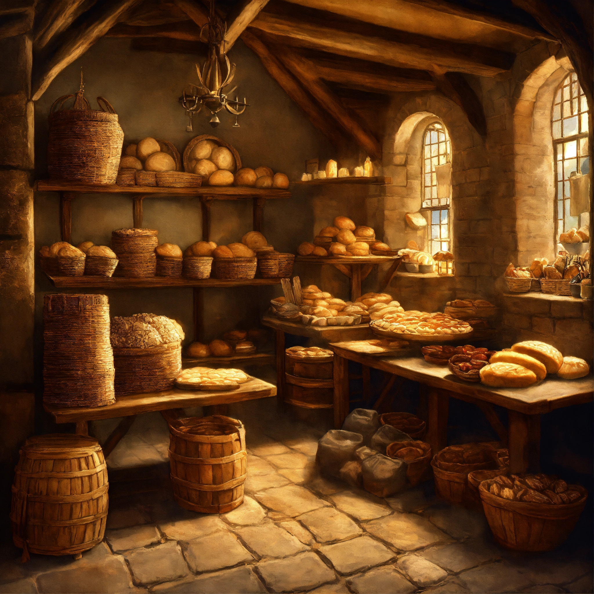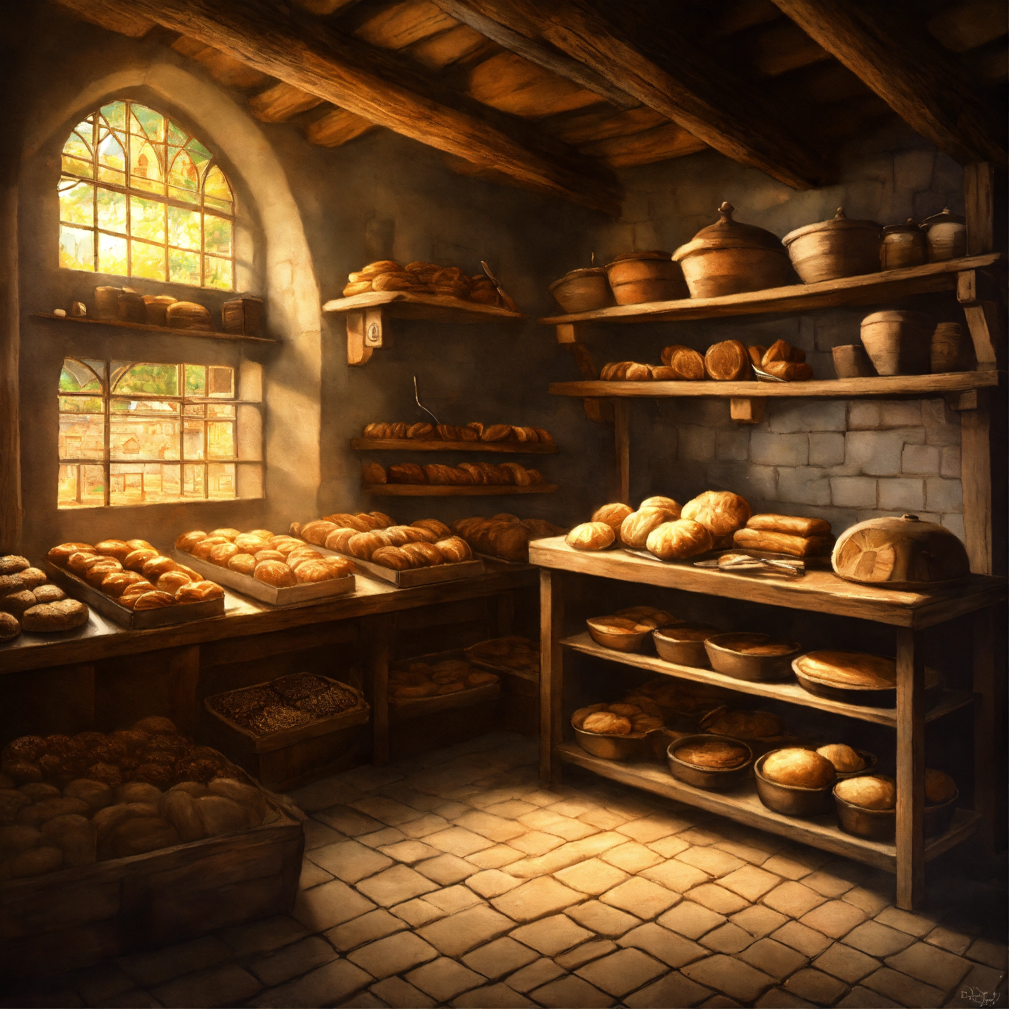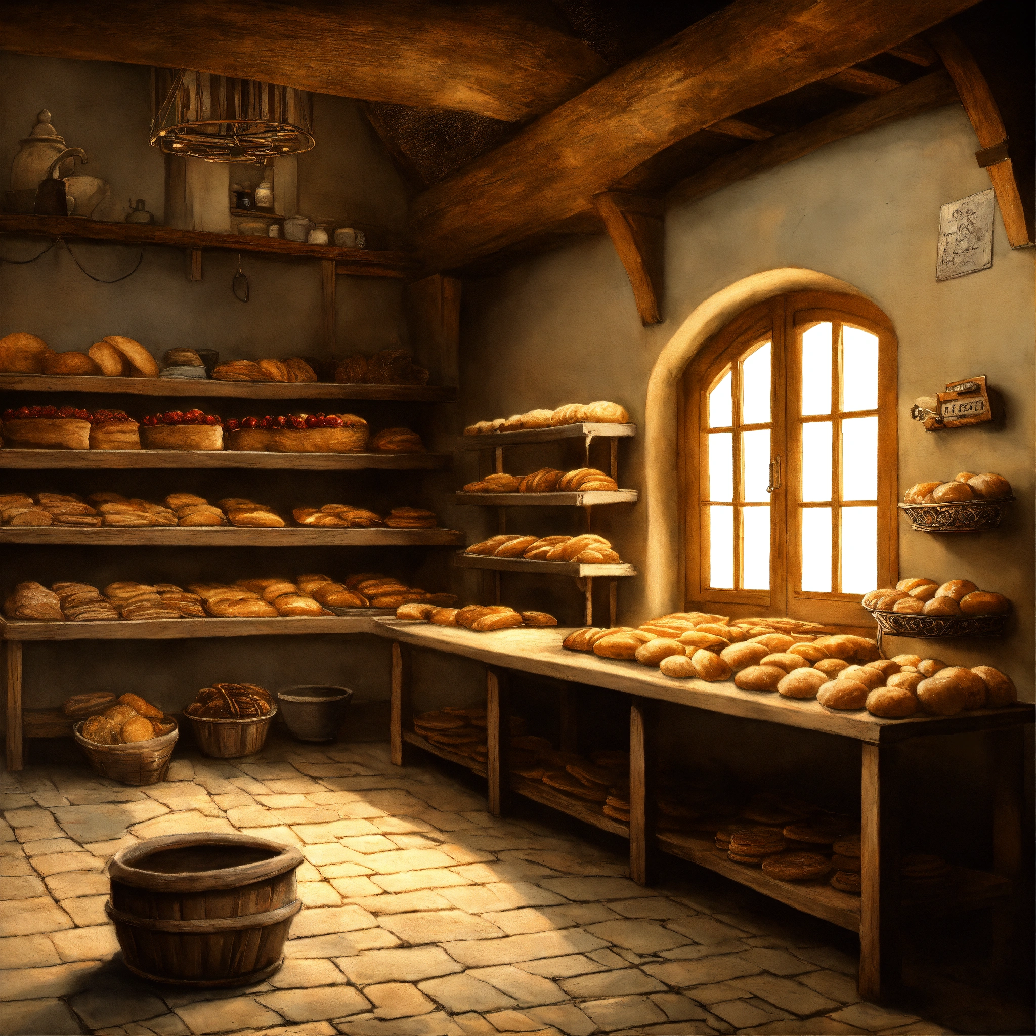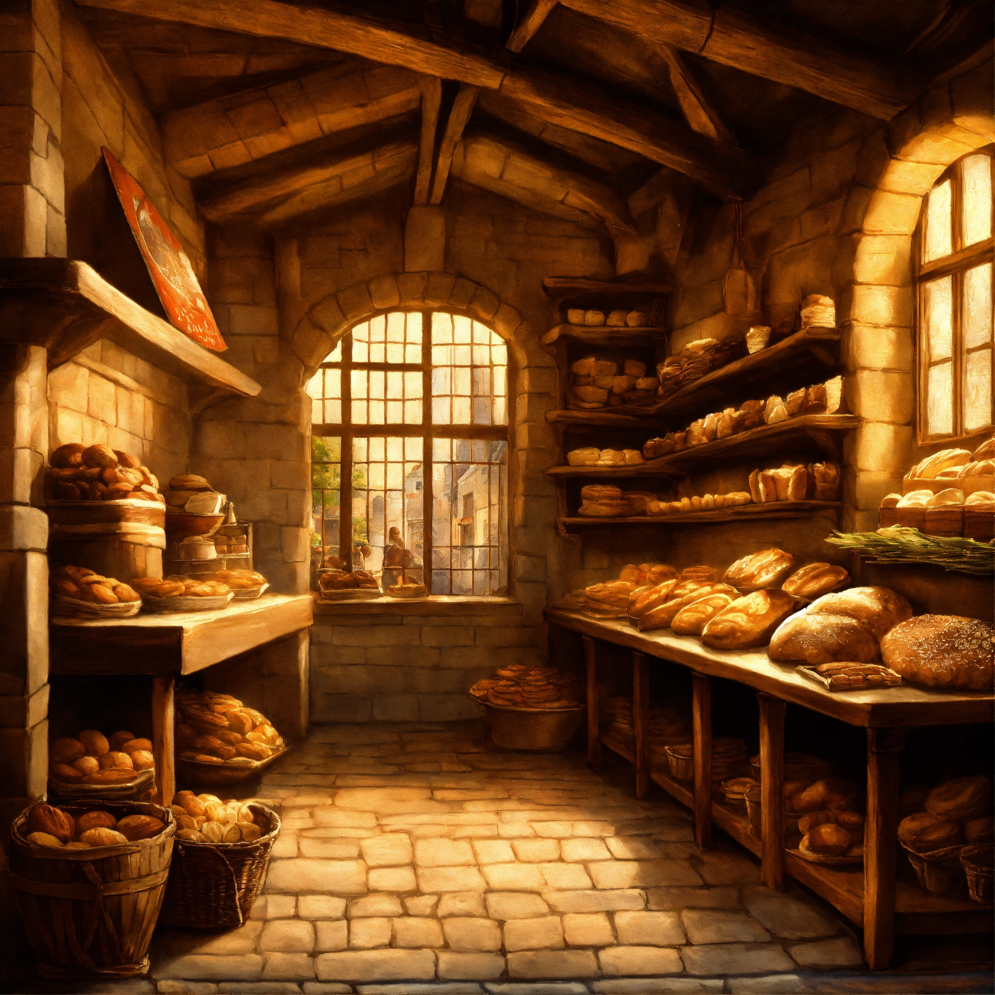 medieval pastry shop with a sales counter large interior morning brightness HD cartoon art
