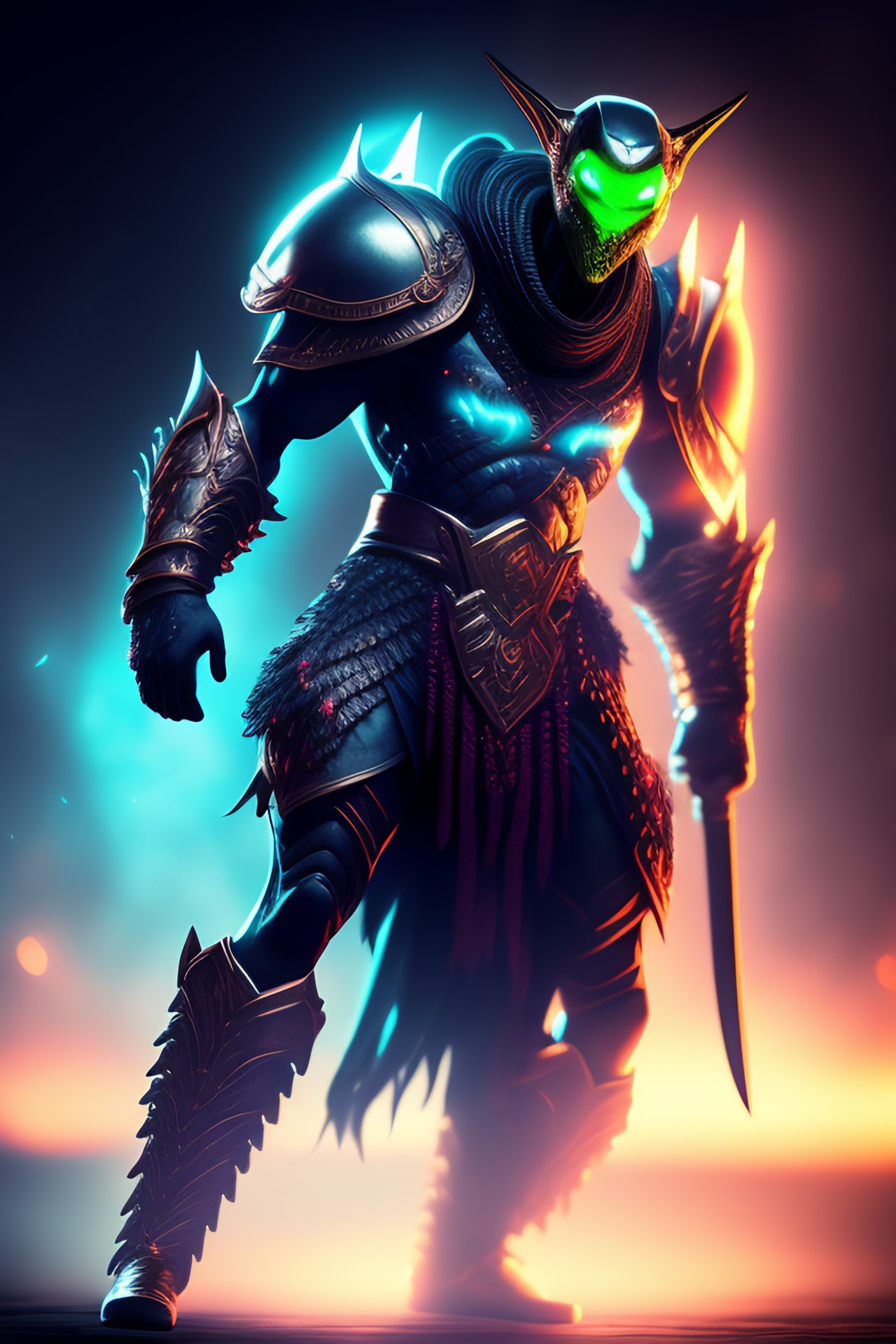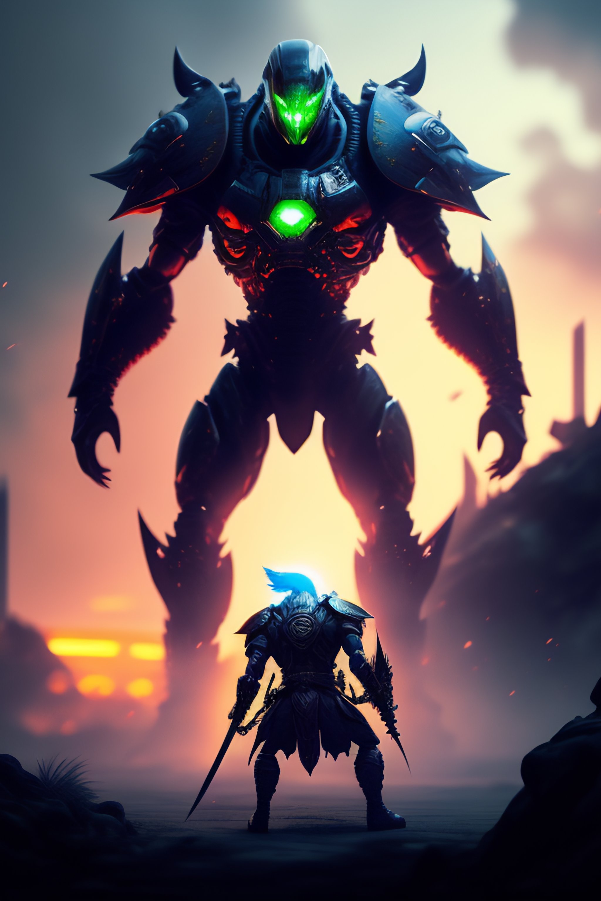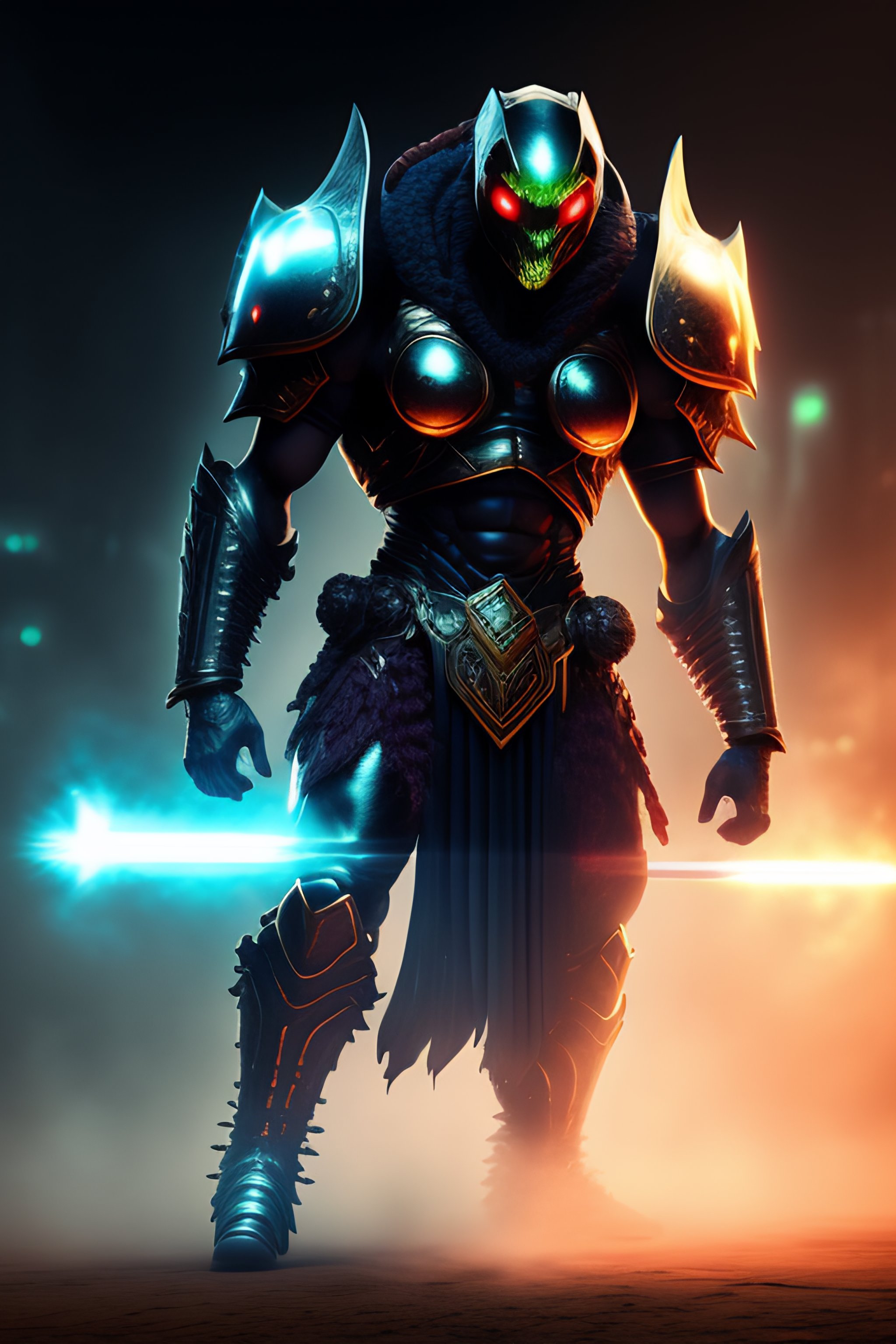 Create an image of a 'zombie' who is a warrior fighting against an alien in a futuristic arena, give the gladiator-alien a unique appearance and clothing and also give the opponent-alien unique features, feel free to add other elements such as futuristic weapons or backgrounds