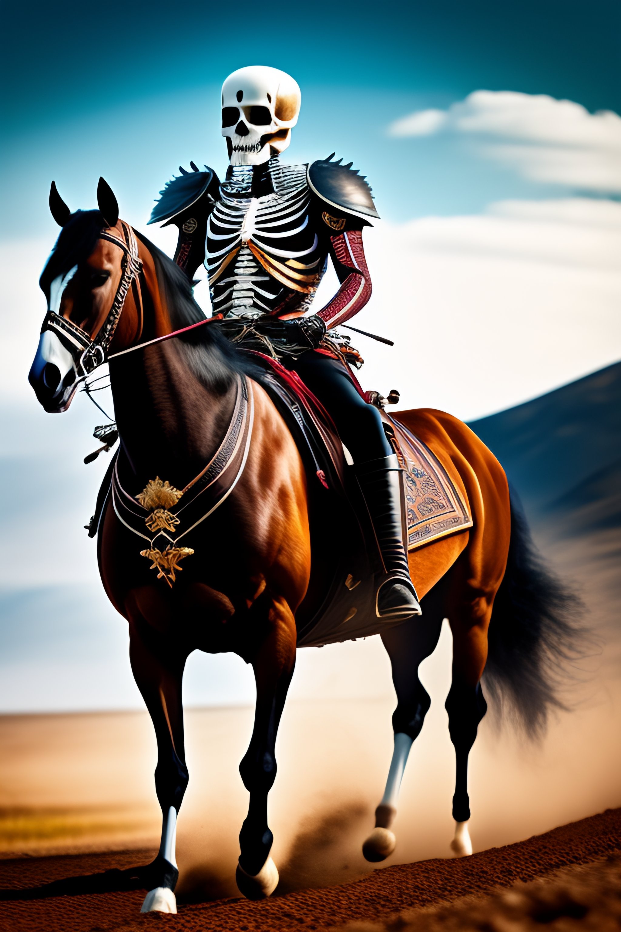 Skeleton warrior riding a skeleton horse