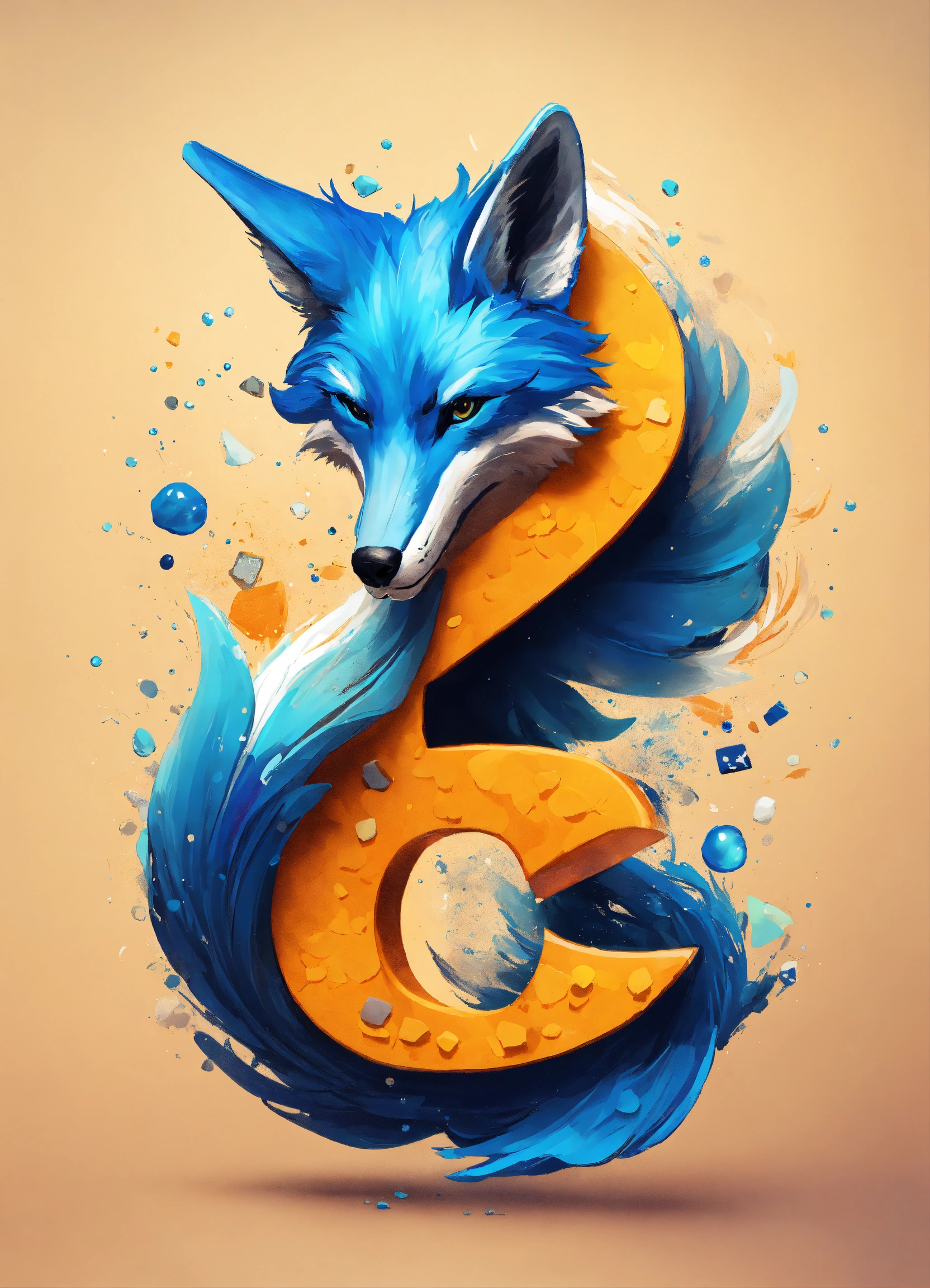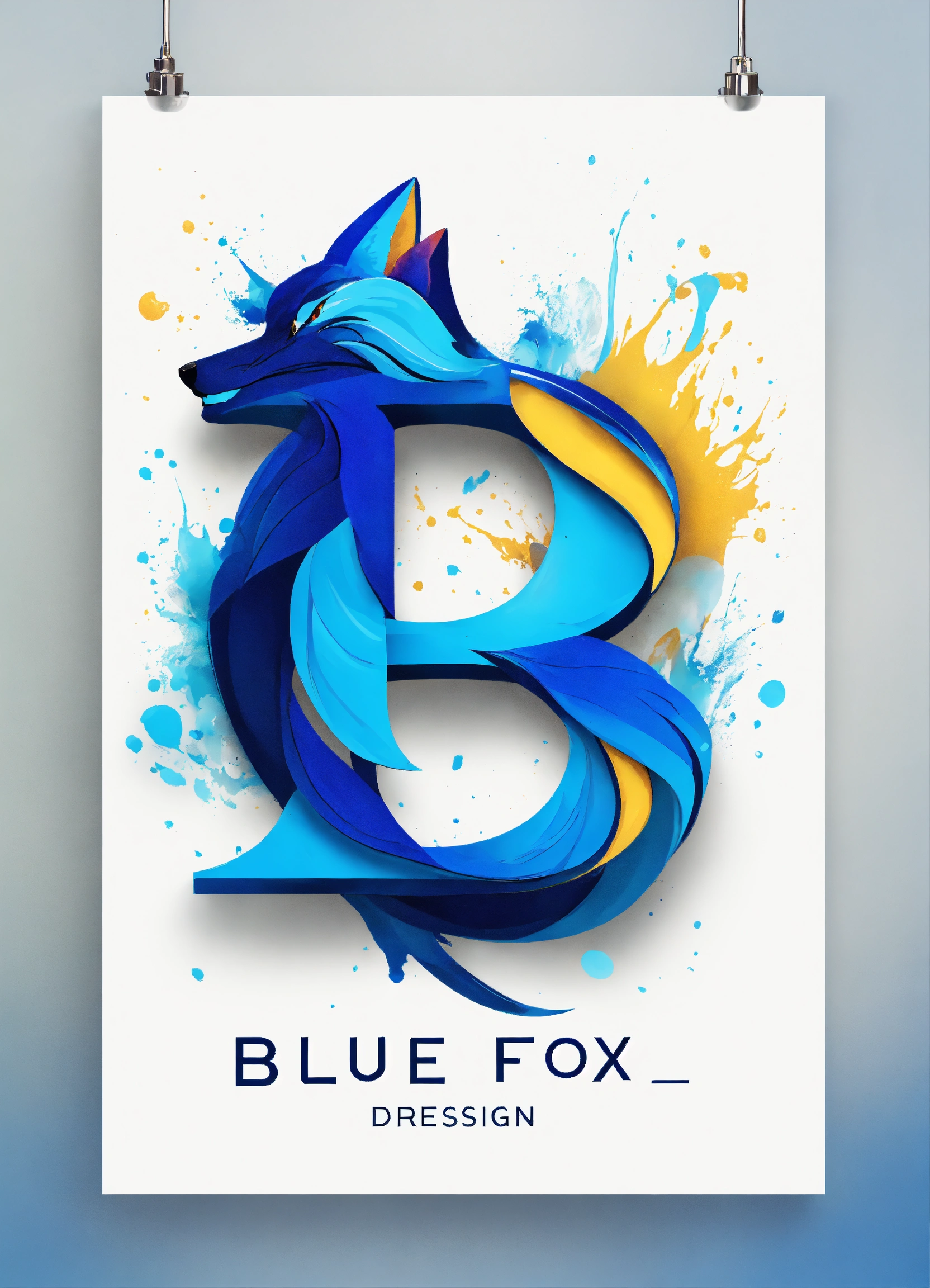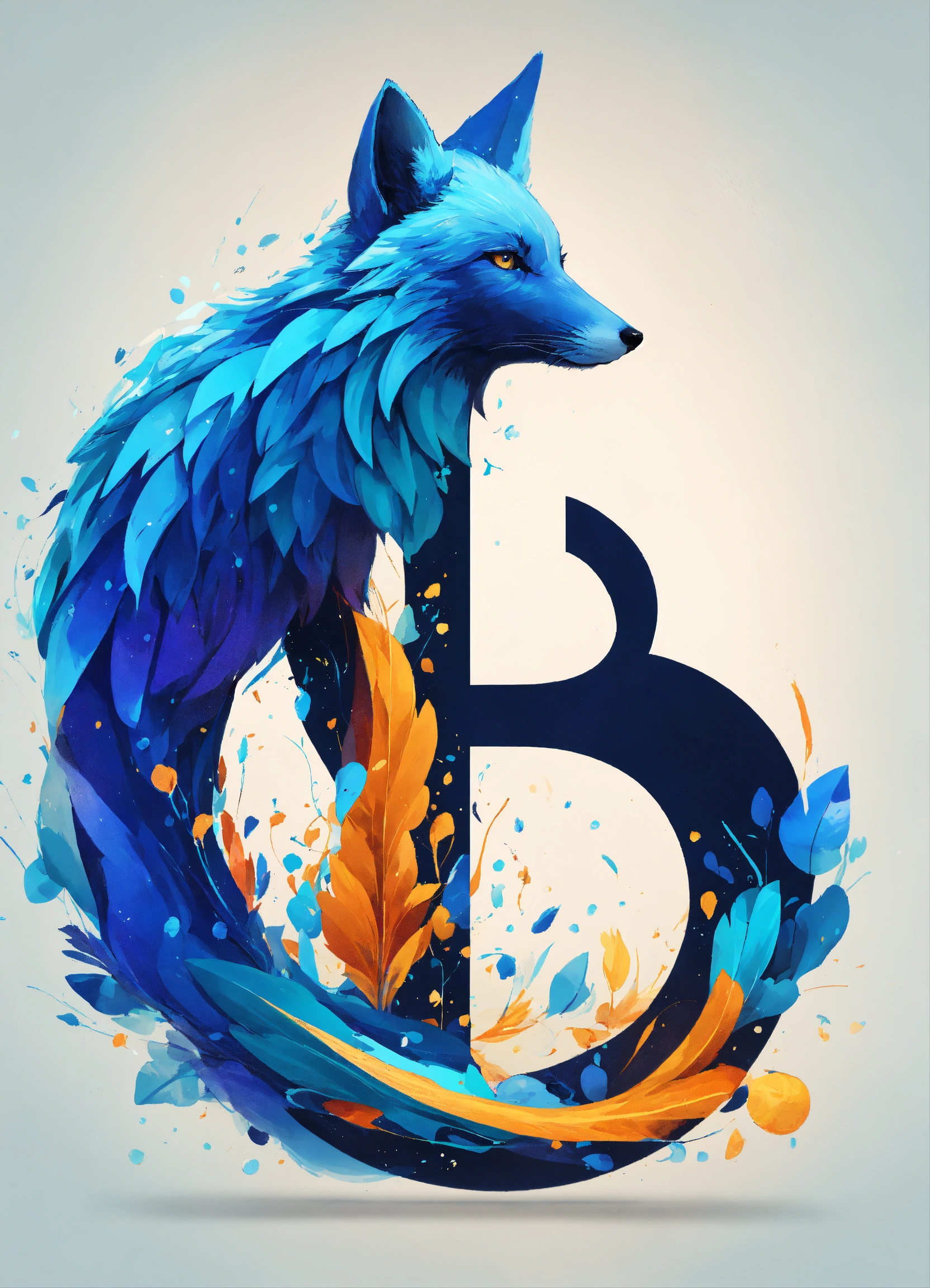 A stunning illustration logo for an design company, called blue fox design denuppercase letter b, vibrant, artistic style, splash art, beautiful, ux, ui, realistic
