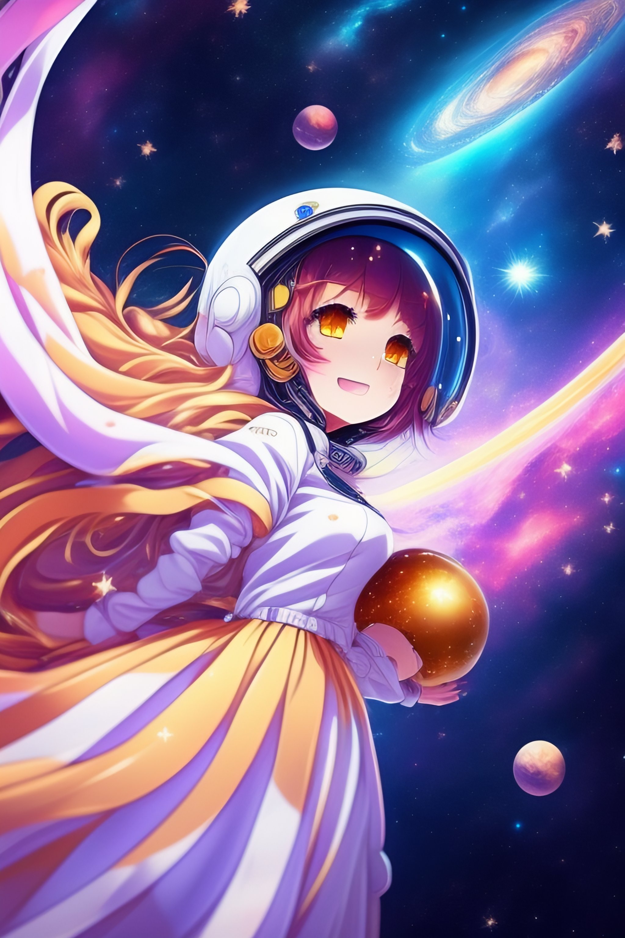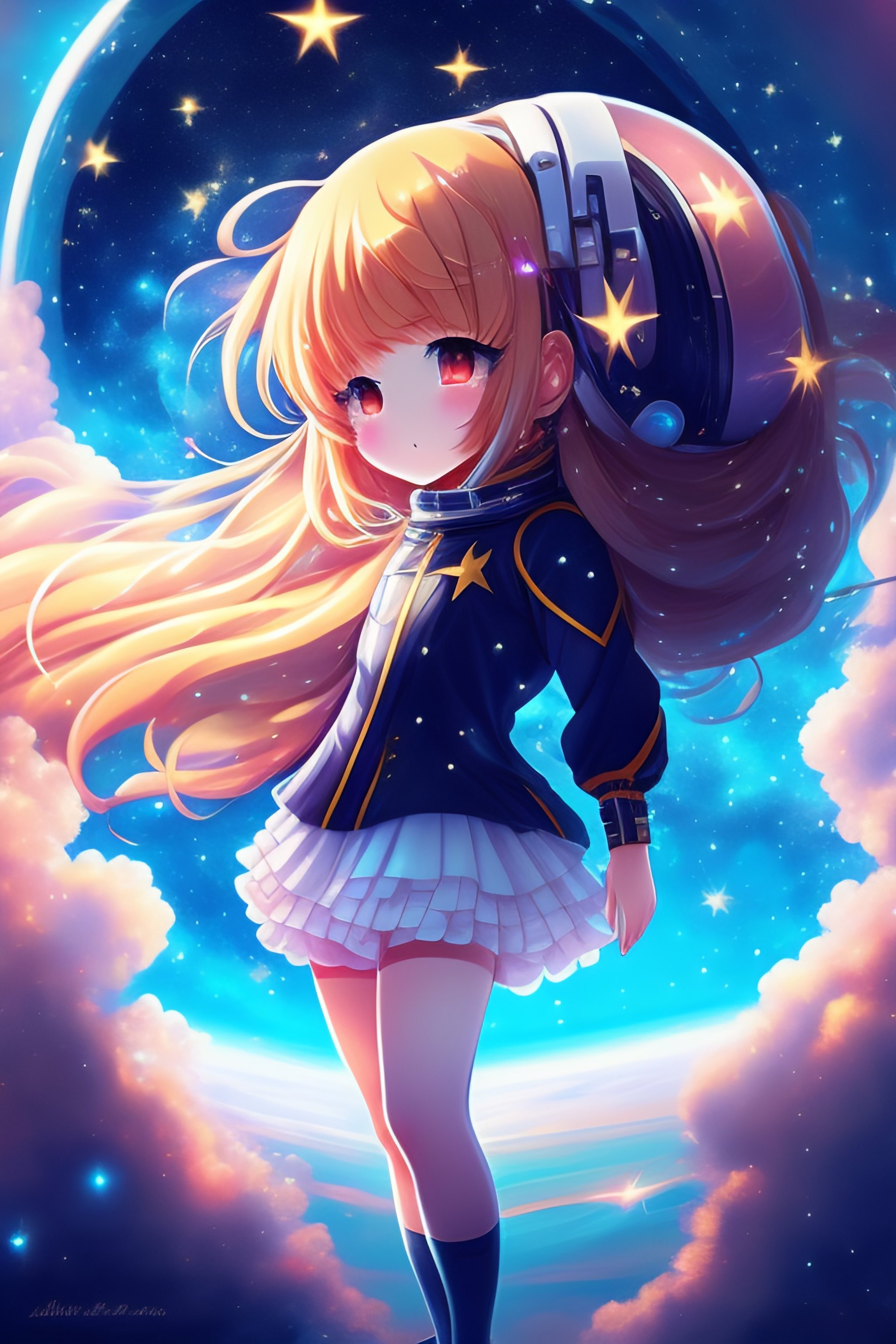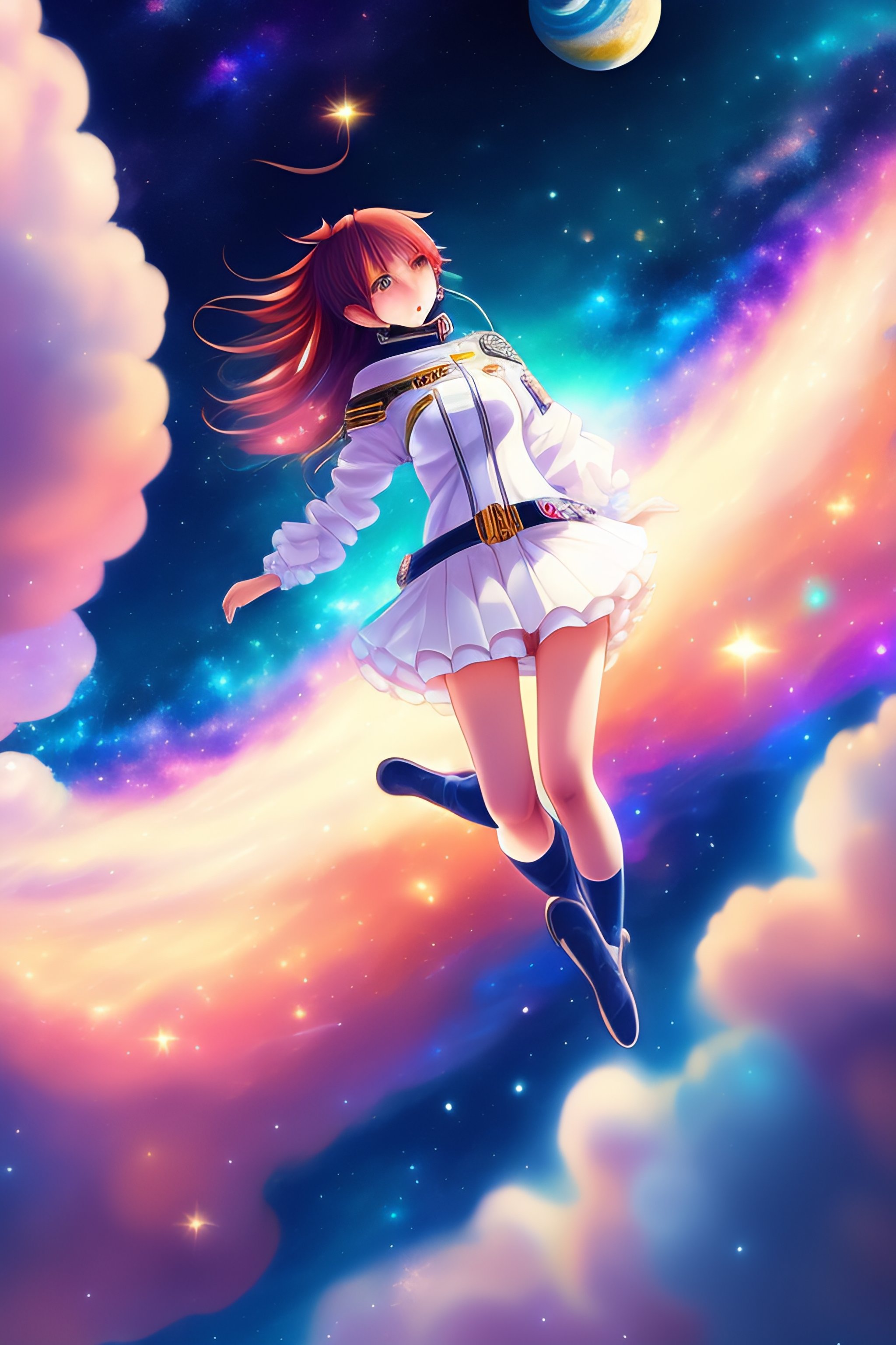 Anime girl falling in space, distant in space suit beautiful stars and galaxys full human digital art soft