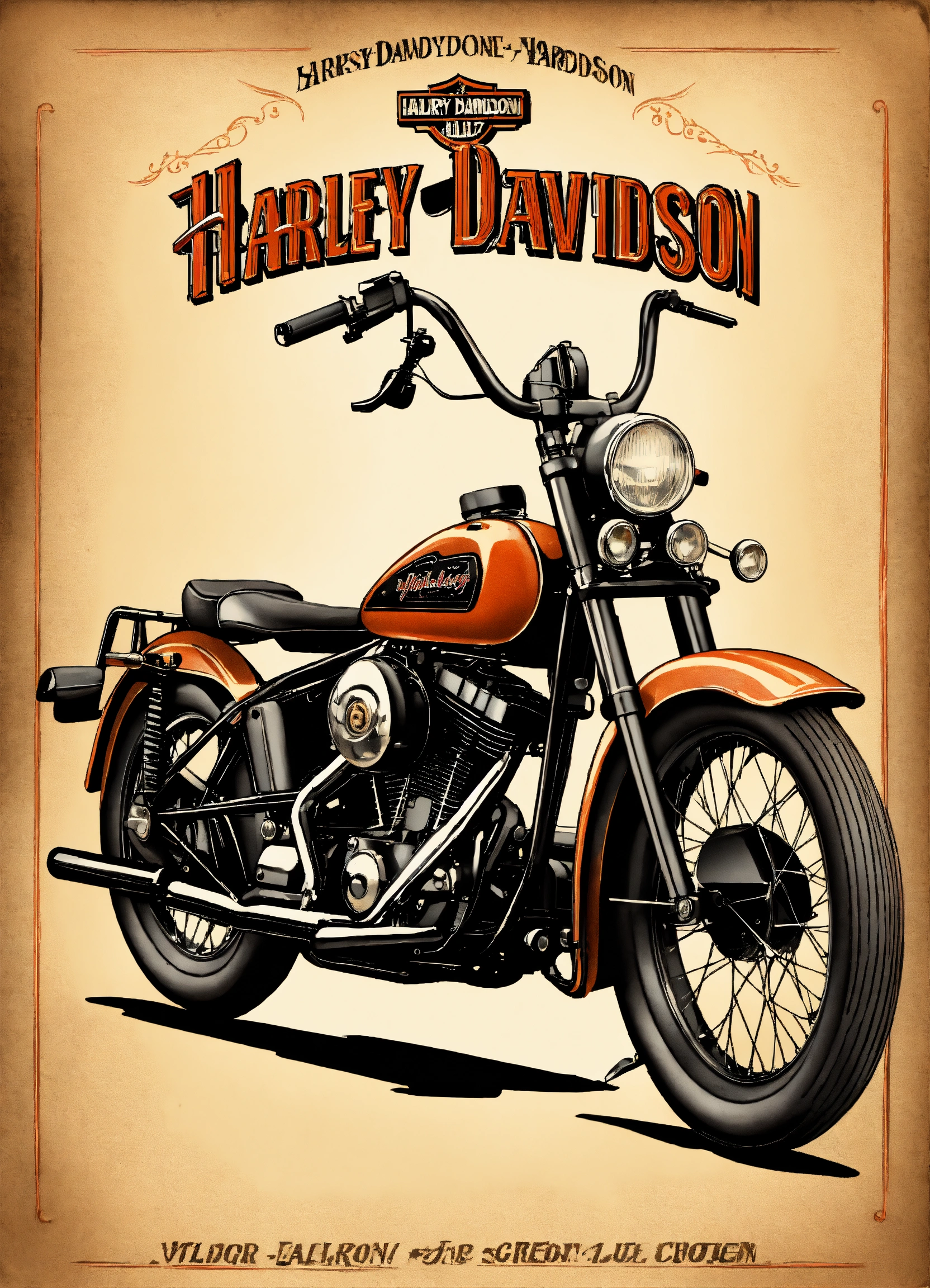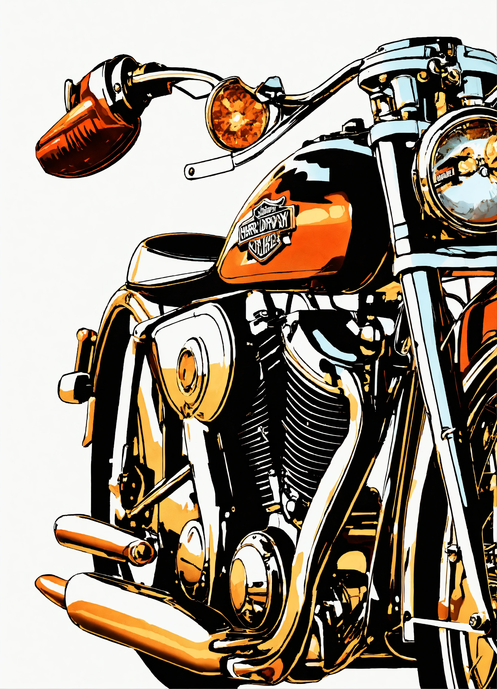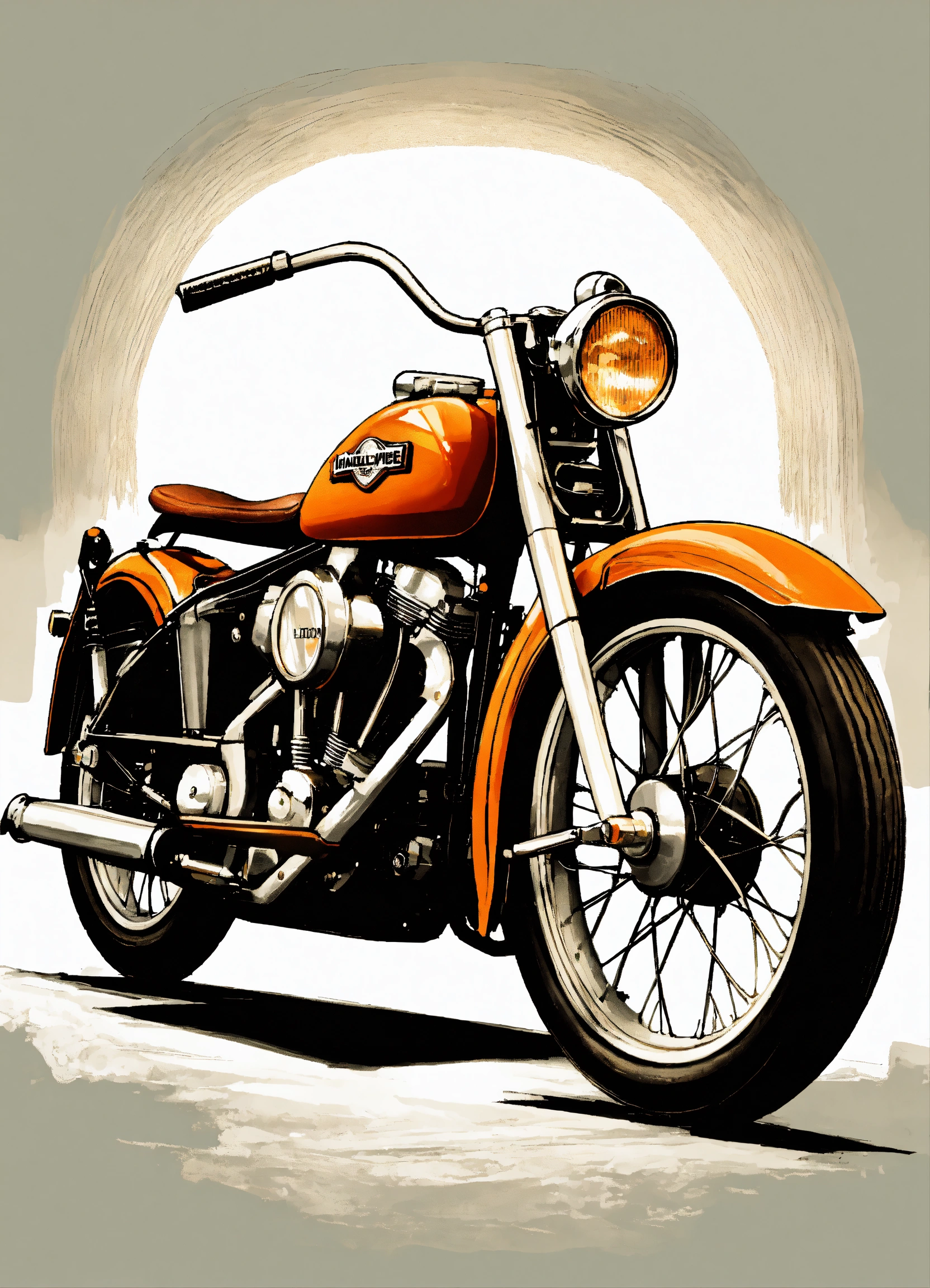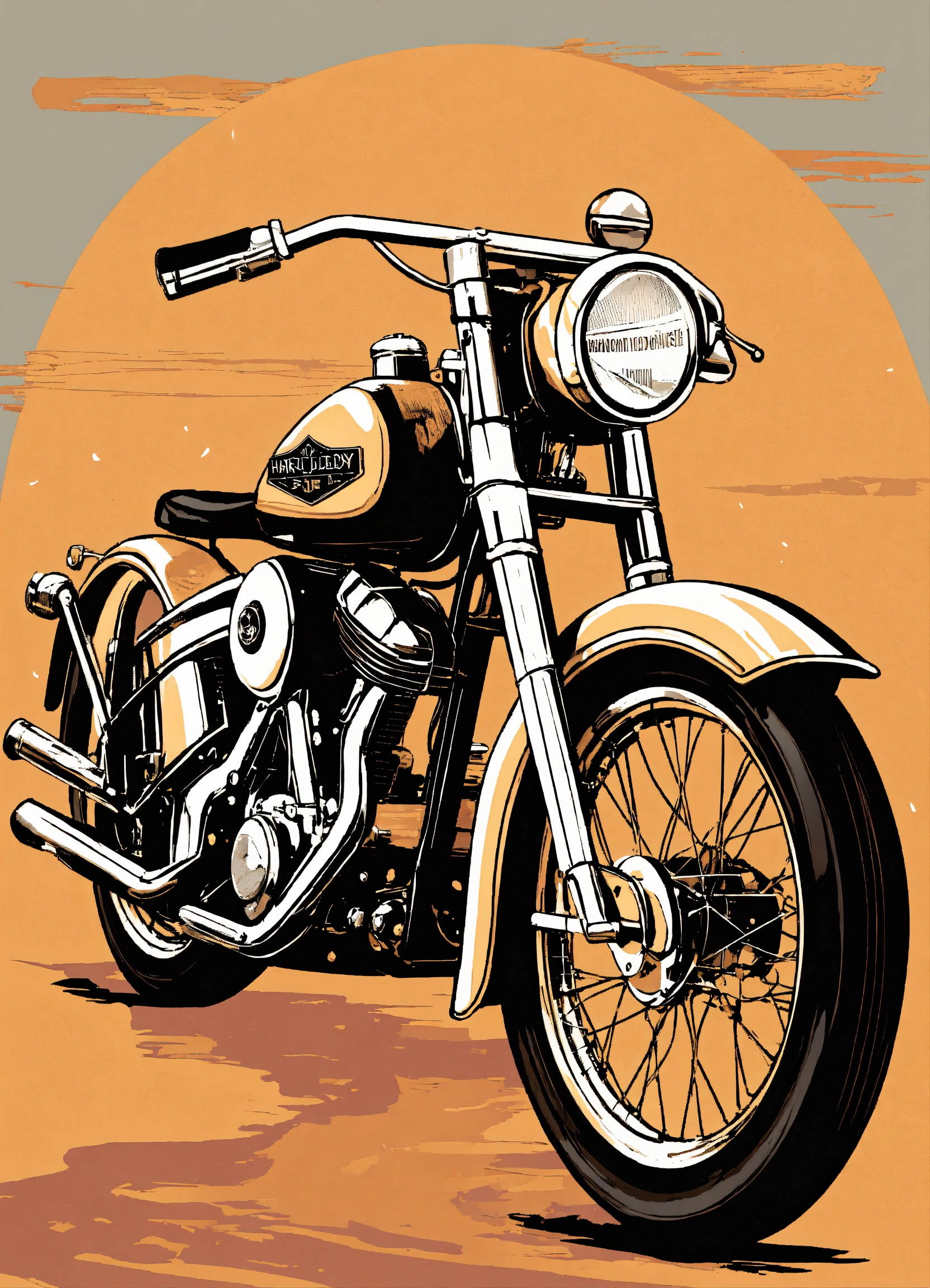 Create an extremely precise illustration of a vintage harley-davidson motorcycle, suitable for printing on a t-shirt, horizontal shot, white background, cutout image