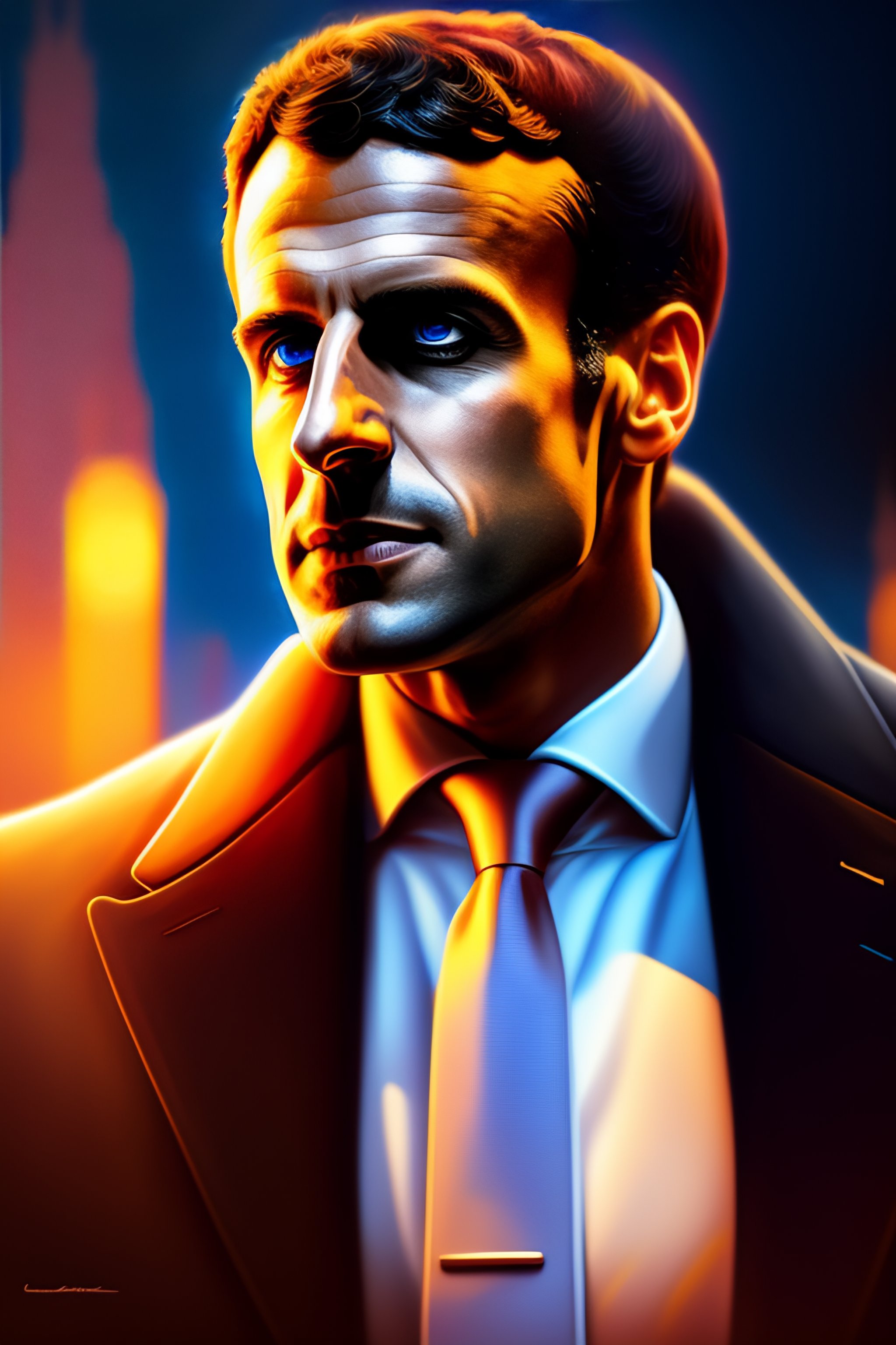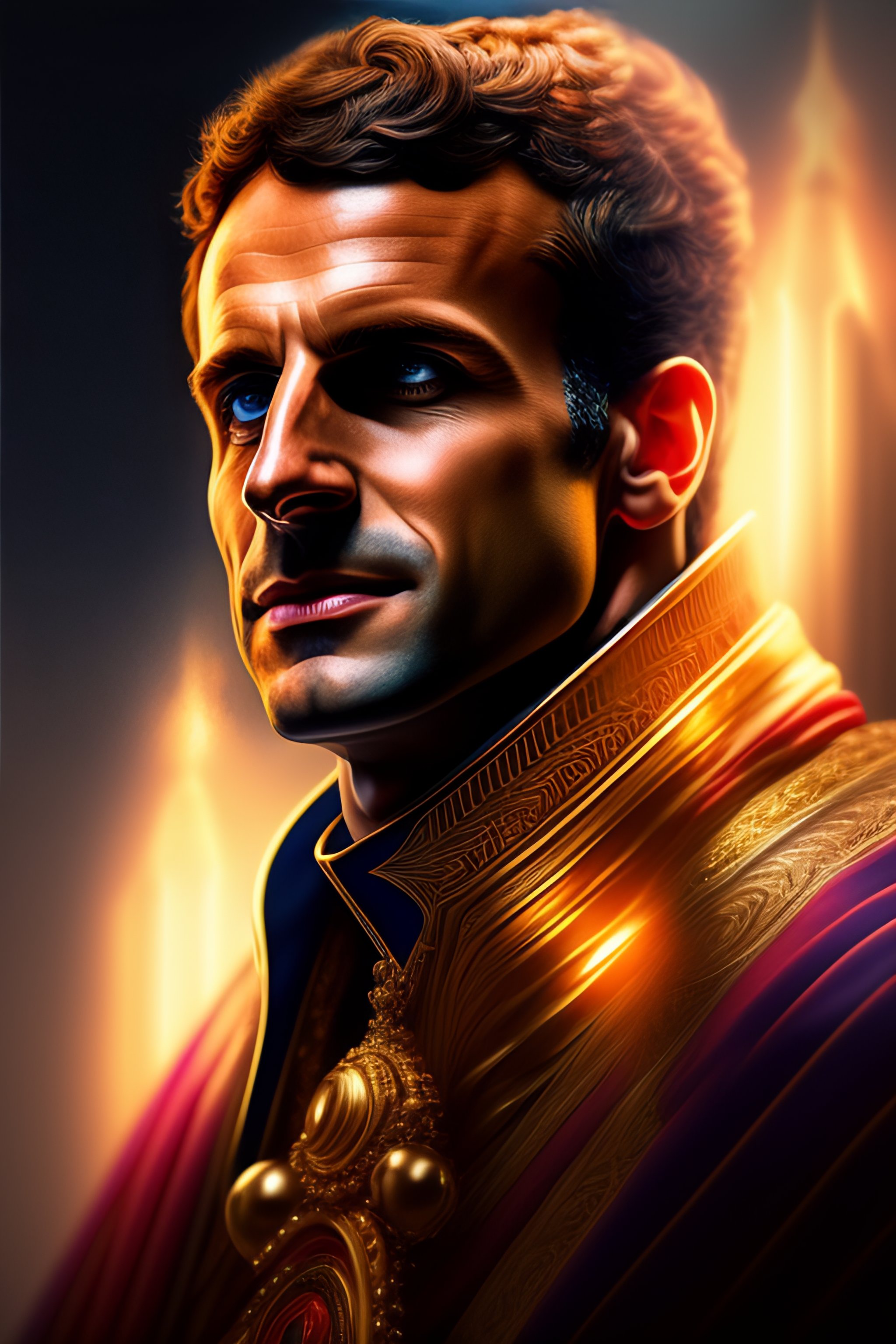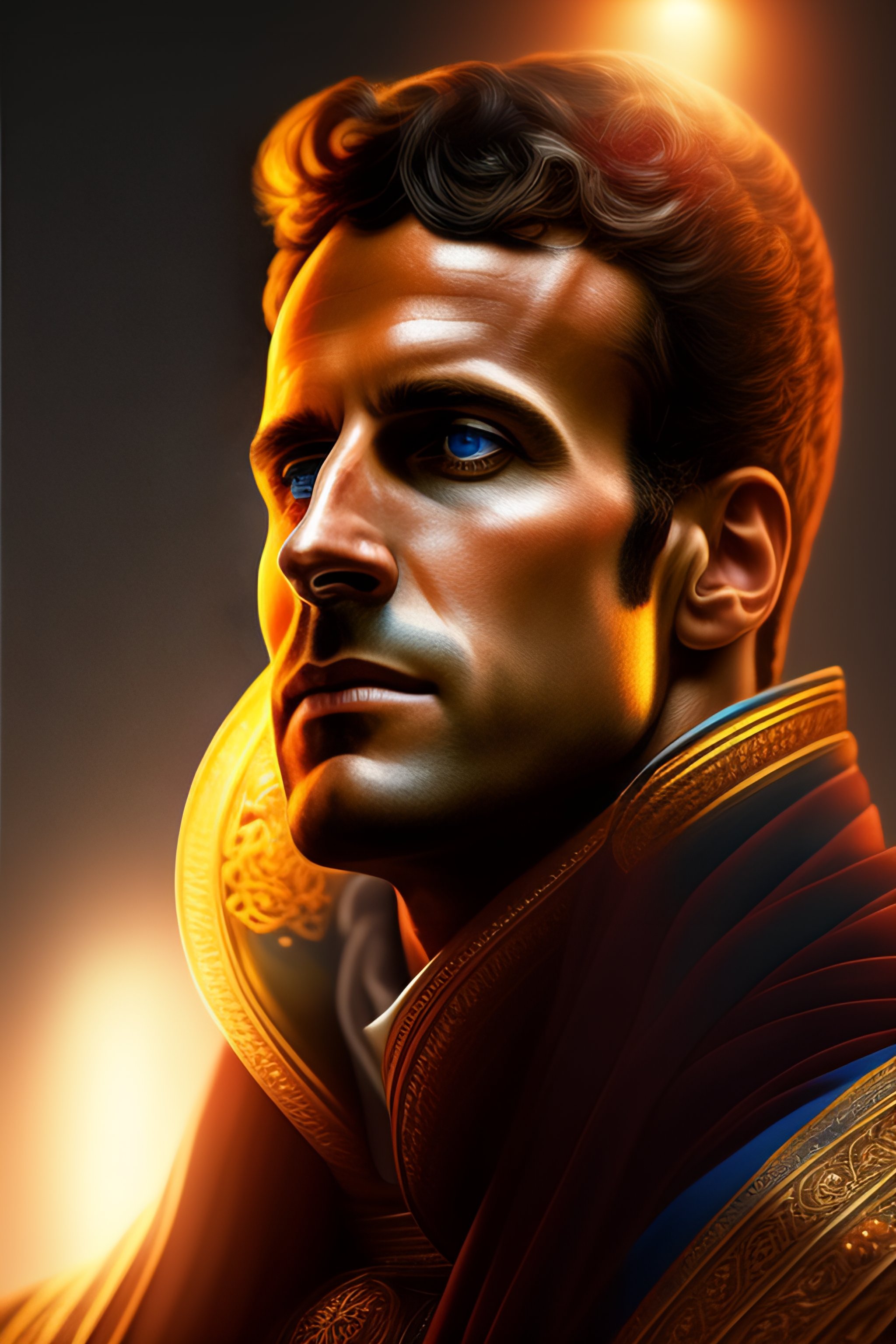 Emmanuel macron as god, heavem, portrait, intricate, detailed, volumetric lighting, scenery, digital painting, highly detailed, artstation, sharp focus, illustration, concept art, steve mccurry, alphonse mucha