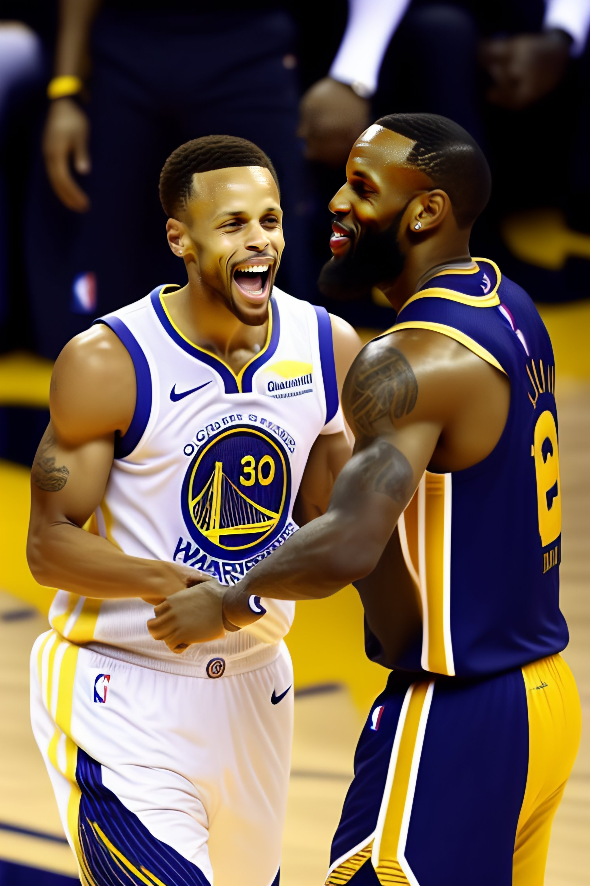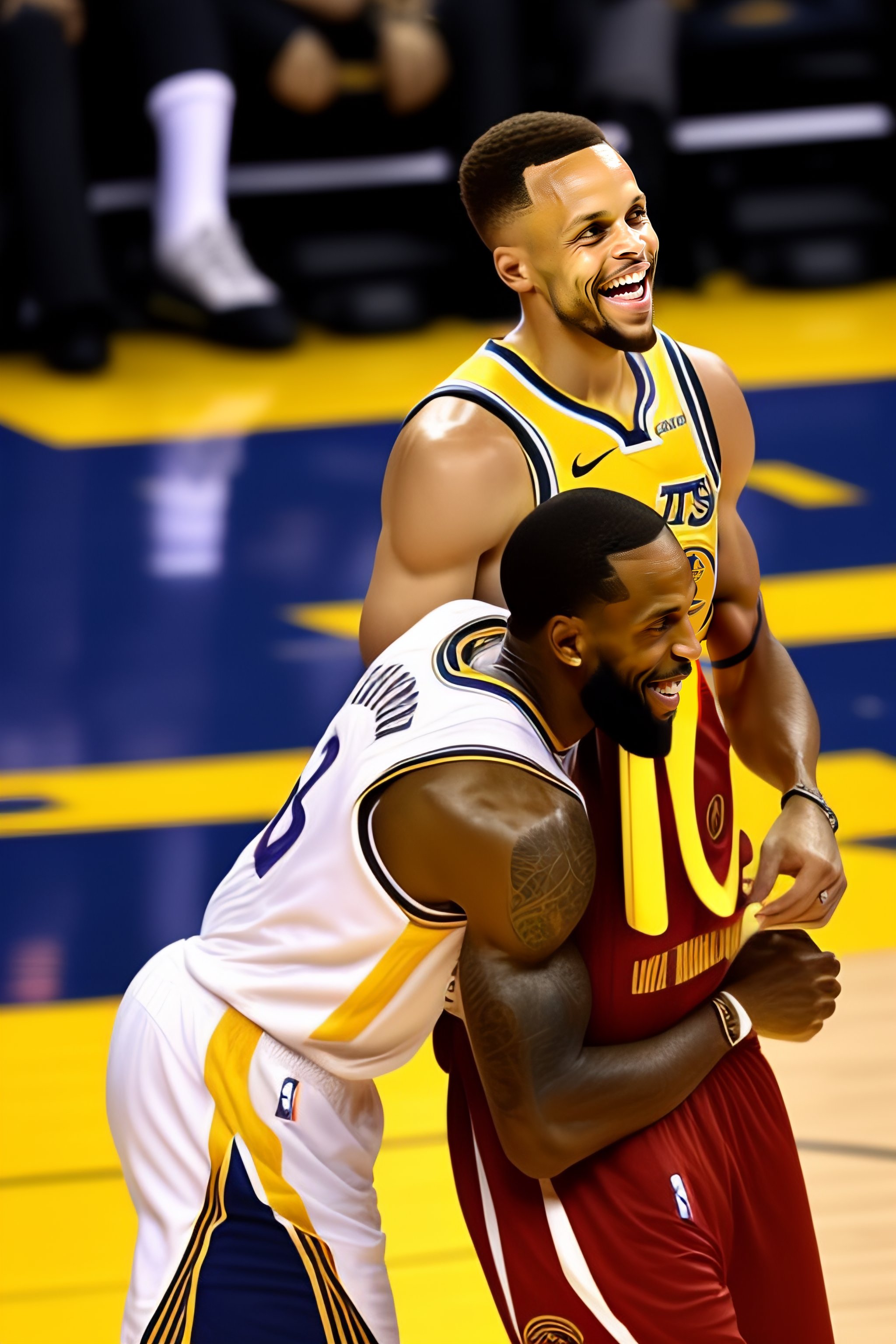 Photo of happy stephen curry step over crying lebron james on the nba finals