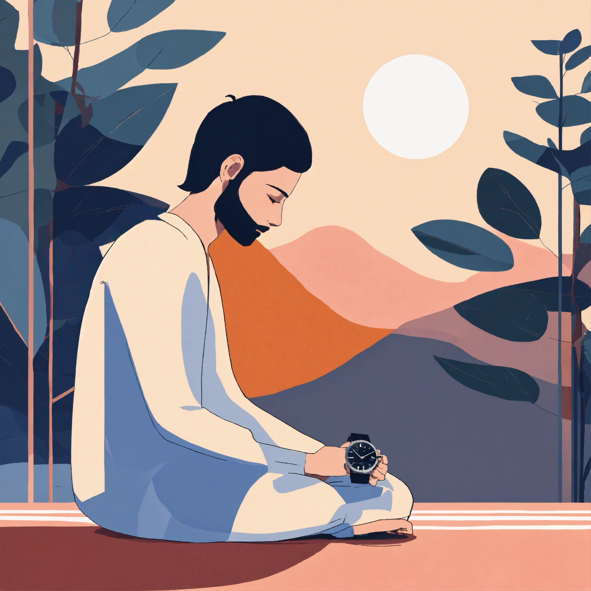 Person meditating looking at his watch
