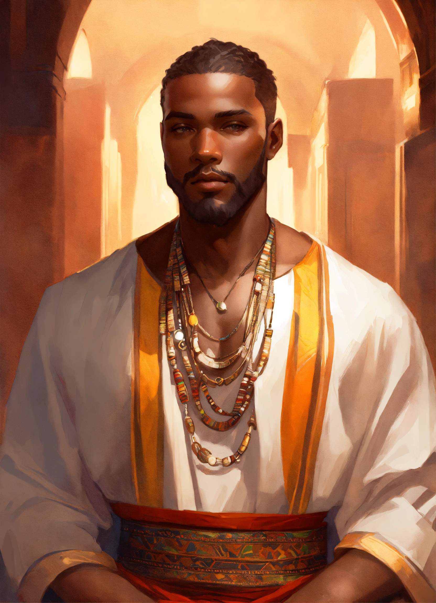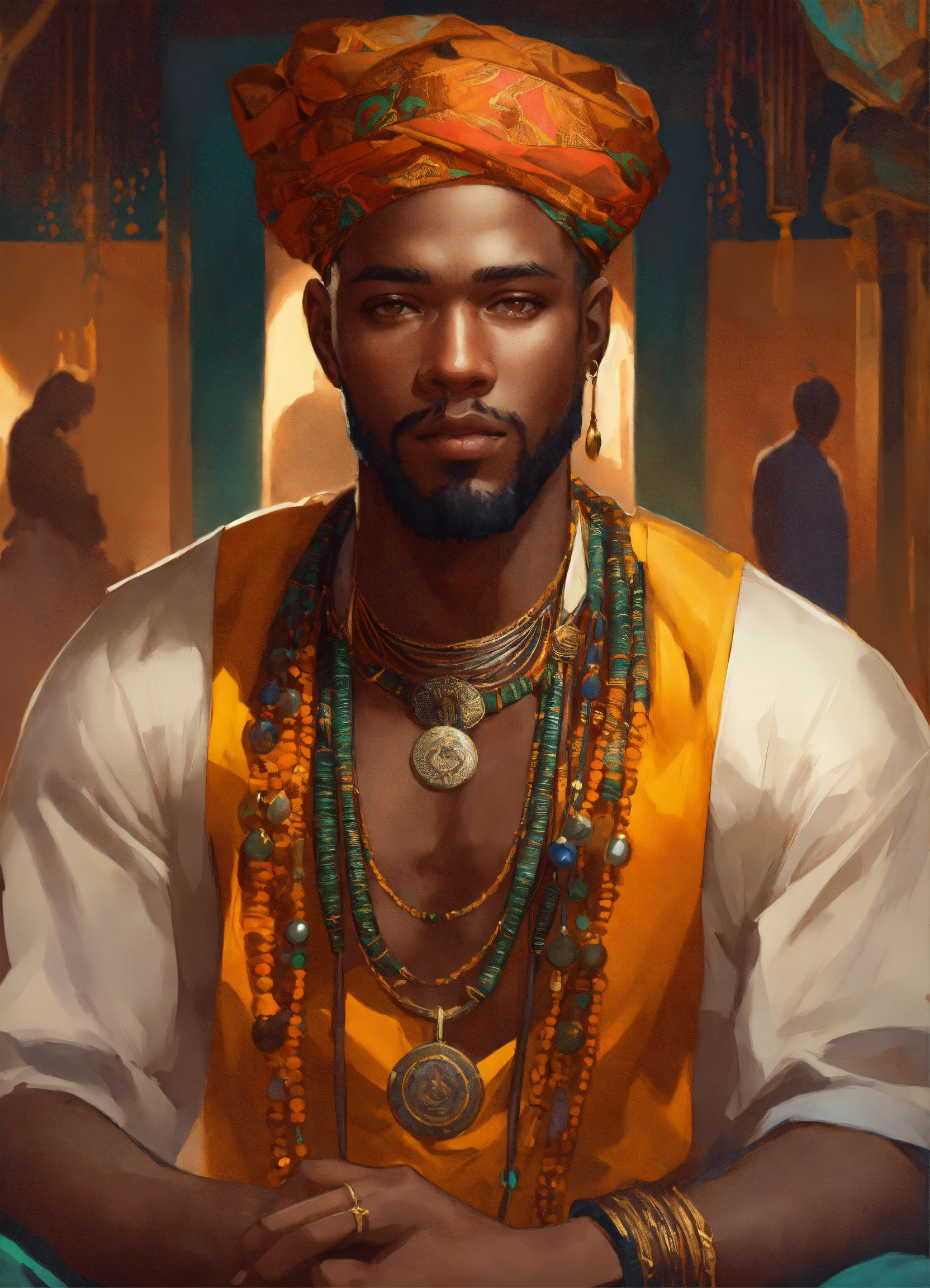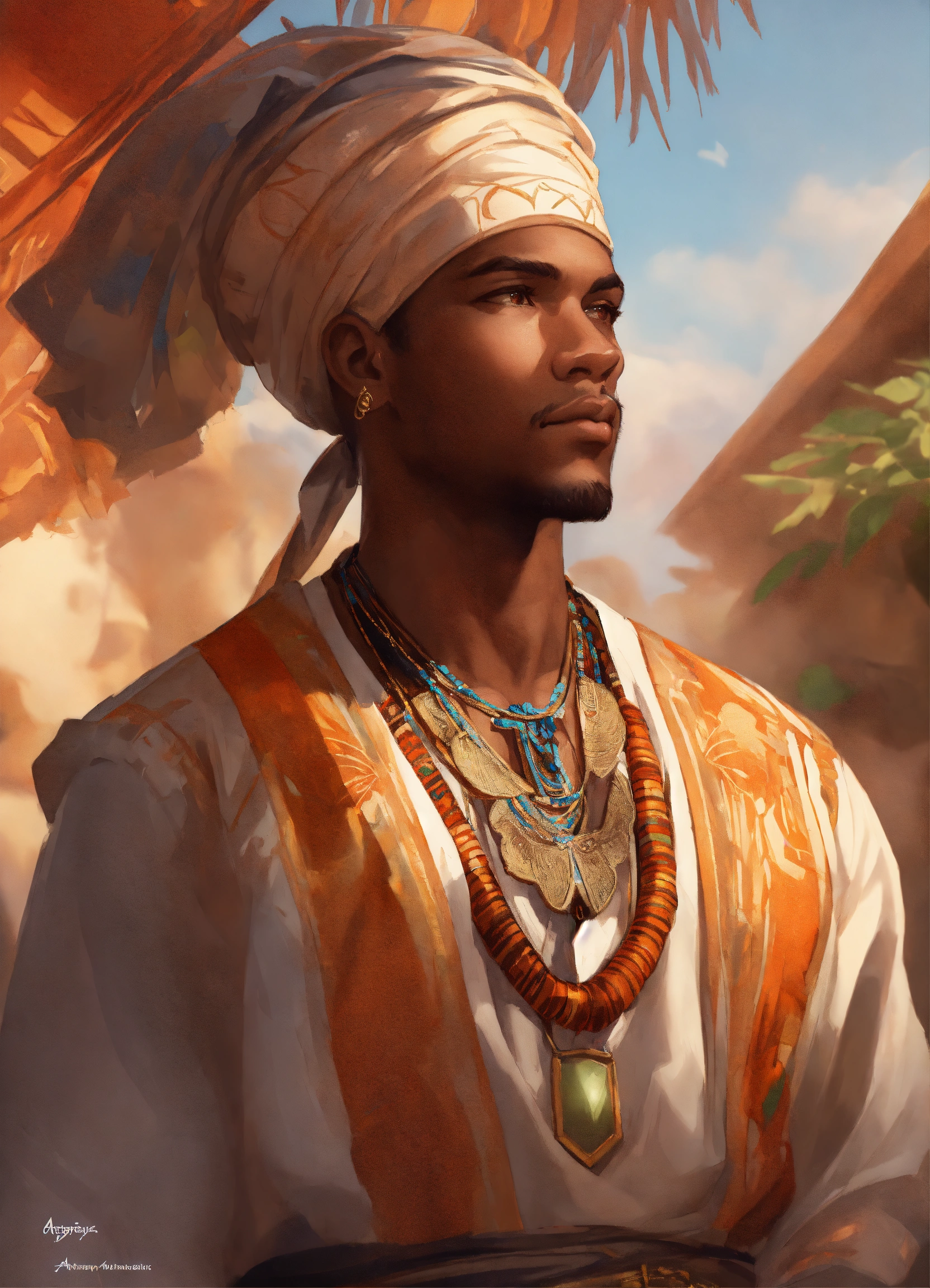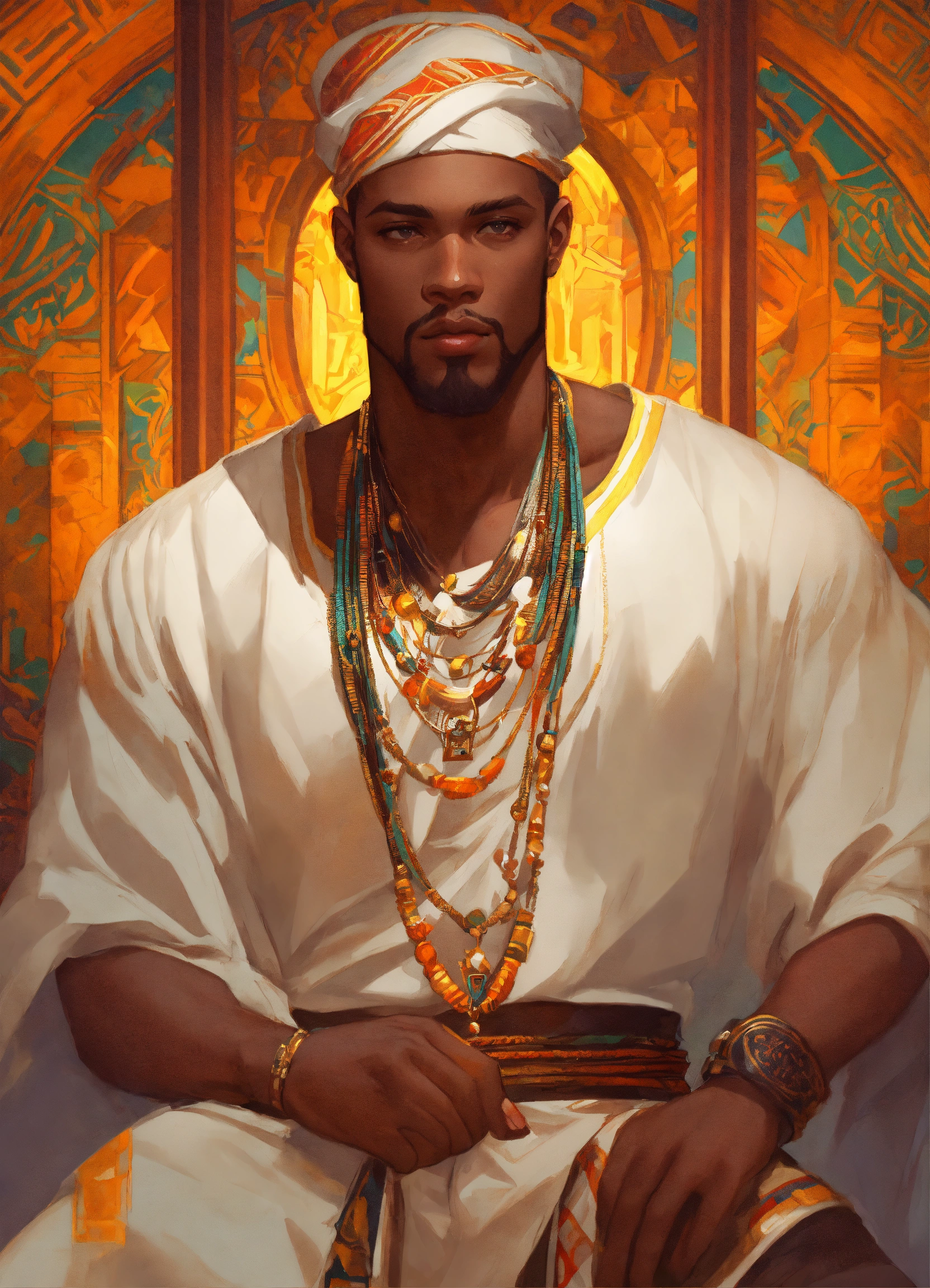Handsome man, wearing simple african traditional clothing, highly detailed, digital painting, artstation, concept art, smooth, sharp focus, illustration, art by artgerm and greg rutkowski and alphonse mucha - lexica aperturev3
