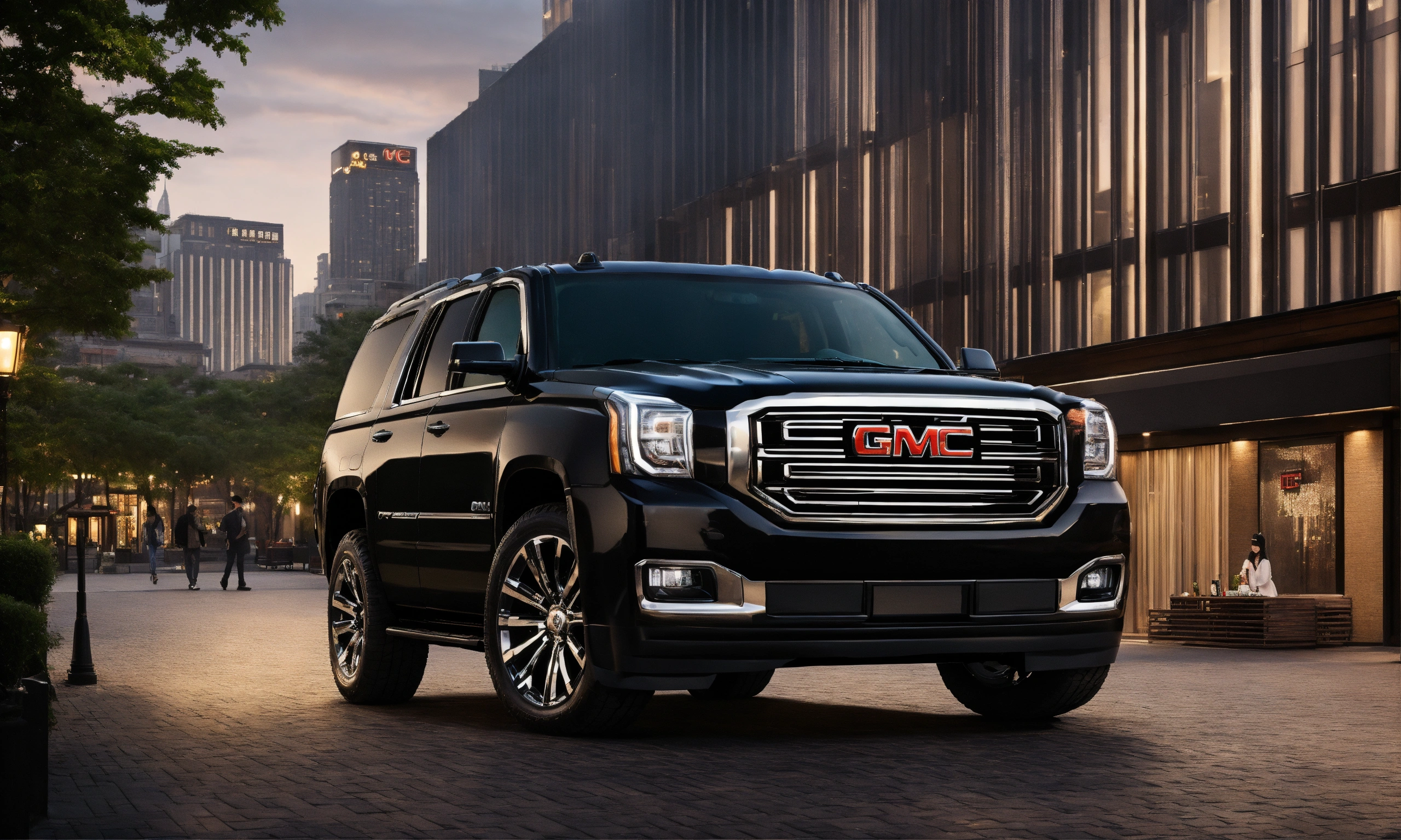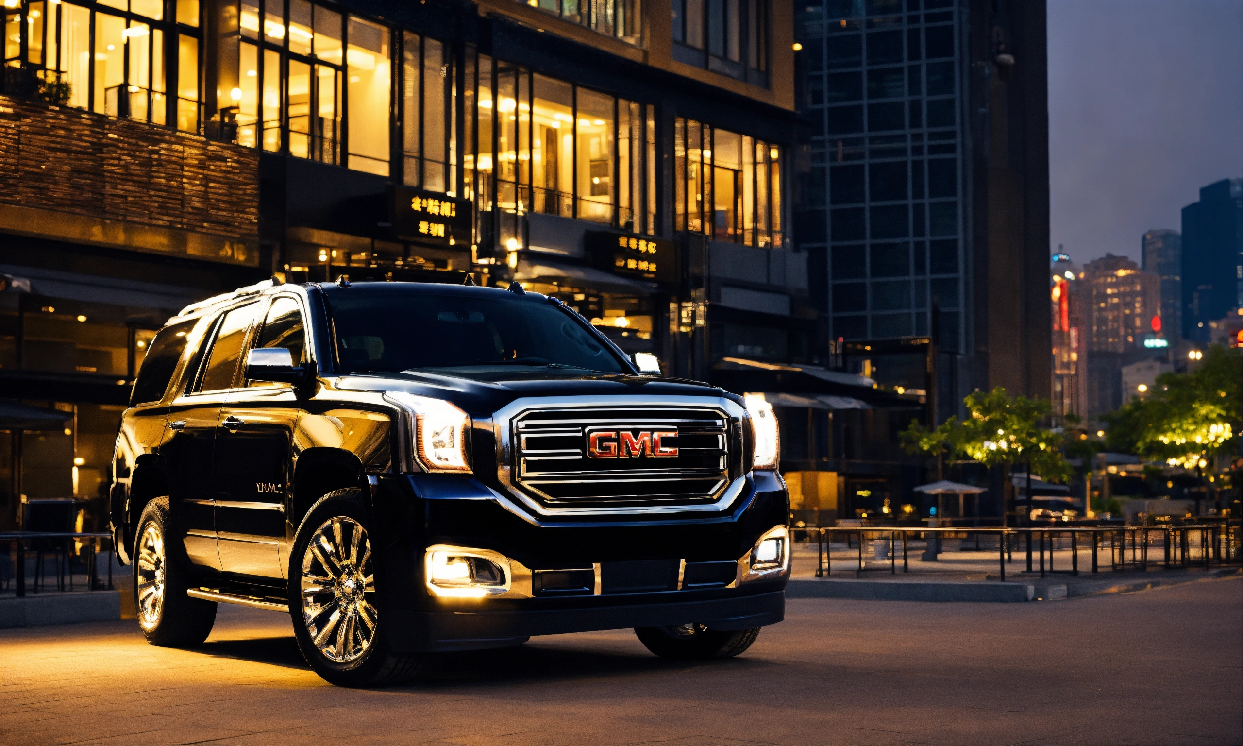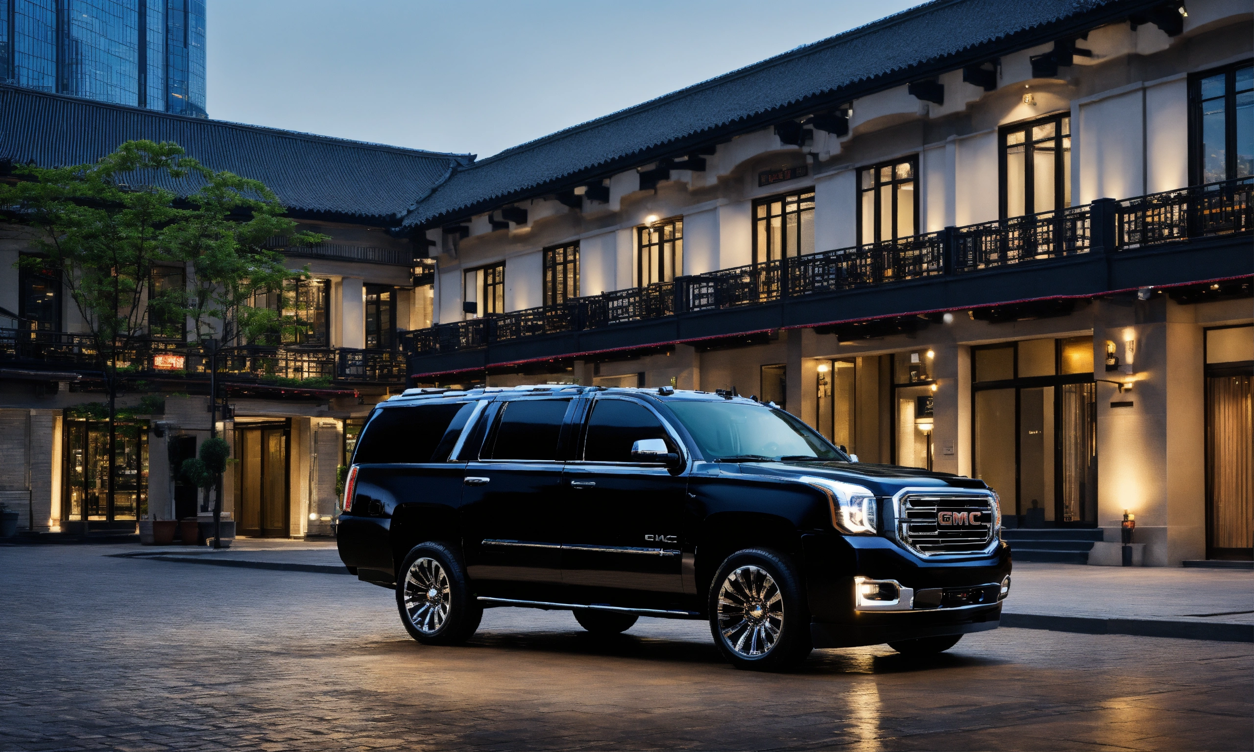 Black gmc yukon parked in front of a boutique hotel located in downtown shanghai