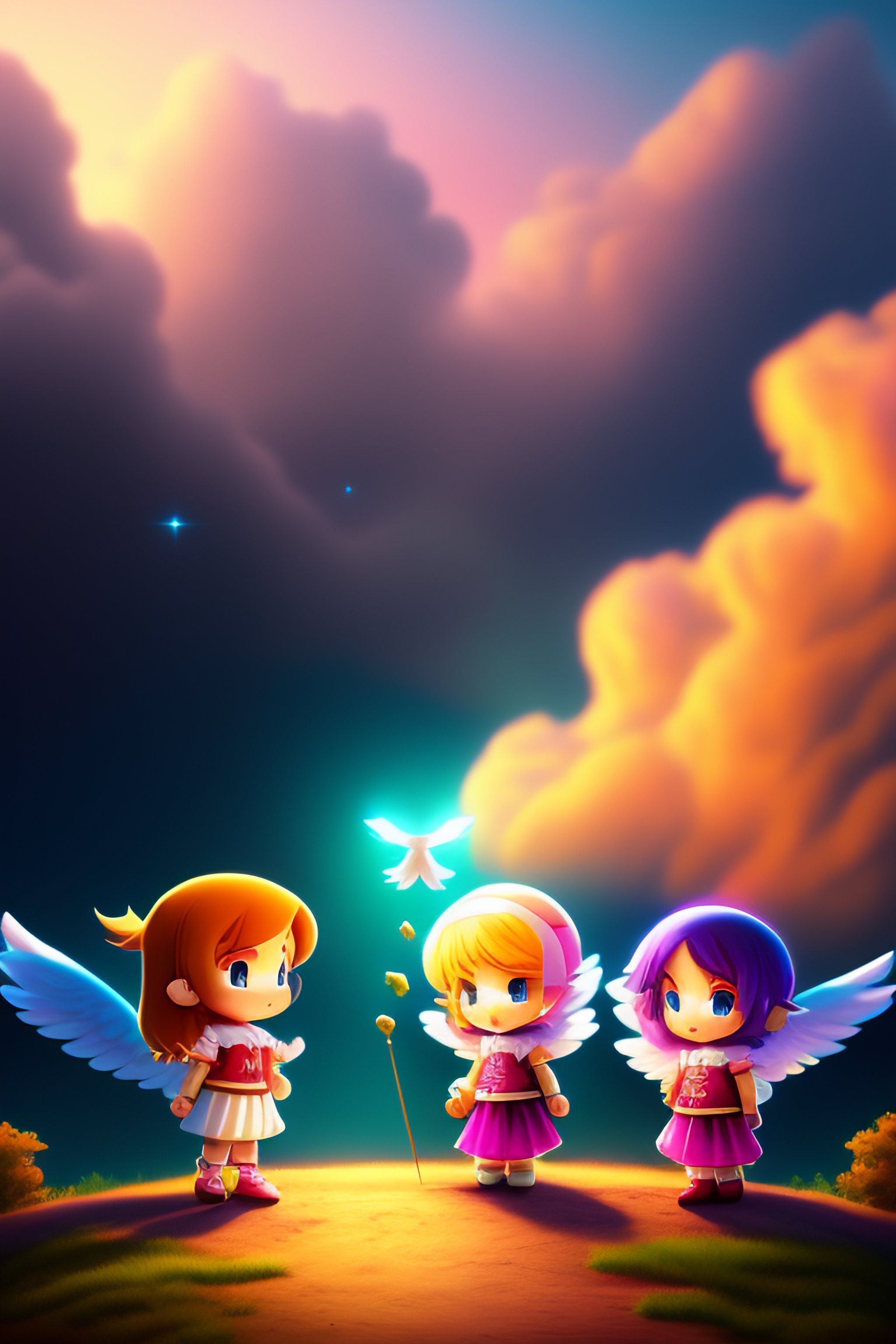 Heavens playground, a beautiful angelic photo of heaven and alot of little angel babies playing cartooned beautiful 8k chibi angels