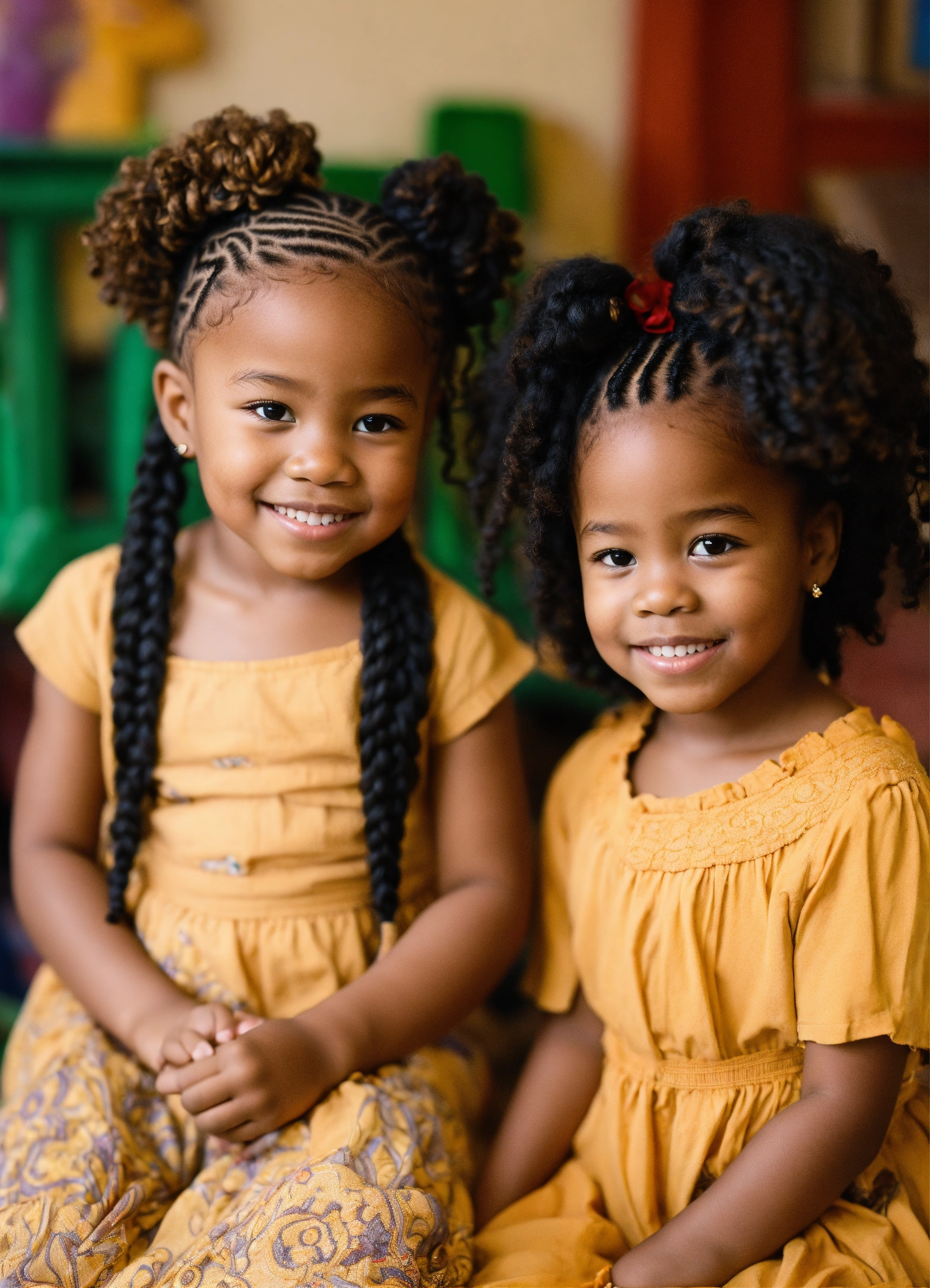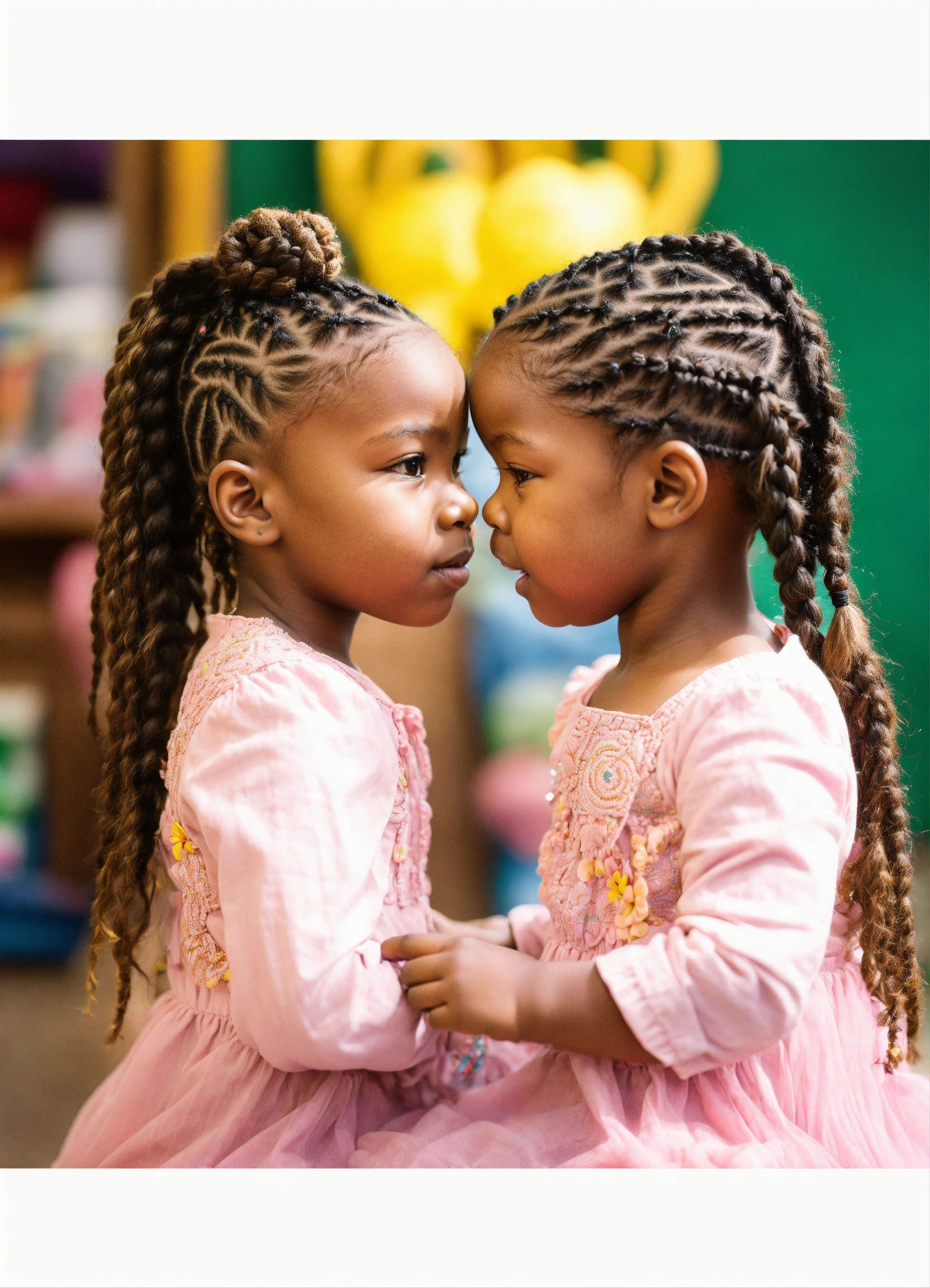 Very beautiful african american preschoolers with intricate braids in their hair