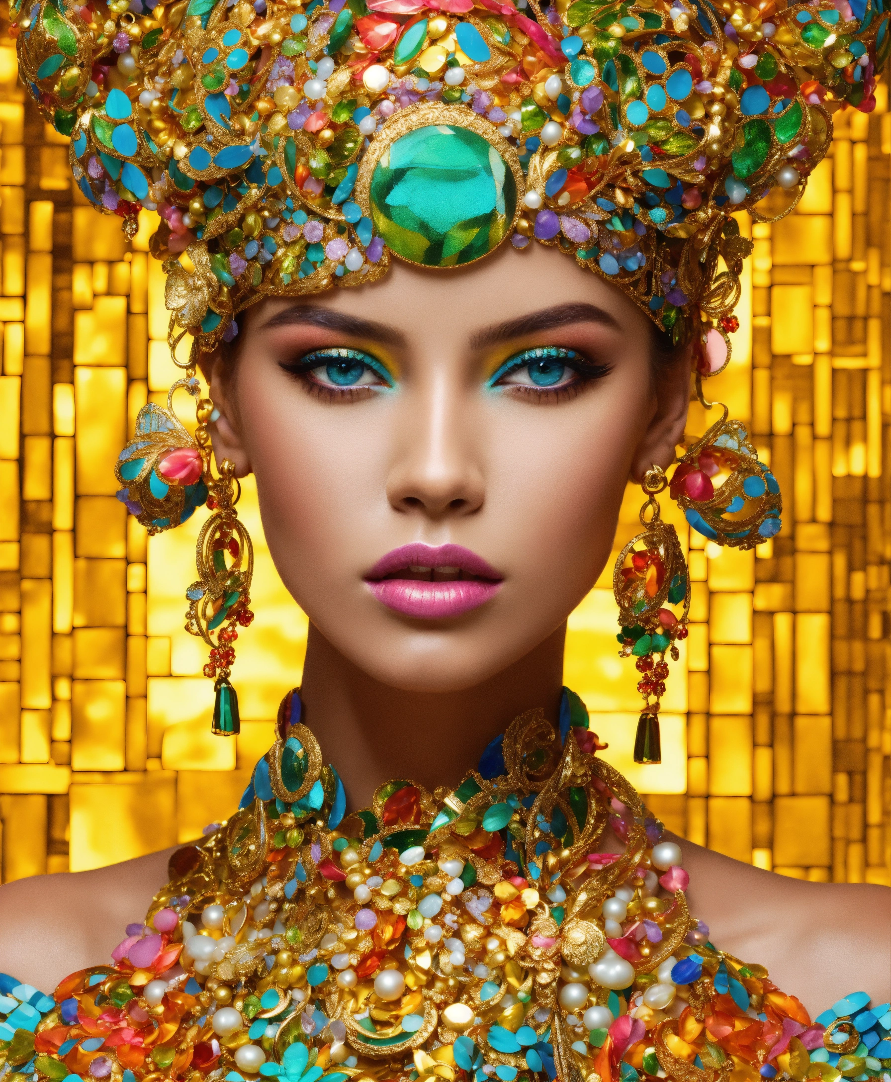 Futuristic beautiful photogenic supermodel painted glamorous beautiful colourful dreamy awesome elegant elaborate complex detailed awesome gold blue pink green orange peridot lilac yellow magenta cyan gold silver copper fabulous 8k intricate brush work vivid bright vibrant colors 3d gold trim metallic 24k gold filigree background mosaic awesome rich haute couture bambi eyes ultimate beauty sheen 8k glamorous filigree mosaic pearlized amazing hyperdetailed elegant elaborate couture elaborate hair style contrast frosty brushed matte luminous gold yellow background vibrant pink silver green detailed 8k 24k gold trim gold background asymetrical beautiful awesome superb 8k sheen 3d klimt vibrant colors large eyes gorgeous beautiful colourful delicate facial features beautiful superb 24k gold highlights 8k in focus red yellow gold pink klimt flowers gold foil 8k in focus gorgeous superb sublime awesome 8k
