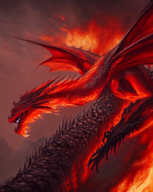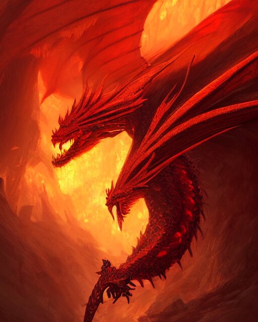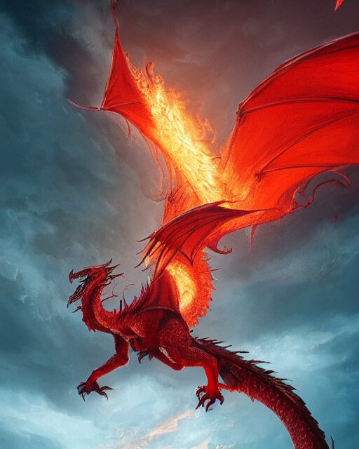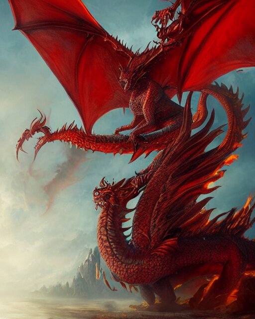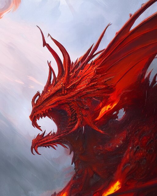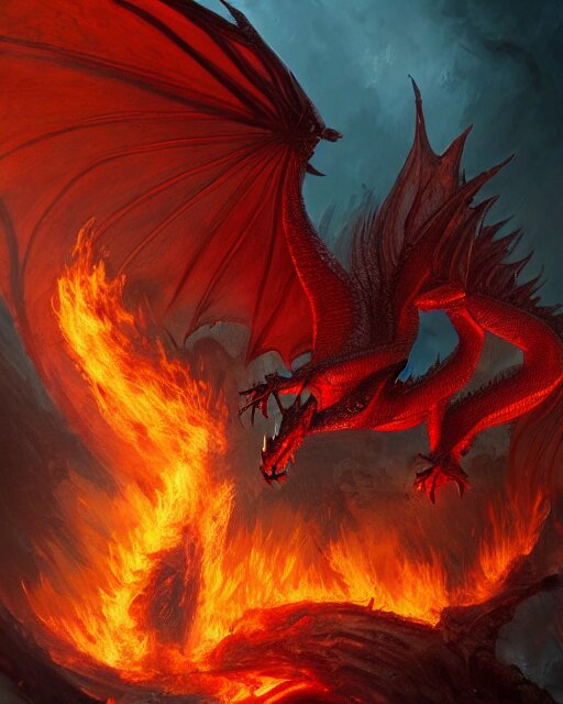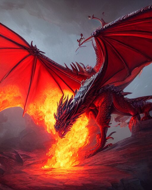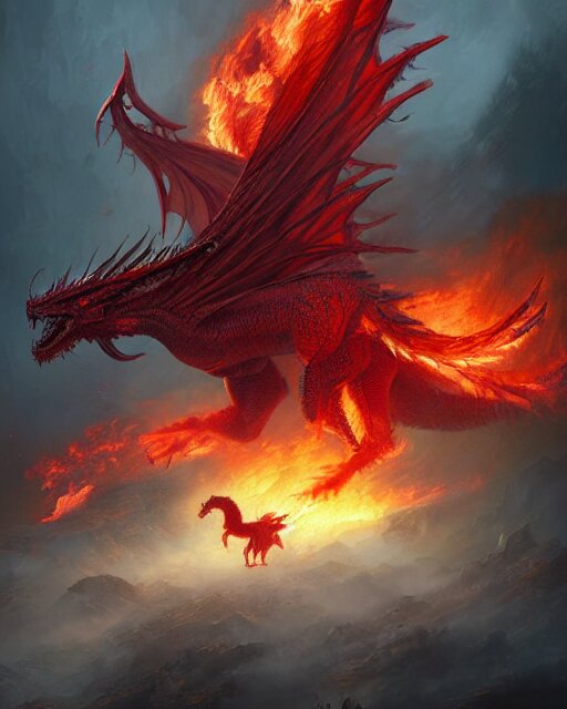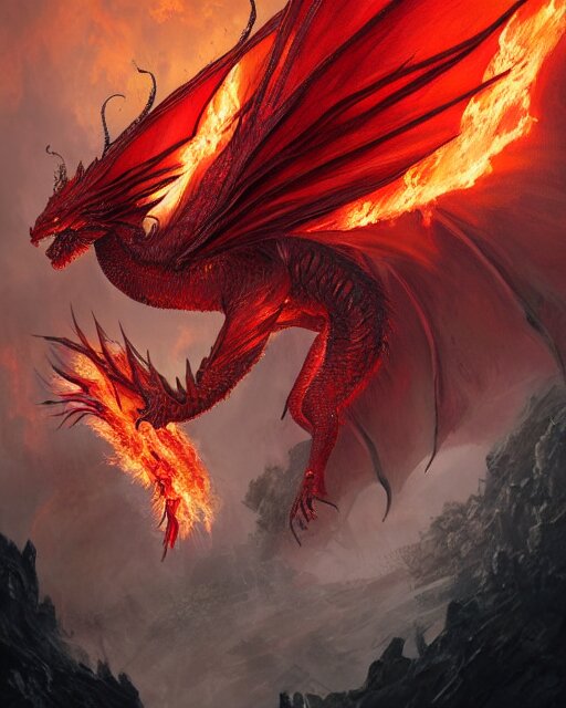 A red dragon, with phoenix wings and tail, breathing out a massive fire, epic, highly detailed, close-up, fantasy art, dragon art, in the style of greg rutkowski, illustration, epic, fantasy, intricate, hyper detailed, artstation, concept art, smooth, sharp focus, ray tracing