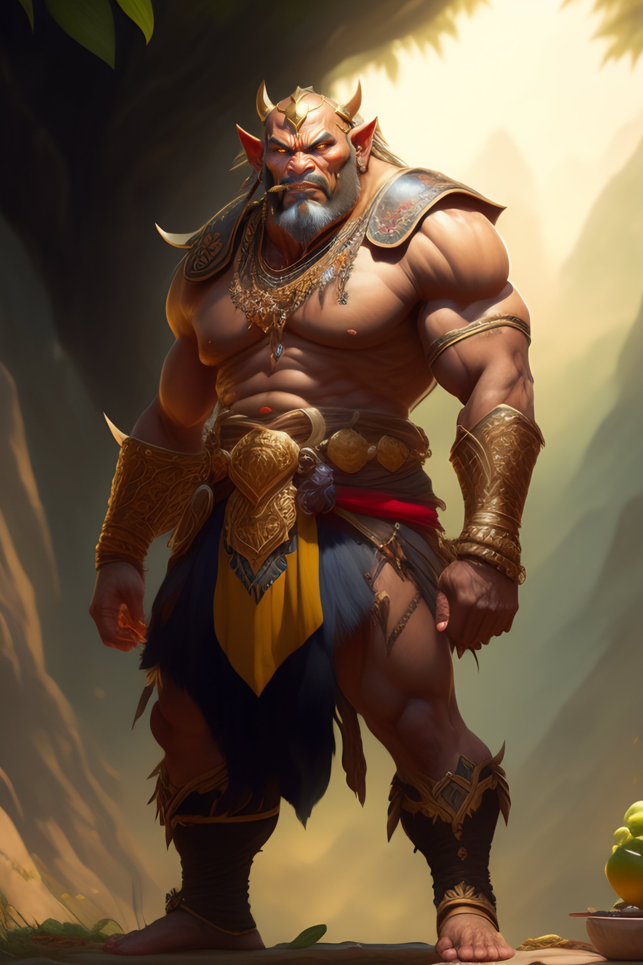 Portrait of a full body of japanese orc, age 40, eating banana, d & d, sleeveless, fantasy, flat lighting, intricate, highly detailed, digital painting, artstation, concept art, smooth, sharp focus, illustration, misa amane, art by simon bisley and greg rutkowski and alphonse mucha, natural pose