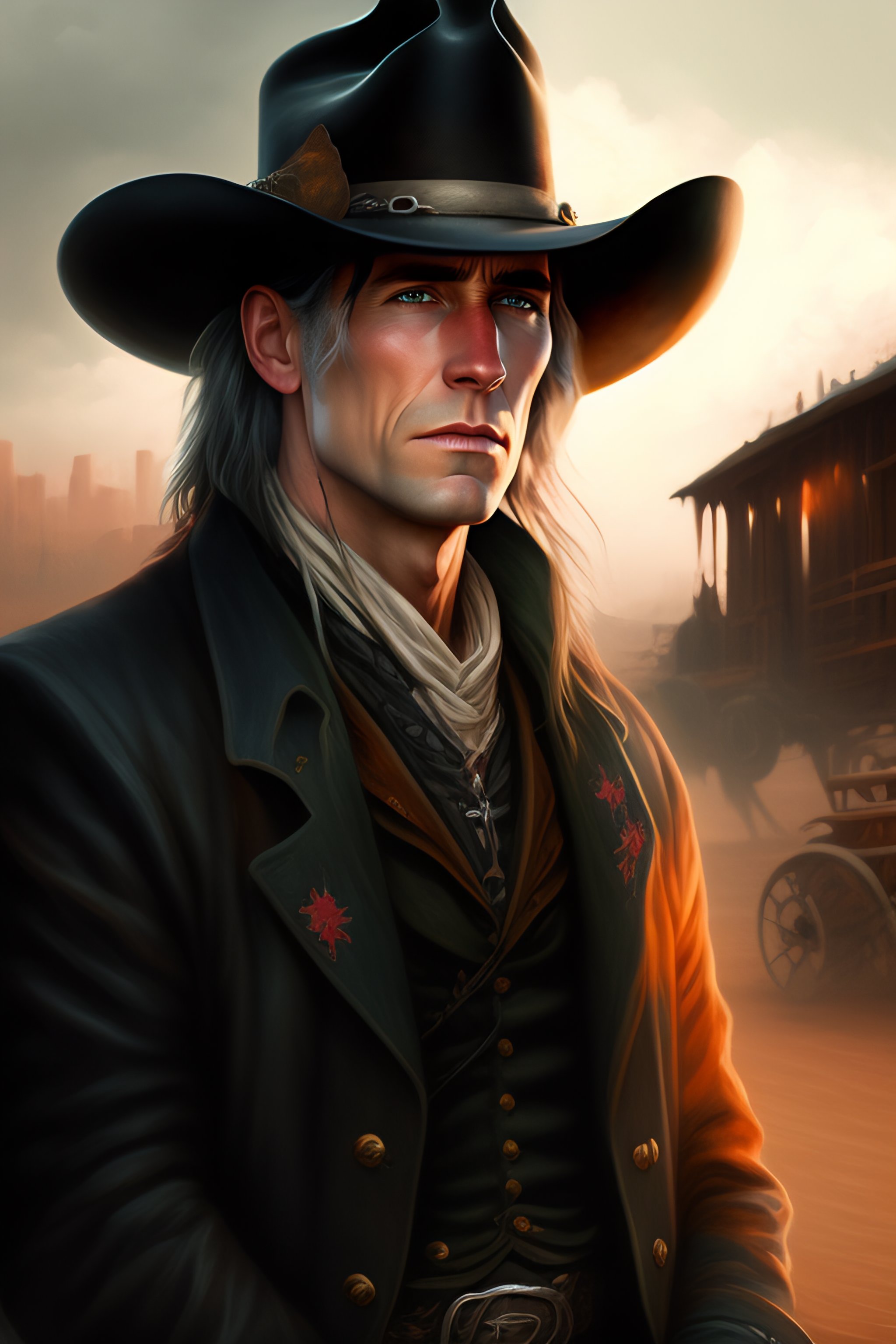 Big nose ugly shabby, beggar poor american gambler cowboy 35 years old really really pale man from american 1890s, black hair, highly detailed, digital painting, splash art.