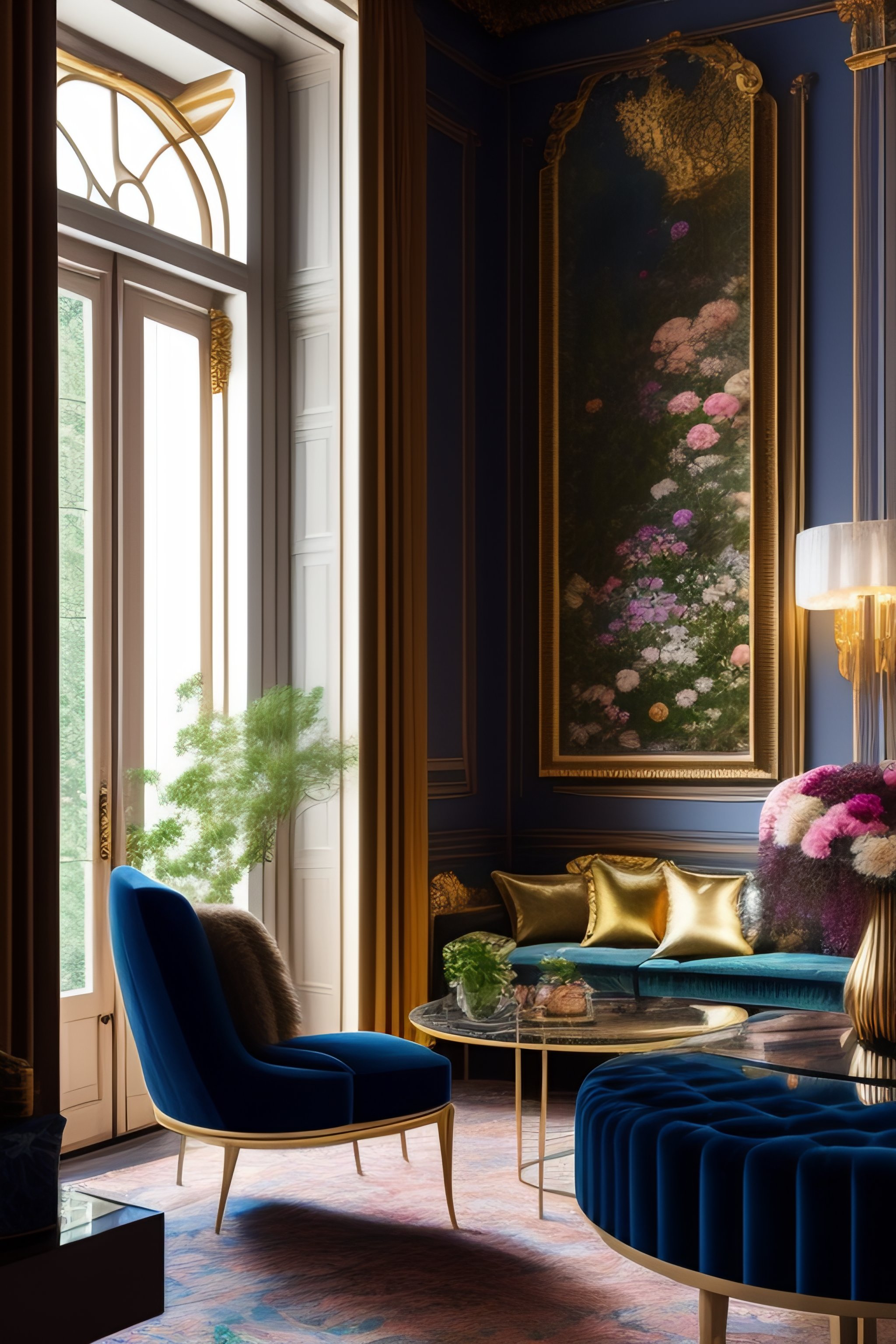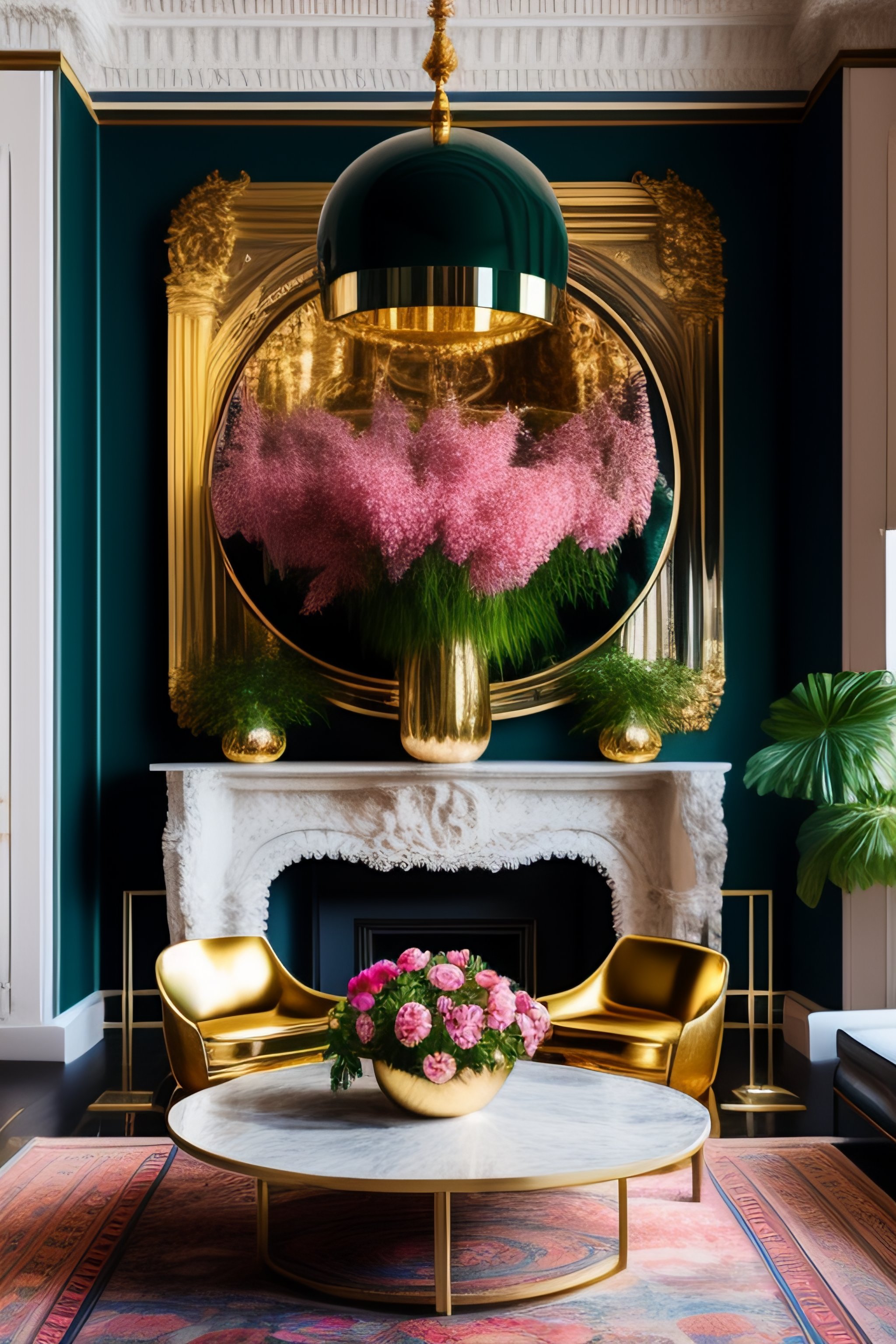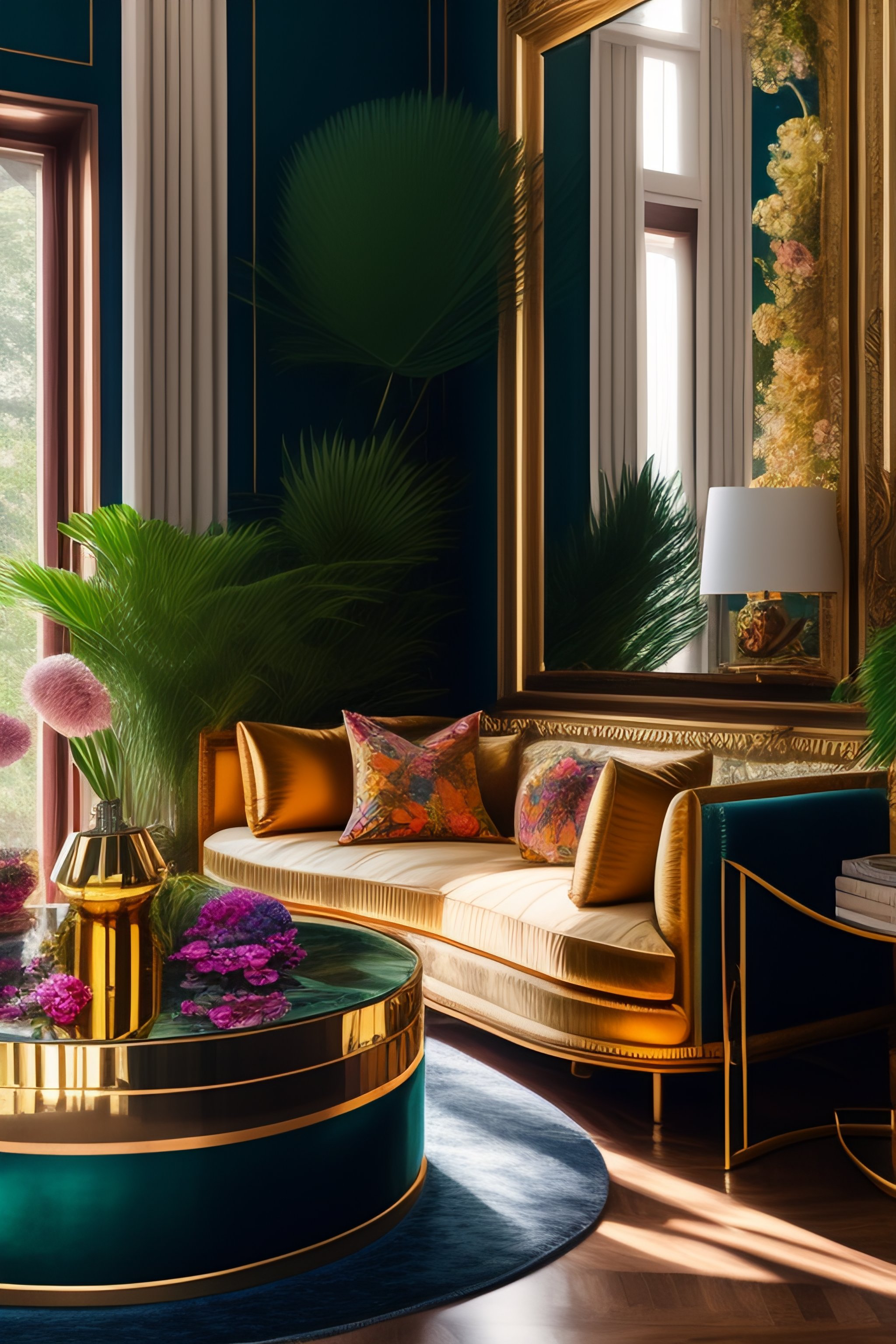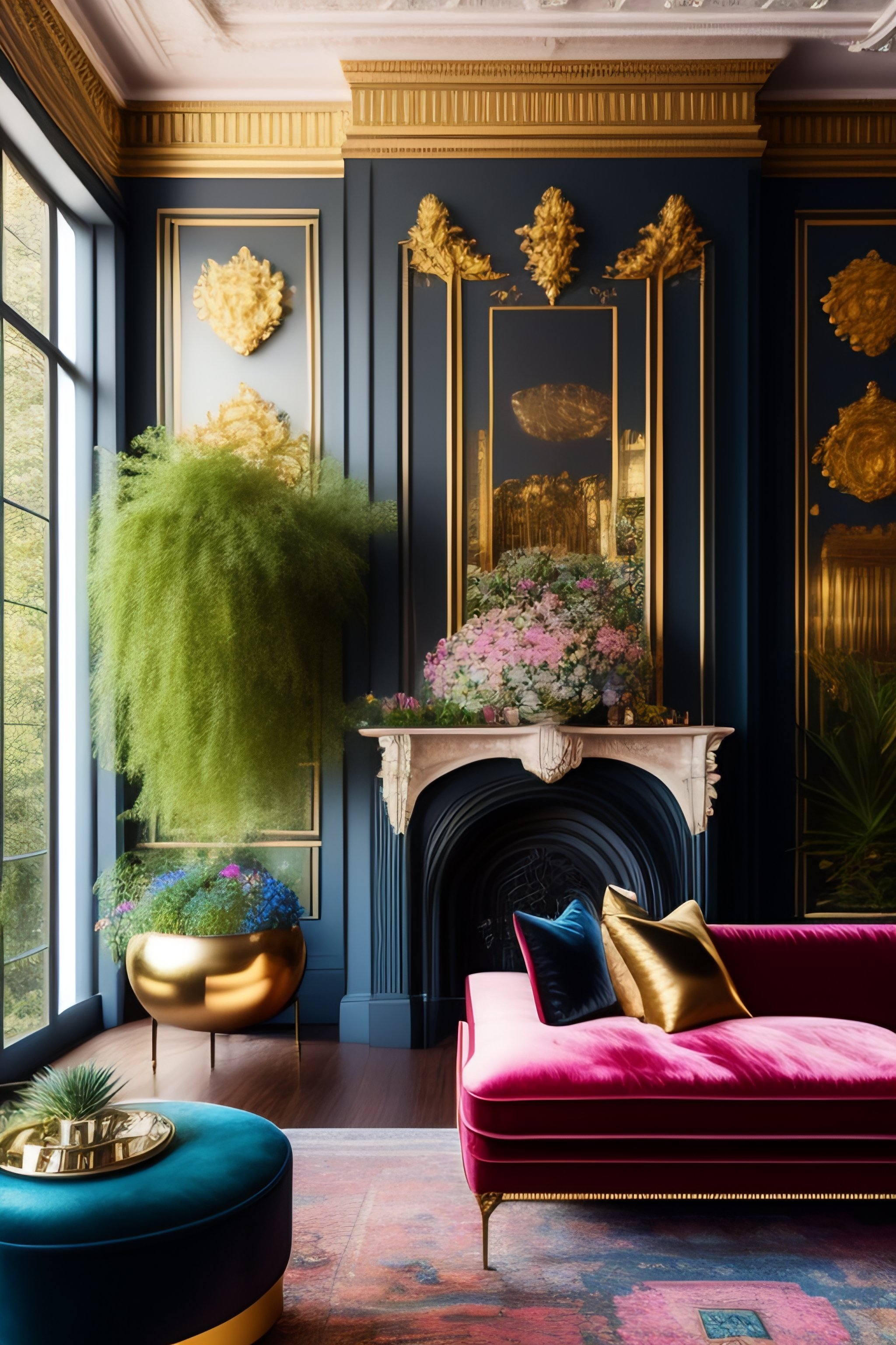 Architectural digest photo of a maximalist mud living room with lots of flowers and plants, golden light, hyperrealistic surrealism, award winning masterpiece with incredible details, epic stunning