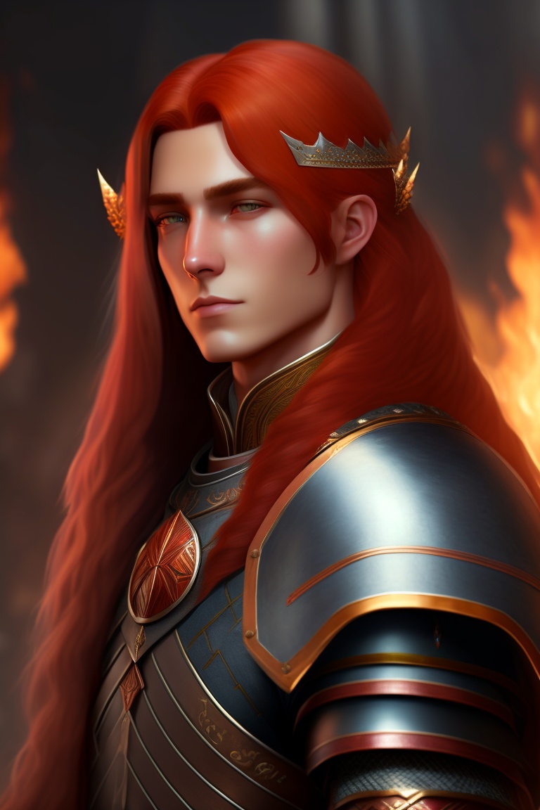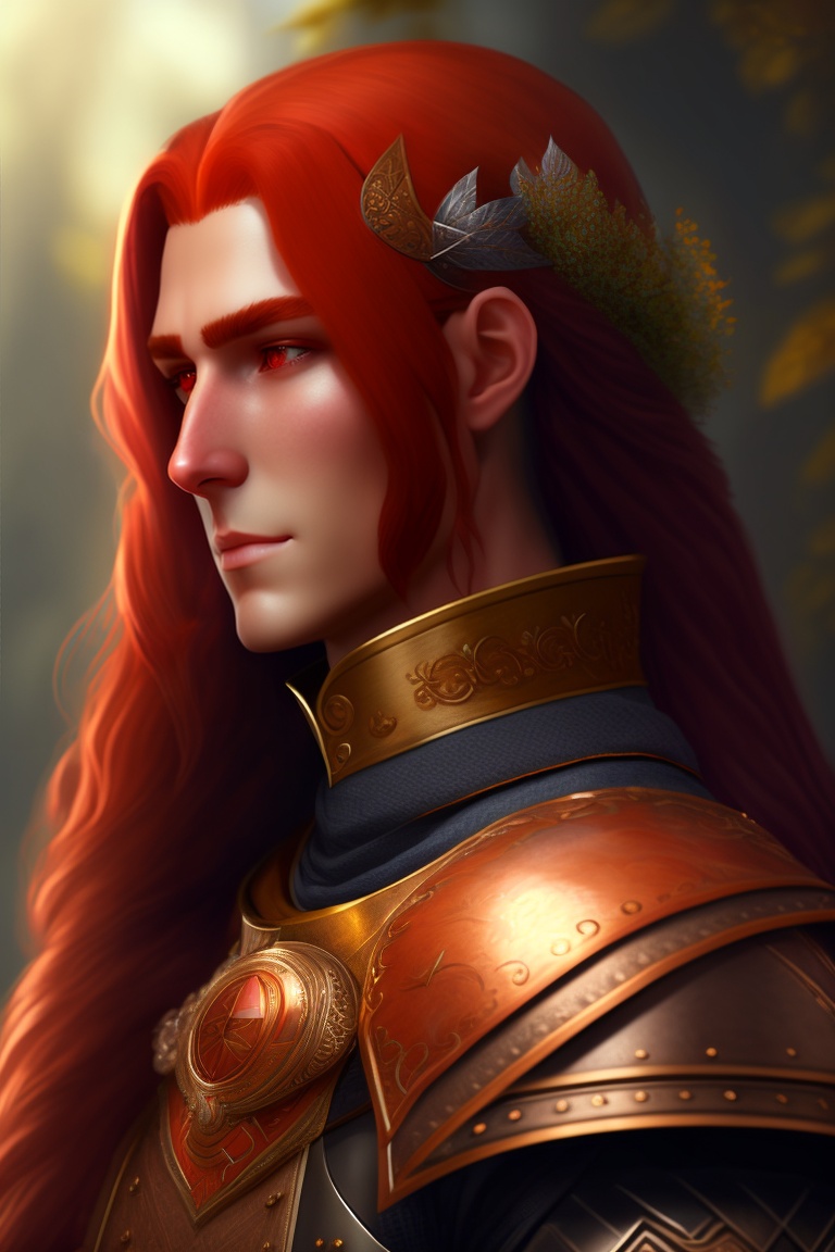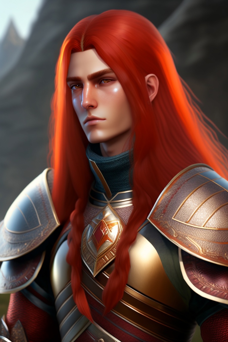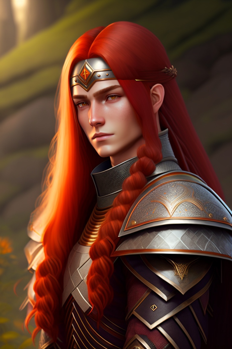 Radagon from elden ring, full plate armor, red long hair, small braid at the end of hair, digital art