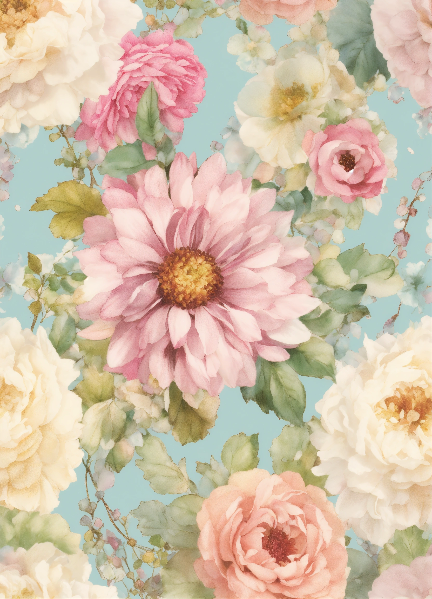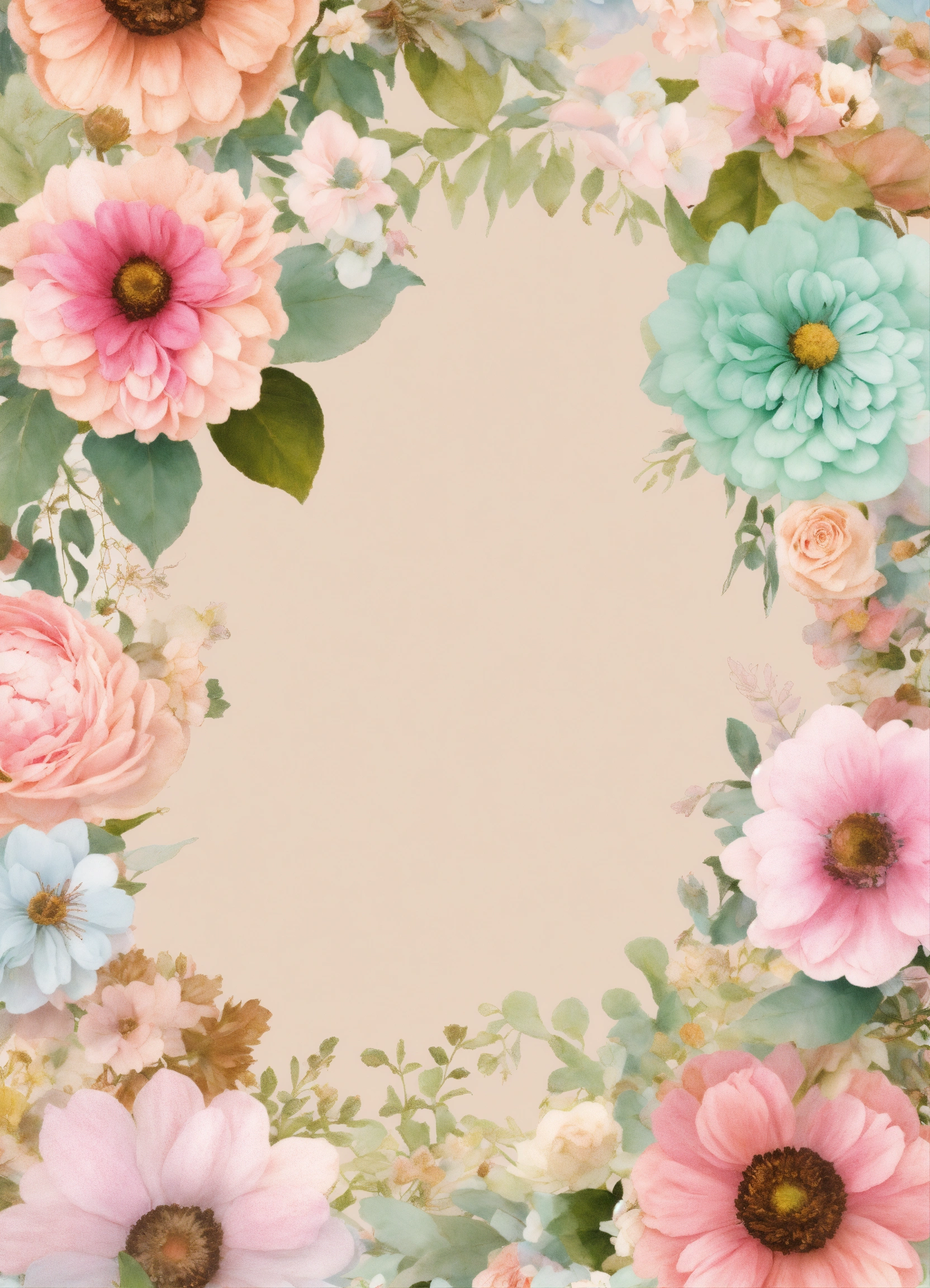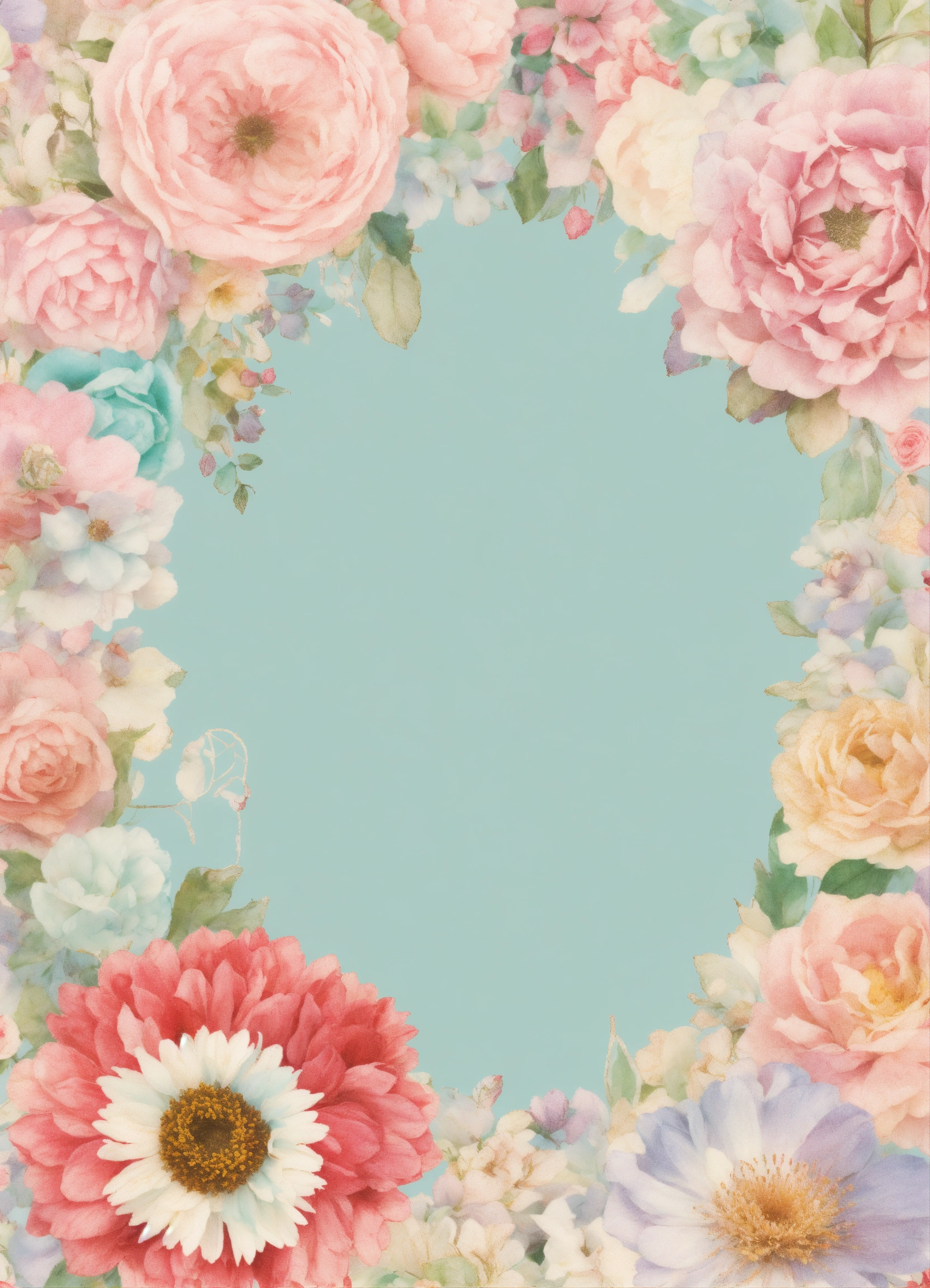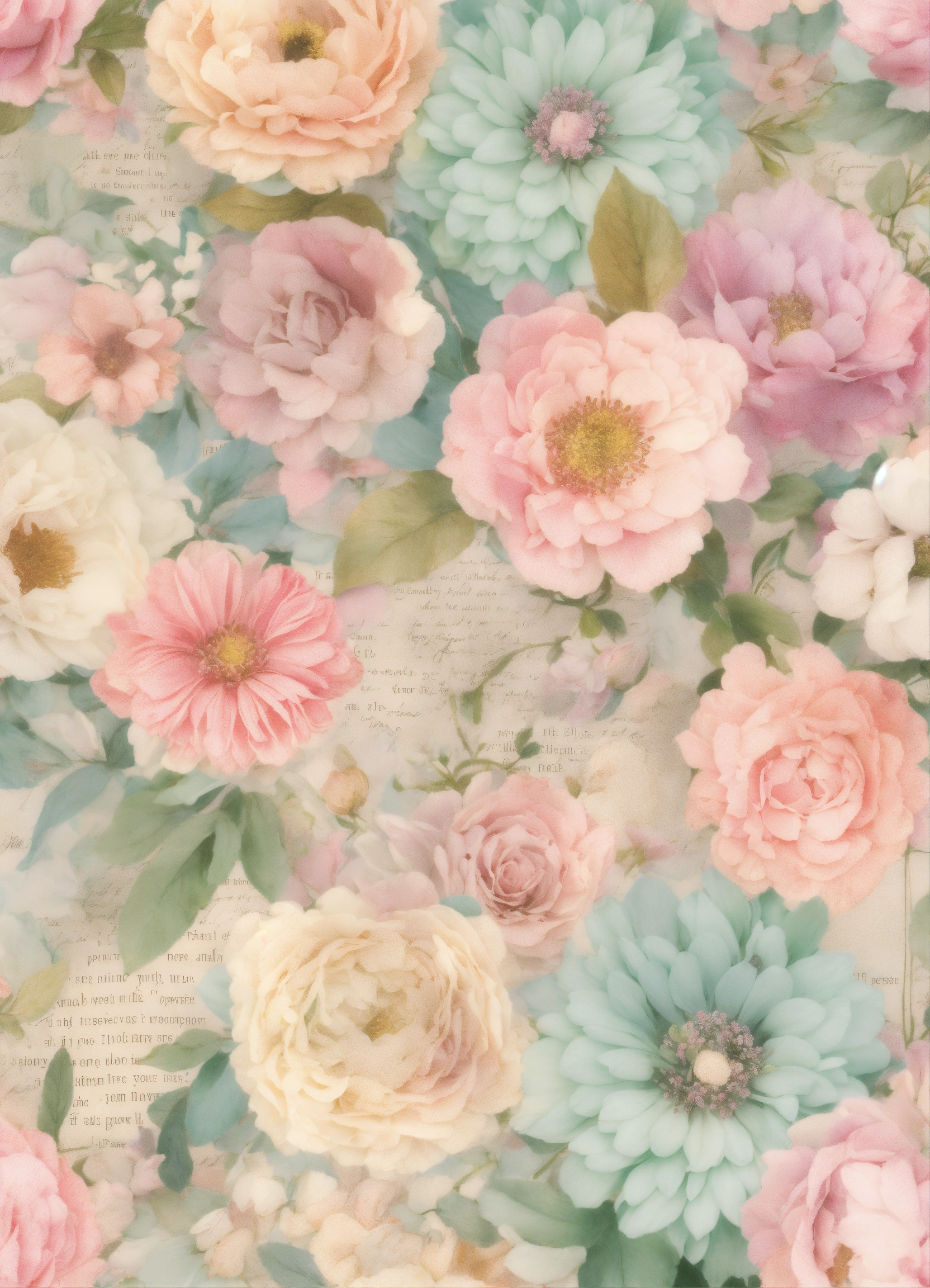 Shabby chic dreamy mist pastel colors junk journaling whimsical flower wreaths seamless background full page