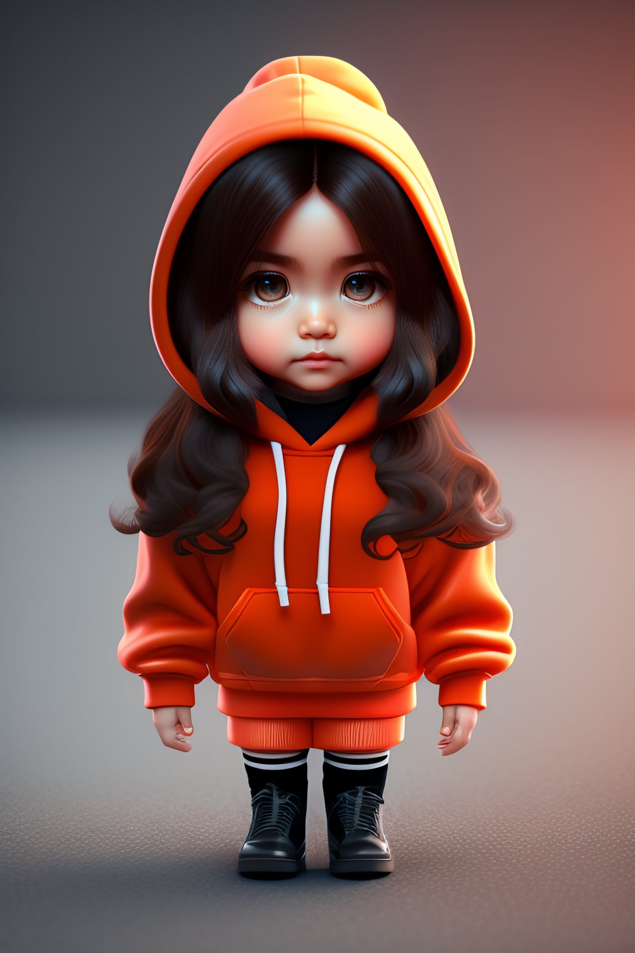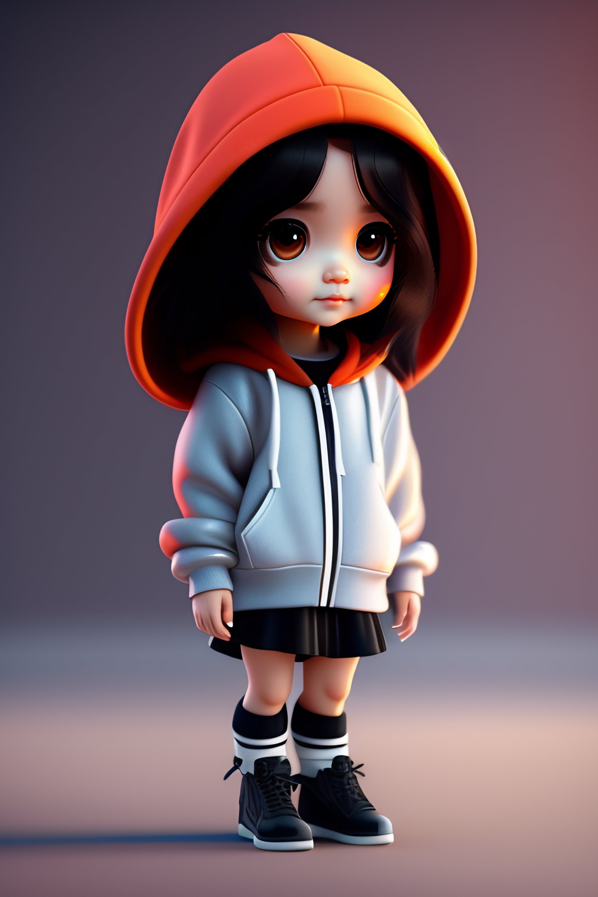 Chibi girl with long hair wearing oversized hoodie and thigh socks 3d render ultra quality hyperrealism