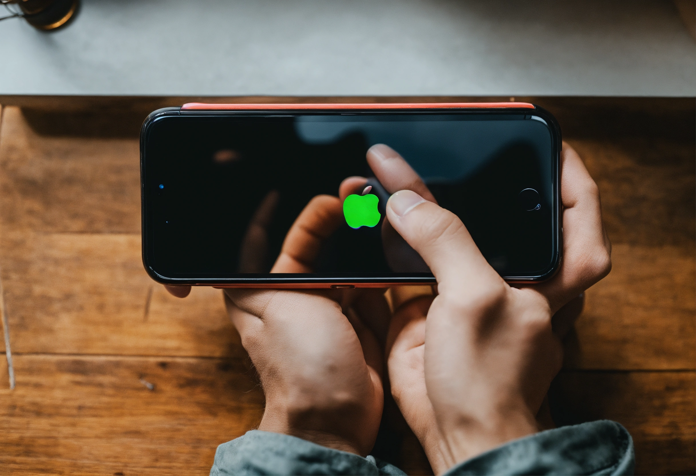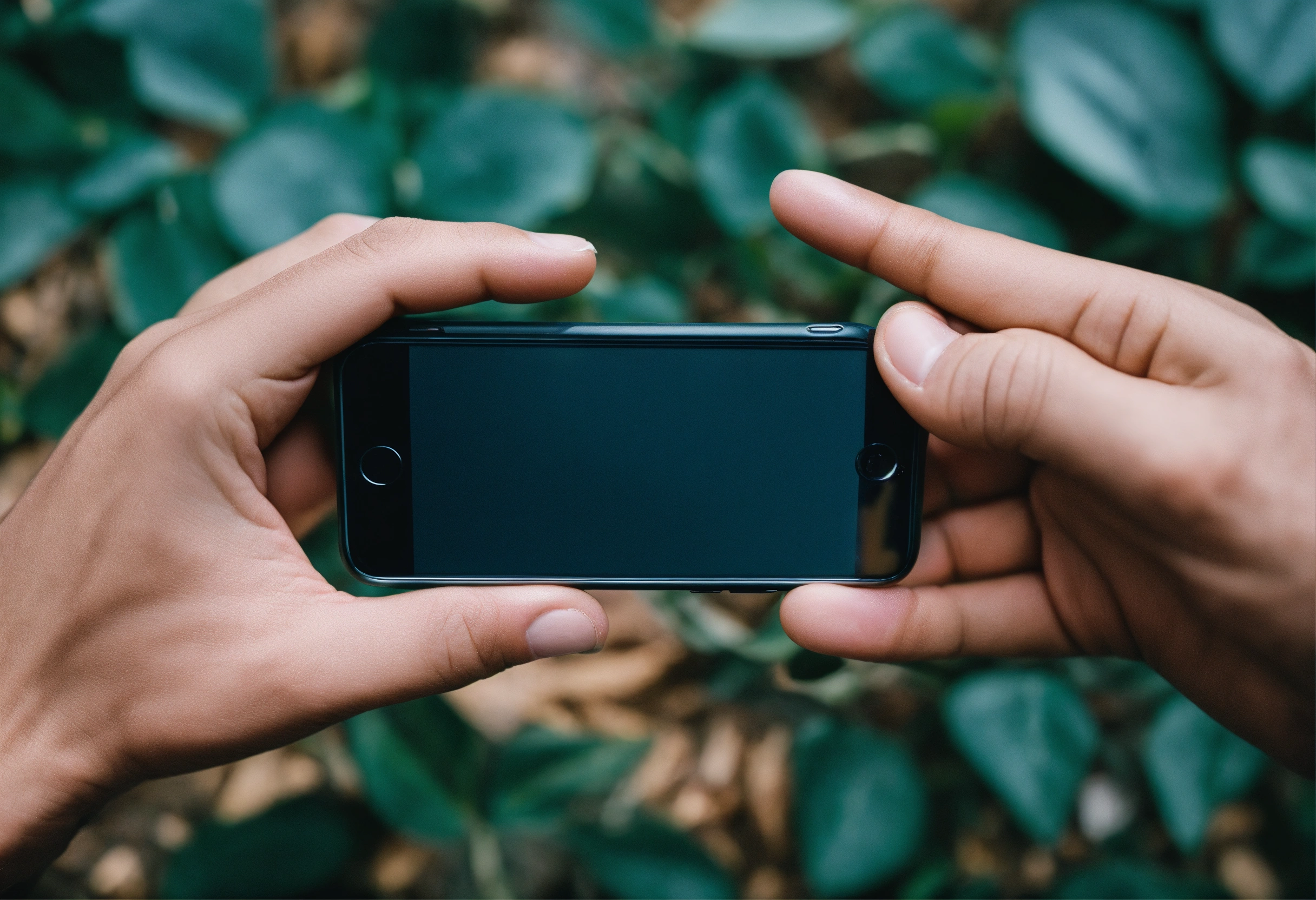 Male hand holding iphone horizontally top view