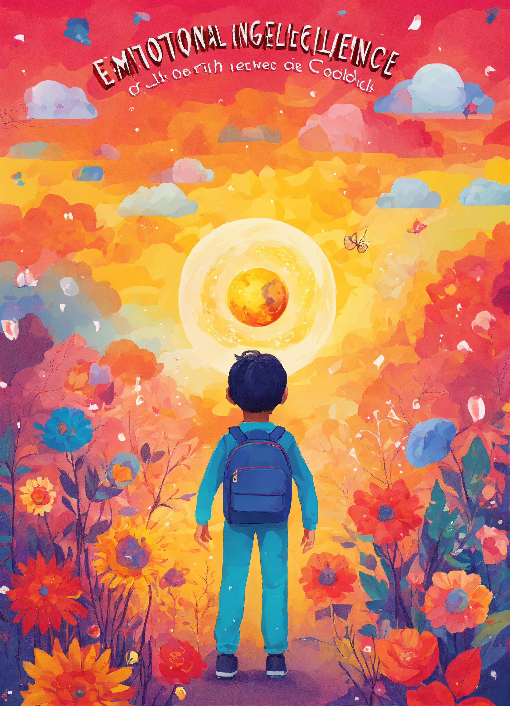 I need a cover for an e-book, the title of the book is emotional intelligence for 8-10 year olds, the background of the cover should be bright and bold to stand out on a bookshelf, the design should be simple and easy to read
