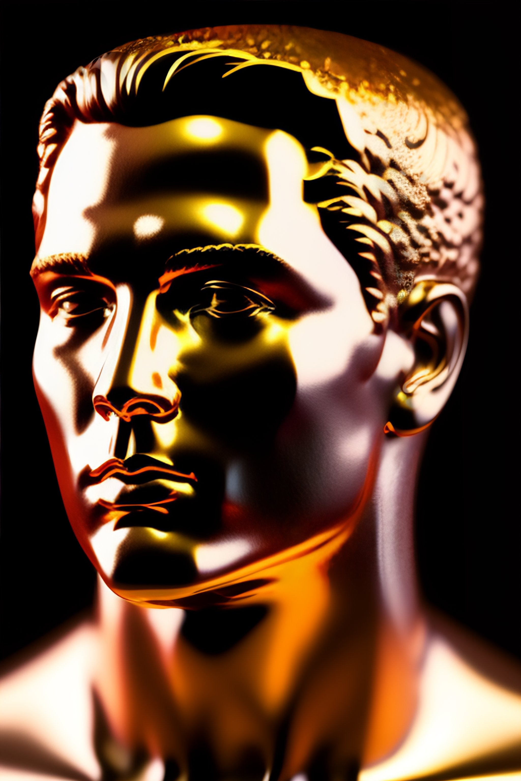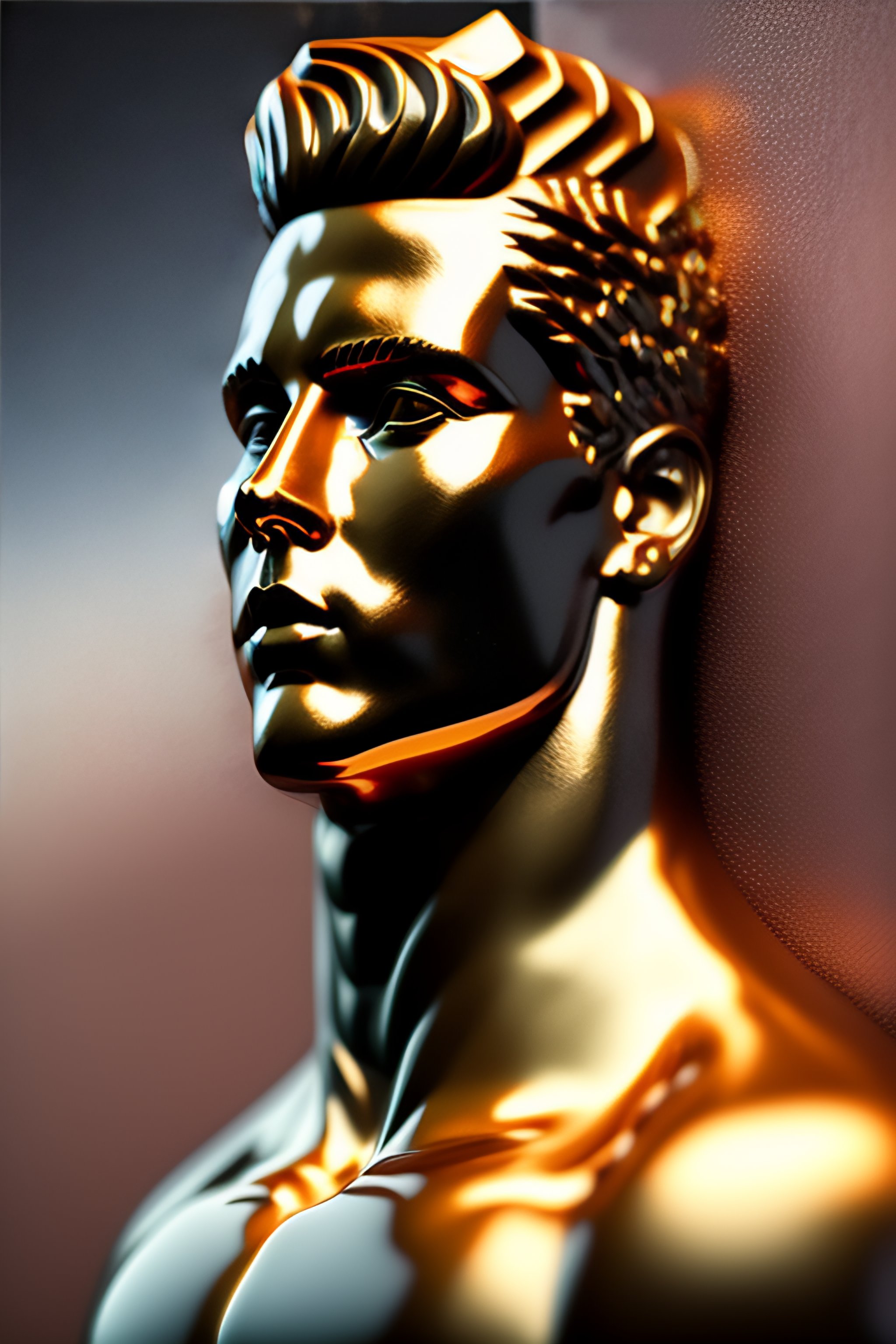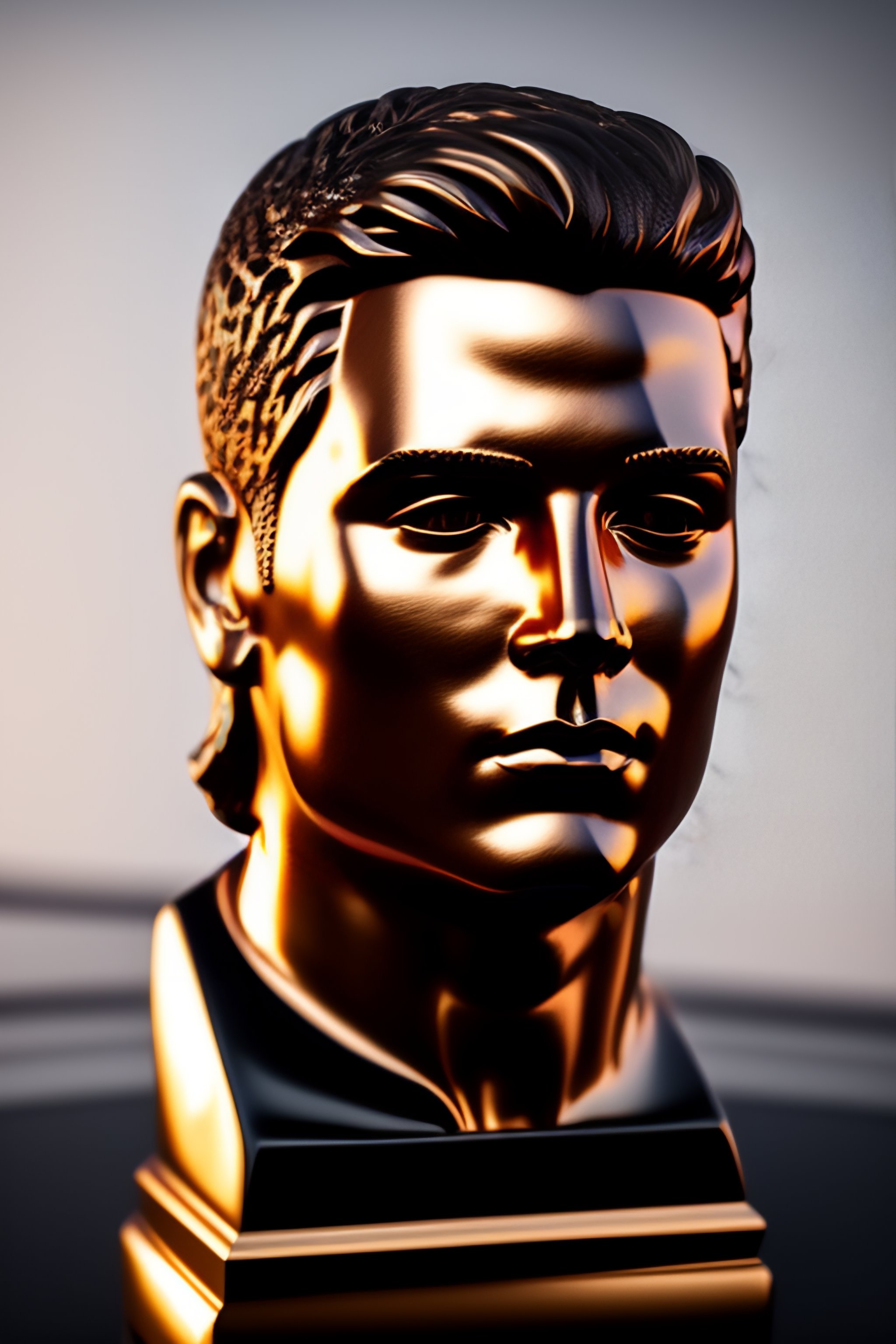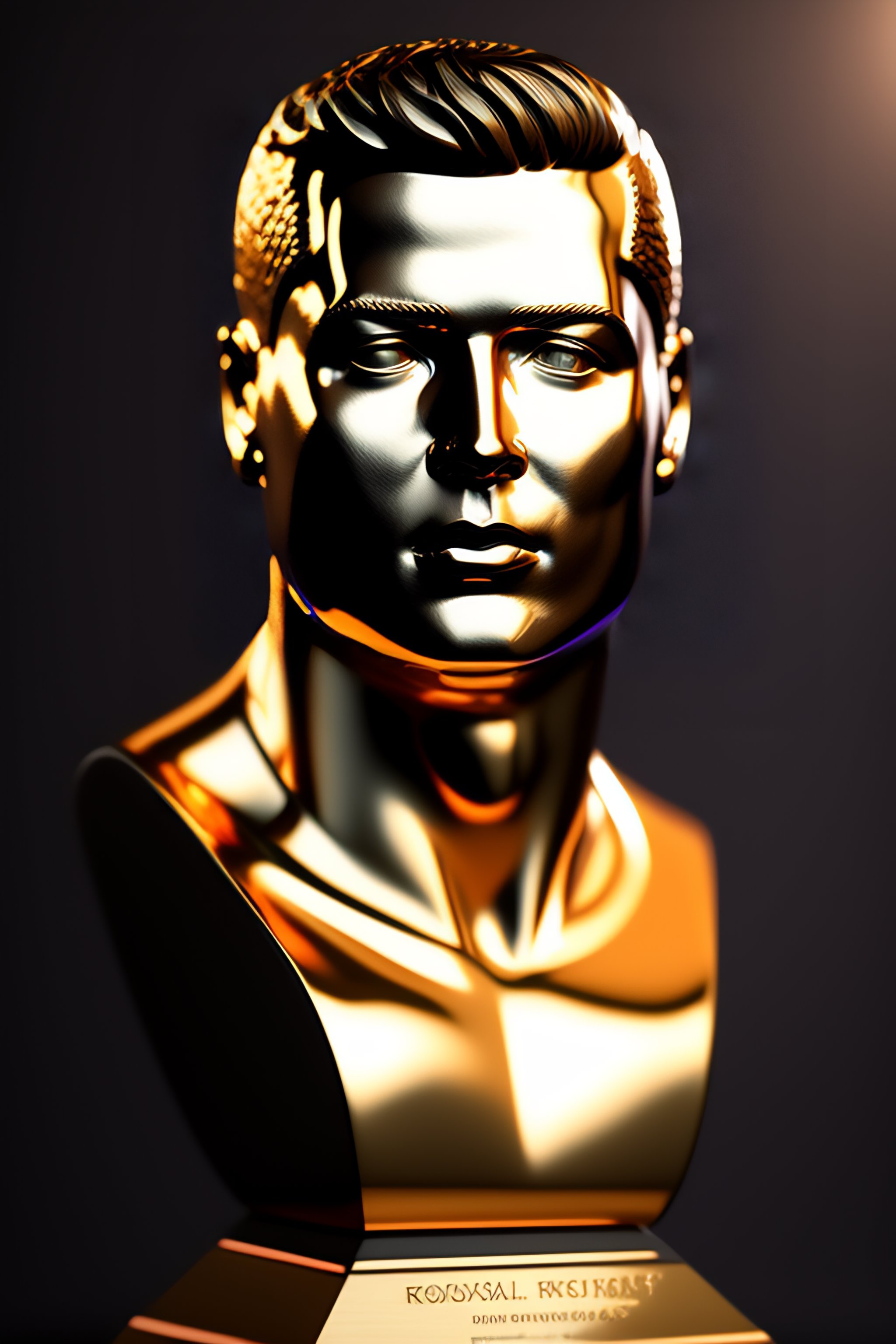 Create a carved trophy of ronaldo with black eye unside and rosegold portrait