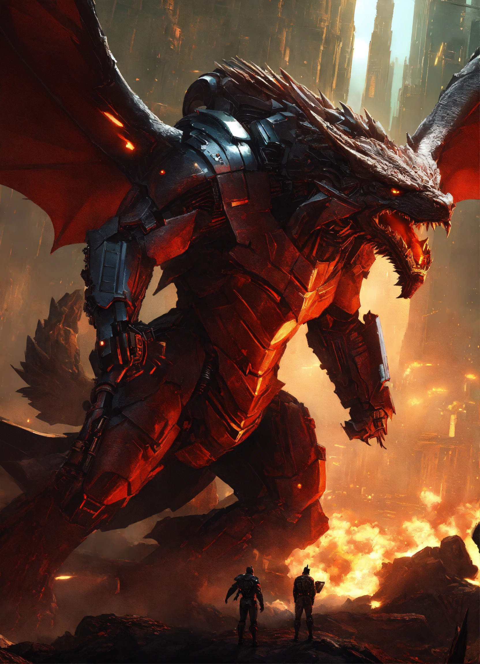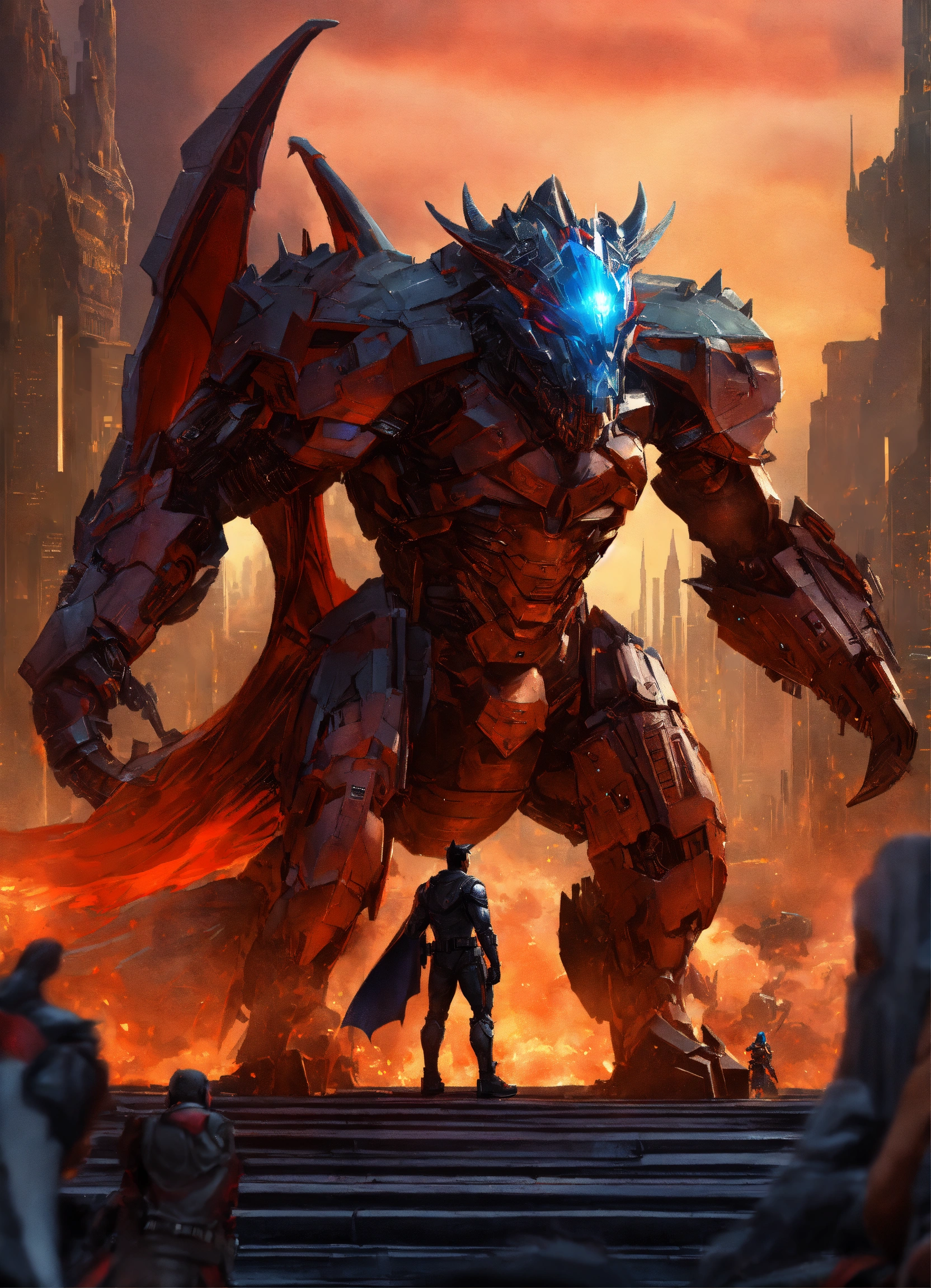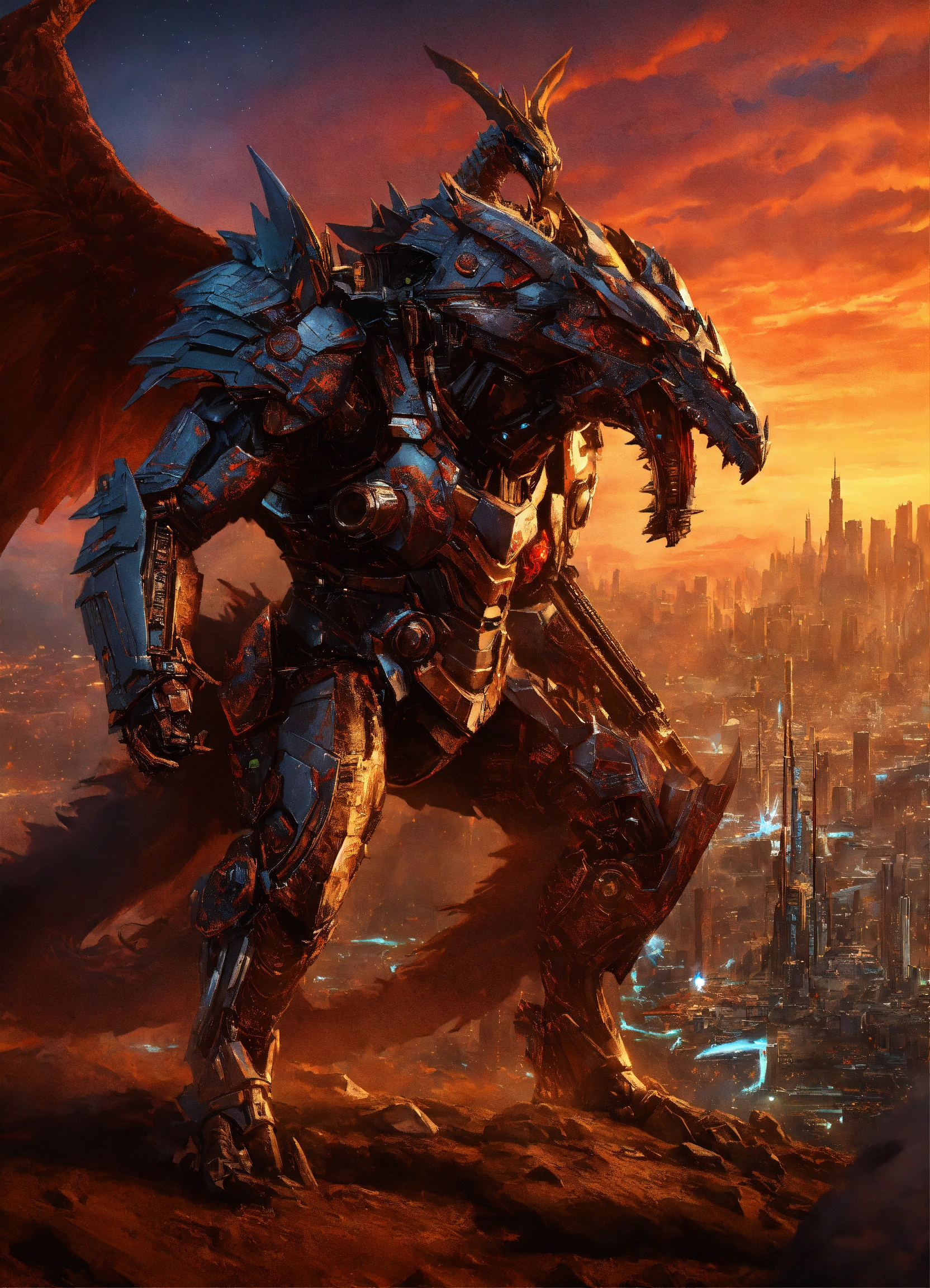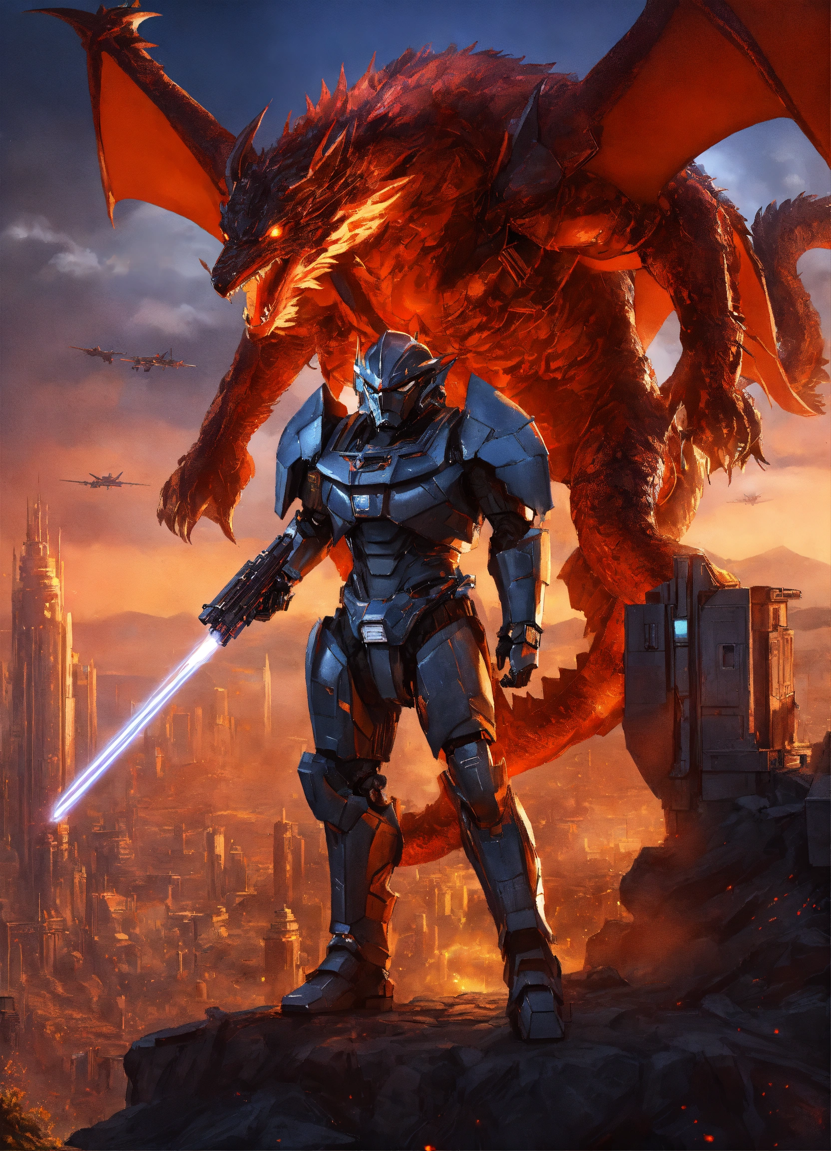 Dragon hybrid mutated male & female werewolves\raven batman, dracula, vampire, superhero athletic cyborg men & women in 60th century dragon-like muscular humanoid in full body armor scenes or mega future blade runner cities scenarios holding 5965 a.d. advanced star wars blasters, laser rifles & ancient looking h. r. giger-like gears of war-like big gun weapons in a photo of a quetzal armored figure fighting on a detailed advanced futuristic civilized back-drop densely or heavily populated worlds with metallic chrome wolf & raven vampire dragons on land & in space vs rom the space knight, battlestar galactica meta-hybrid cylons vs alien cyborg kaiju space predators in style of laurie greasley, studio ghibli, akira, kryptonian, galvatron movie version, tomiyama, gene roddenberry, george lucas, james gilliard, genshin impact, pixiv fanbox, acrylic palette light sabers, 4k, chrome, vibrant colors, deviantart, trending on artstation, rendered in highly detailed cinematic studio quality gci