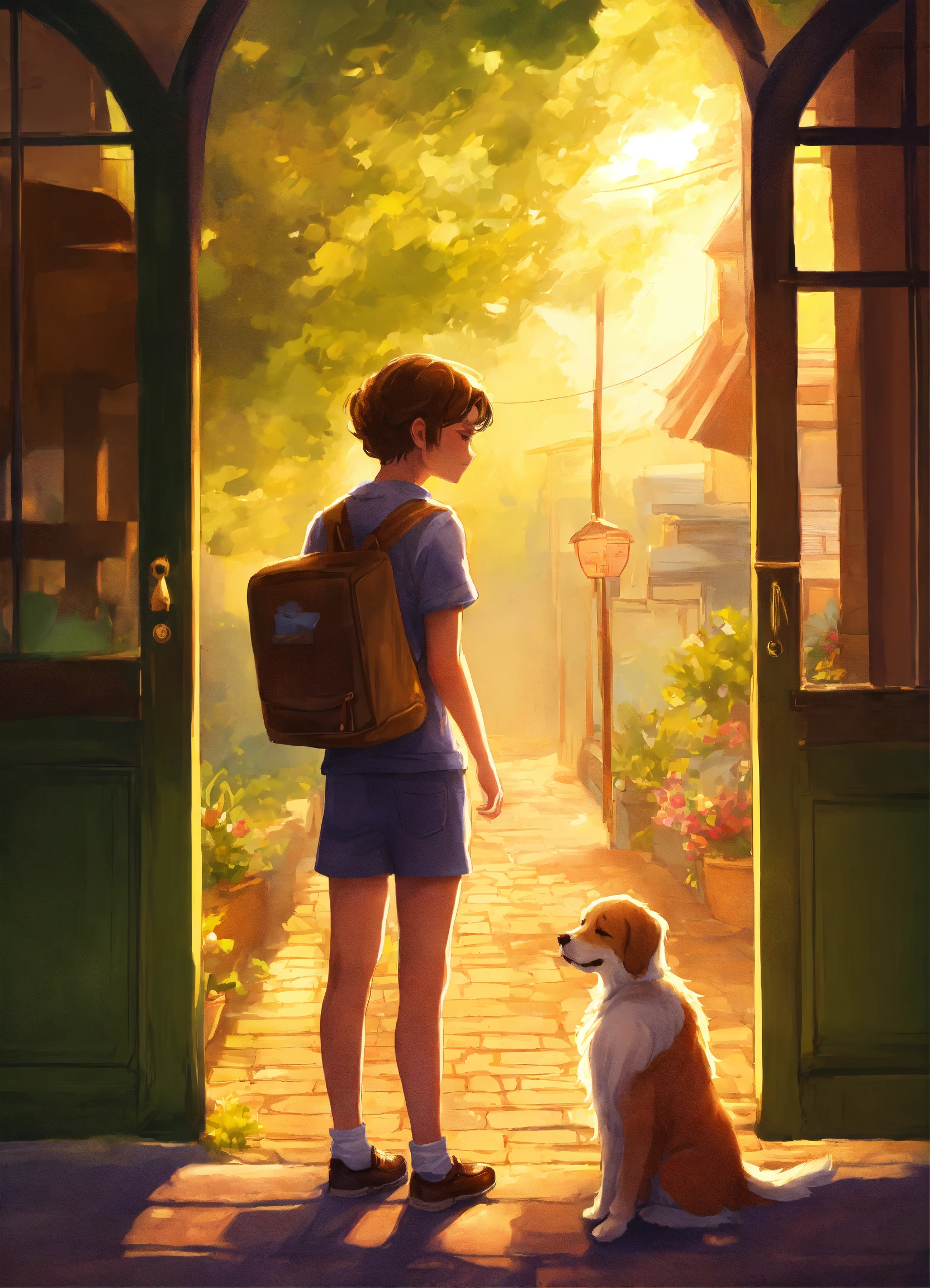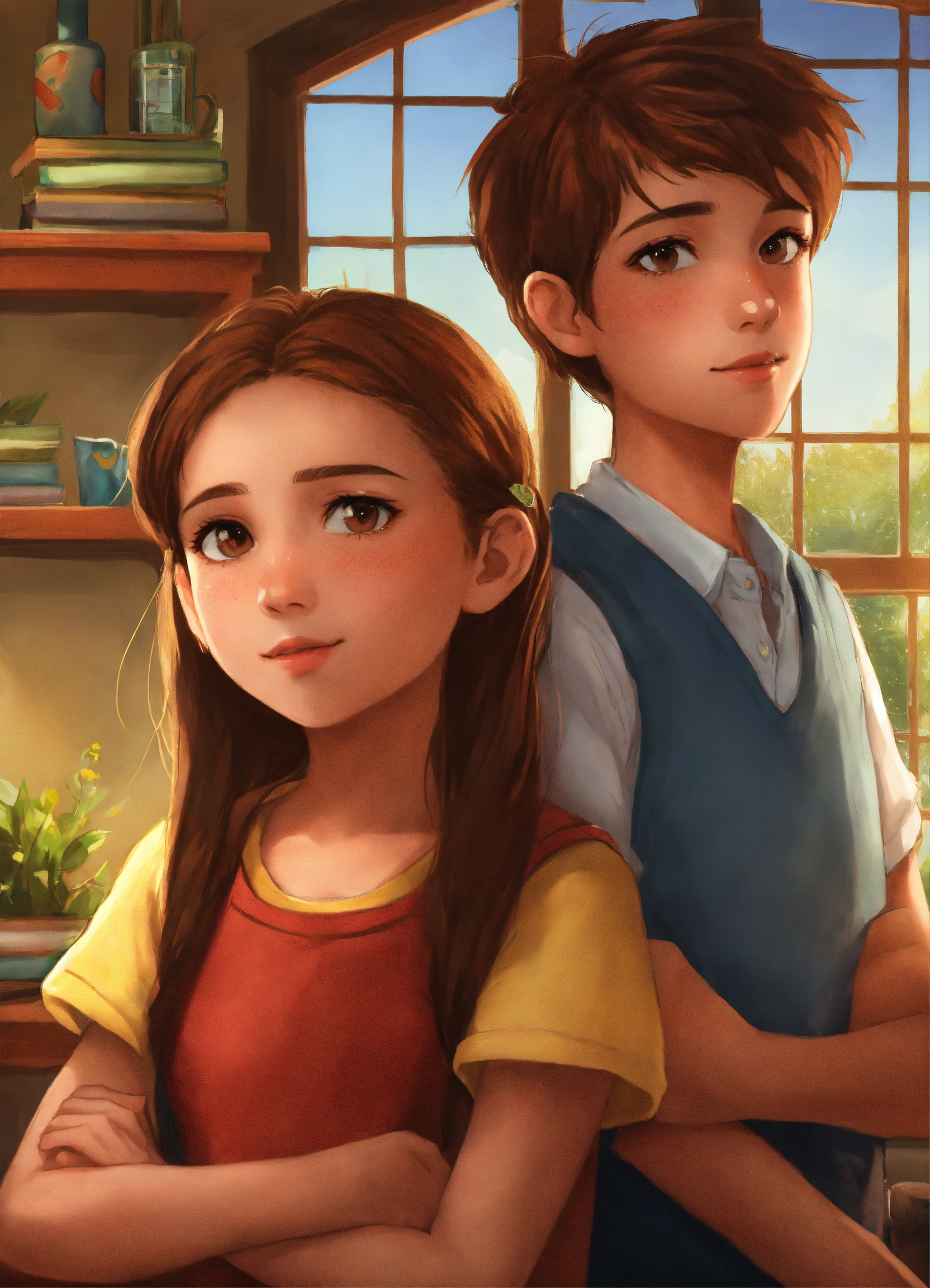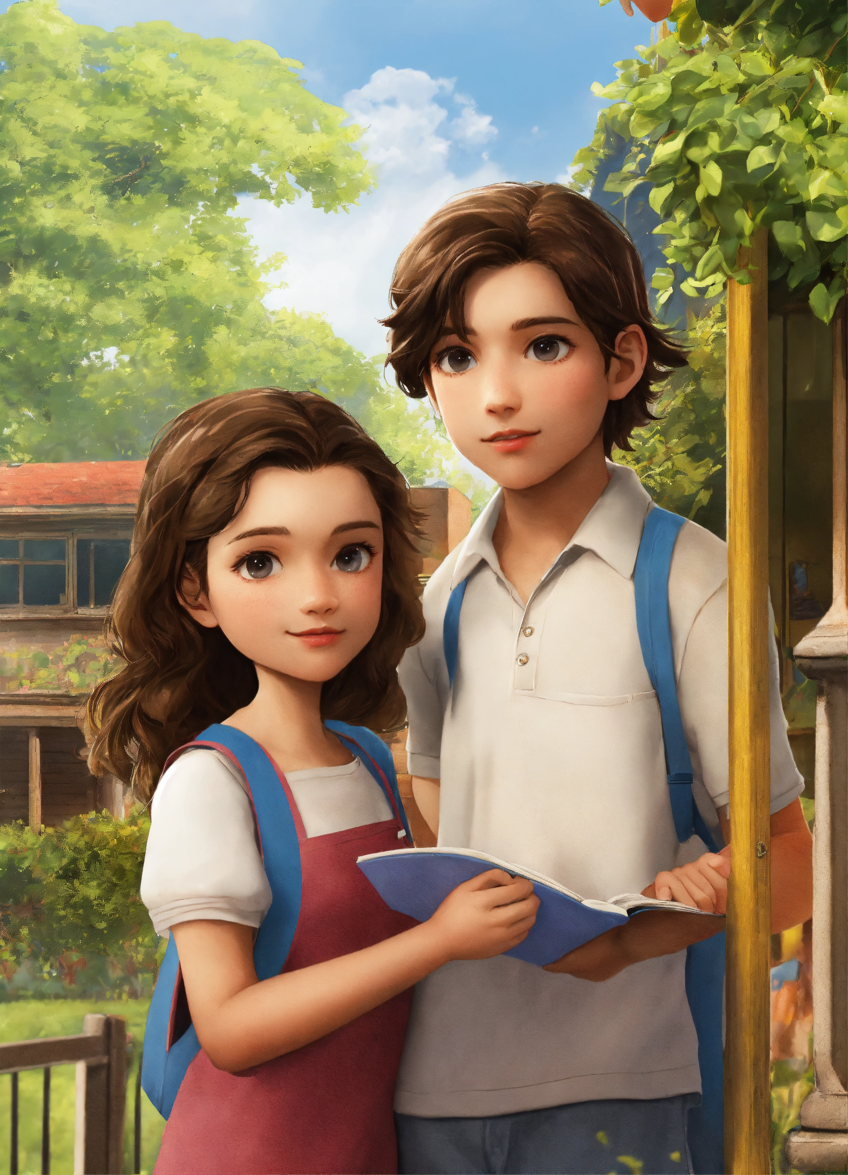 Generate a realistic image for a novel trouble in paradise outline our protagonist is andy. he is friends with emma at school. emma is his neighbor. he studies in the morning. his afternoons are free so he can do various activities in afternoon. at evening he works for miss nia . helping her in various household chores. she is his landlady. andy is a tenant so, by helping her, he doesn’t have to pay. emma lives with her sisters. her elder sister is bella. she is hot and friendly and often gets along with andy. emma’s younger sister is grace. she is going to be jealous of emma late in the story. we will find out. at school, we have