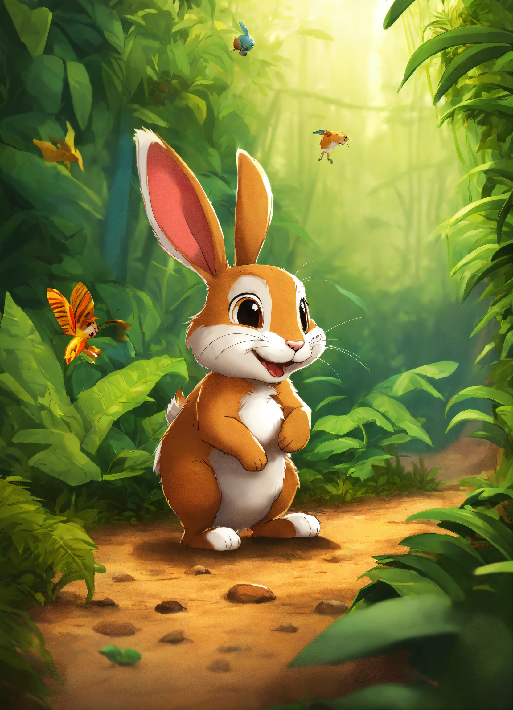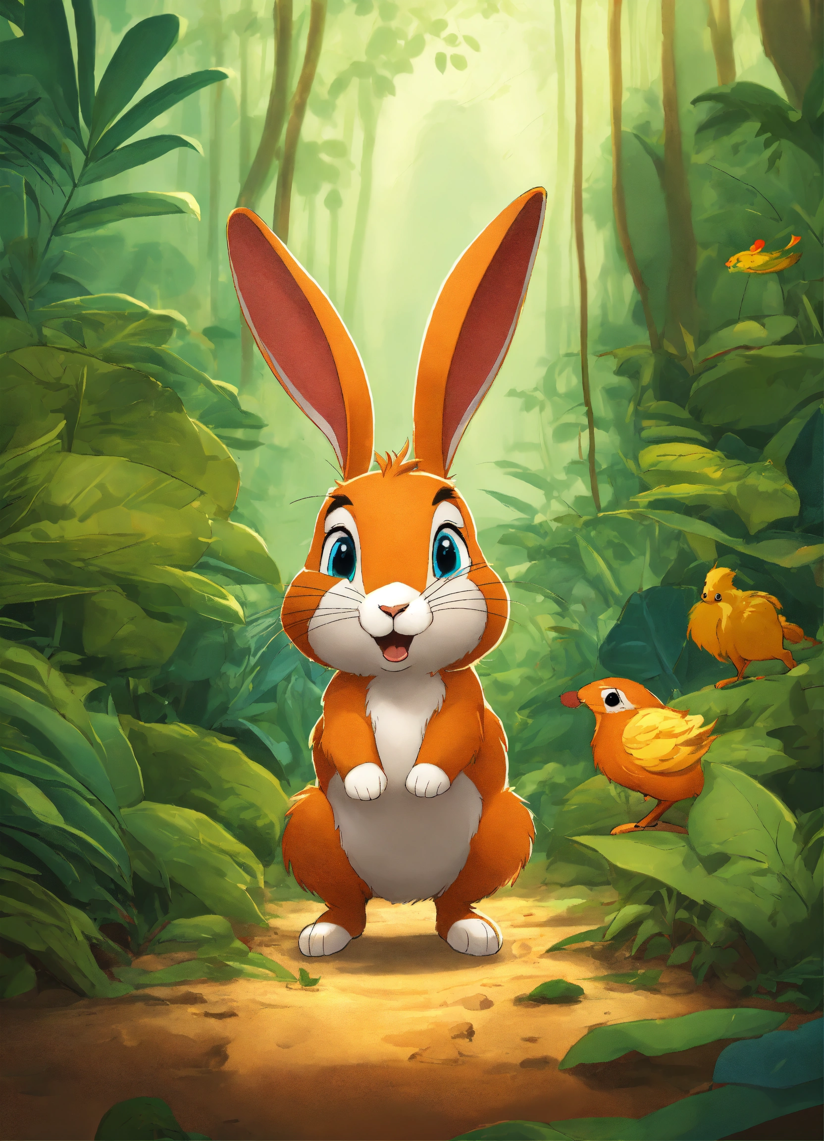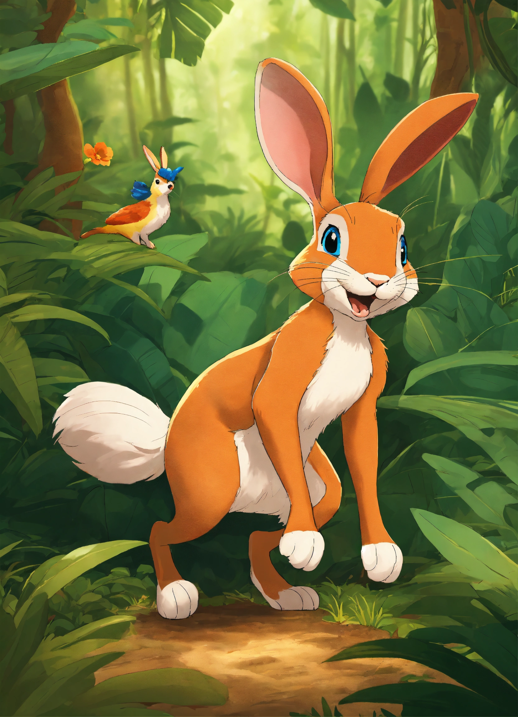 Cartoon in a jungle rabbit was very proud of being faster than other animals