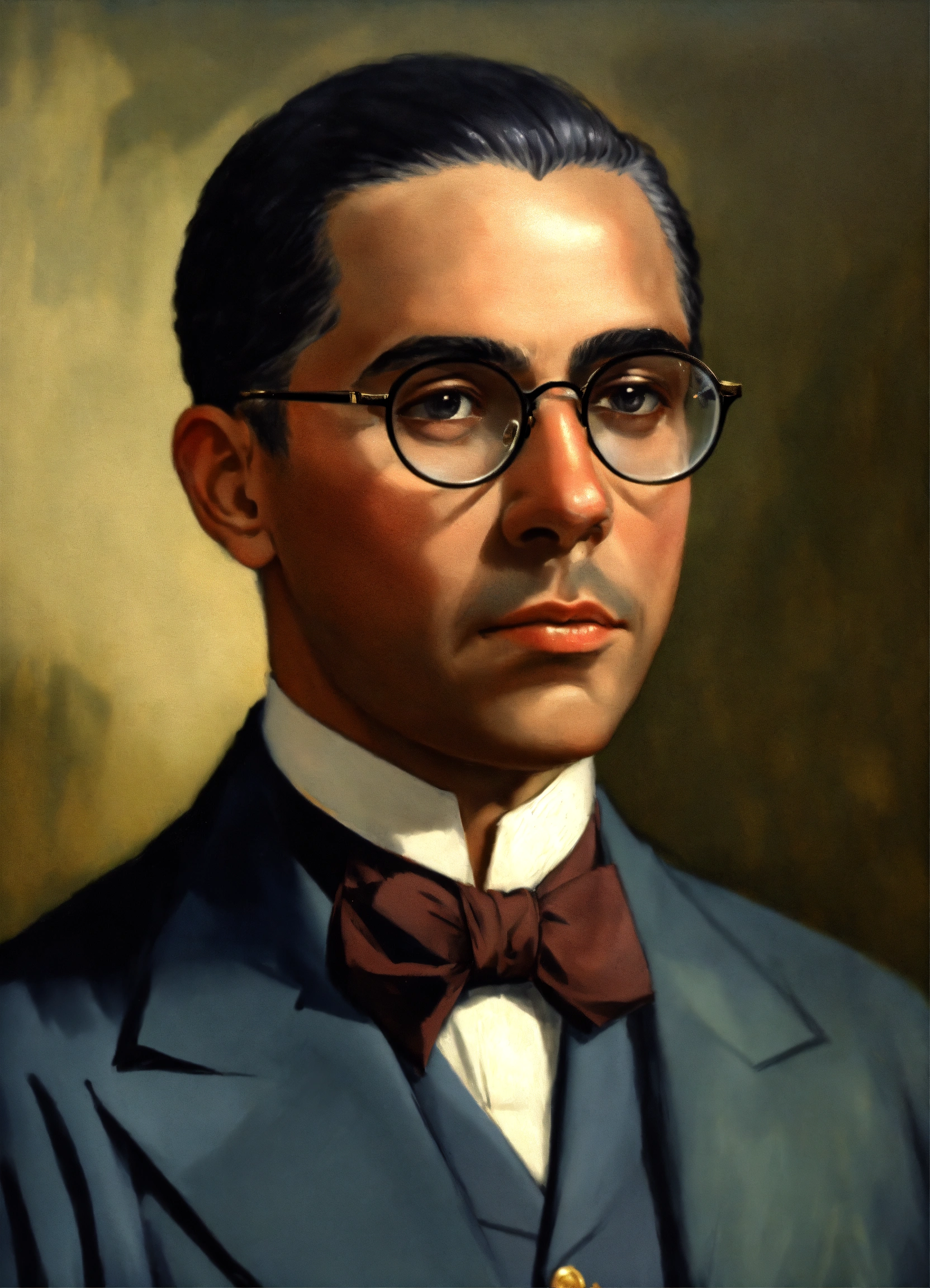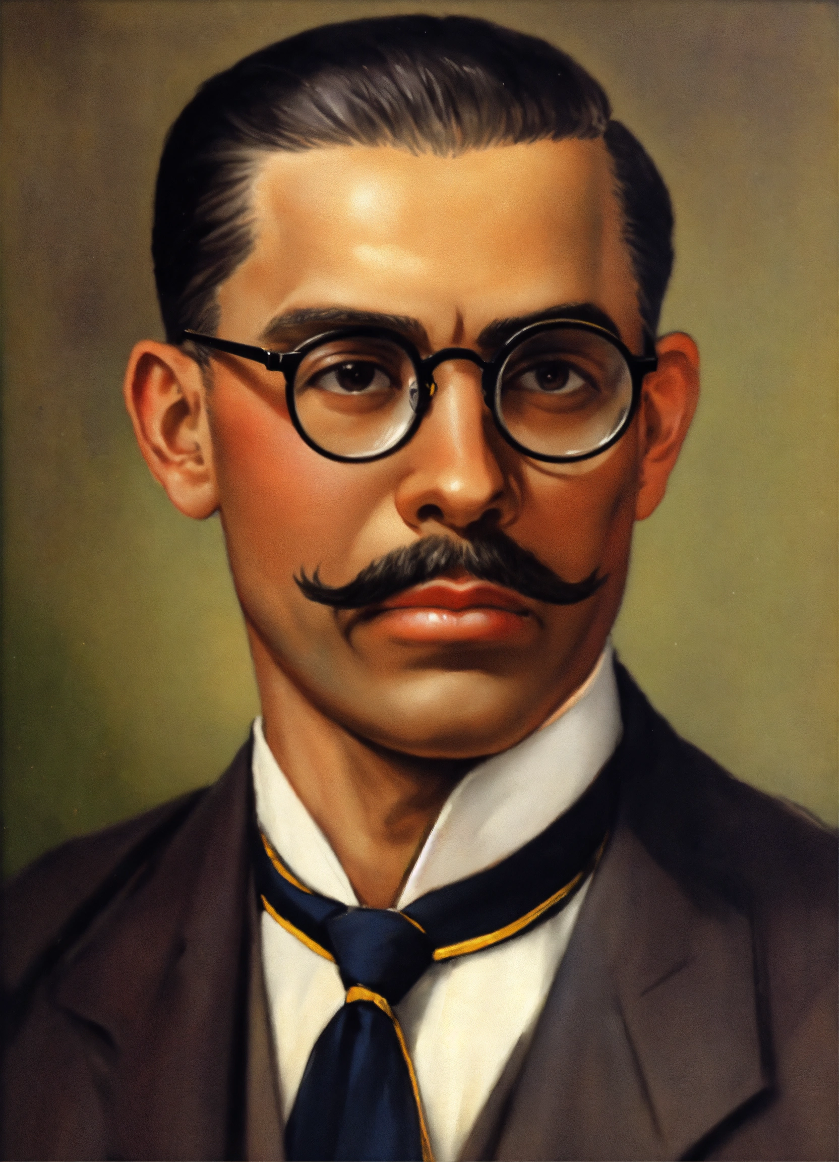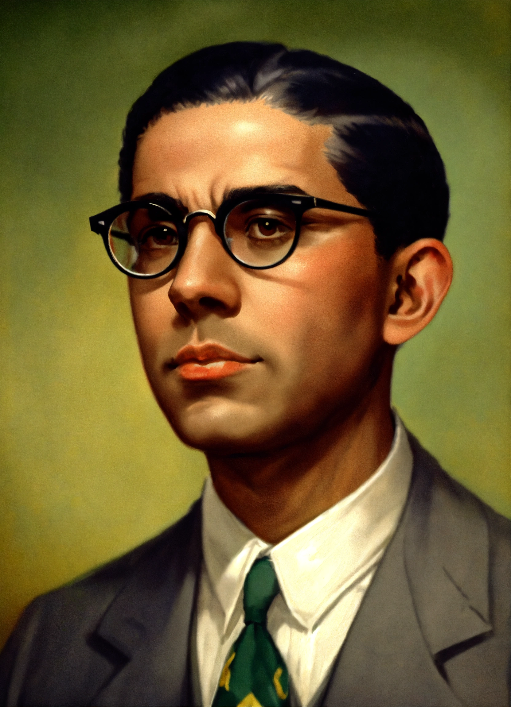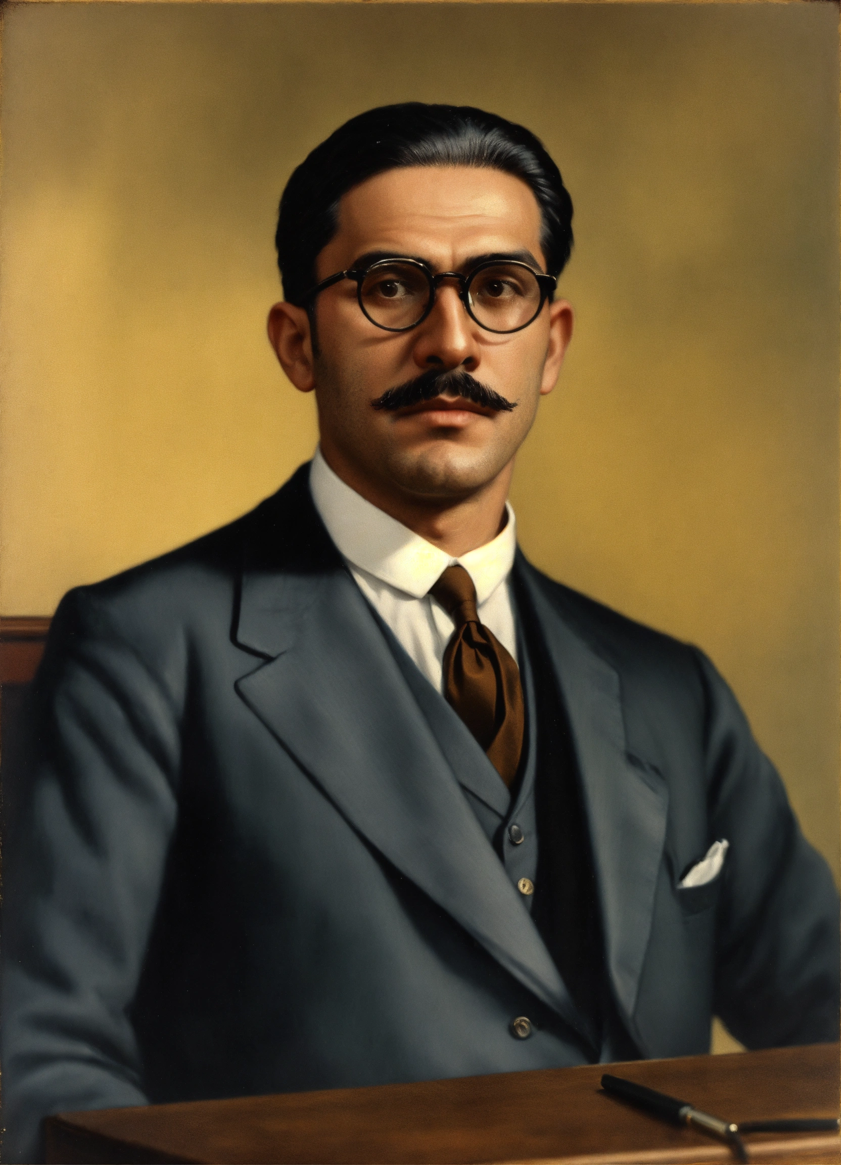 Create a character called anísio spínola teixeira, black hair slicked back with gel, round glasses, no beard, little lips, wearing a suit, he was a brazilian jurist, intellectual, educator and writer. central character in the history of education in brazil, in the 1920s and 1930s