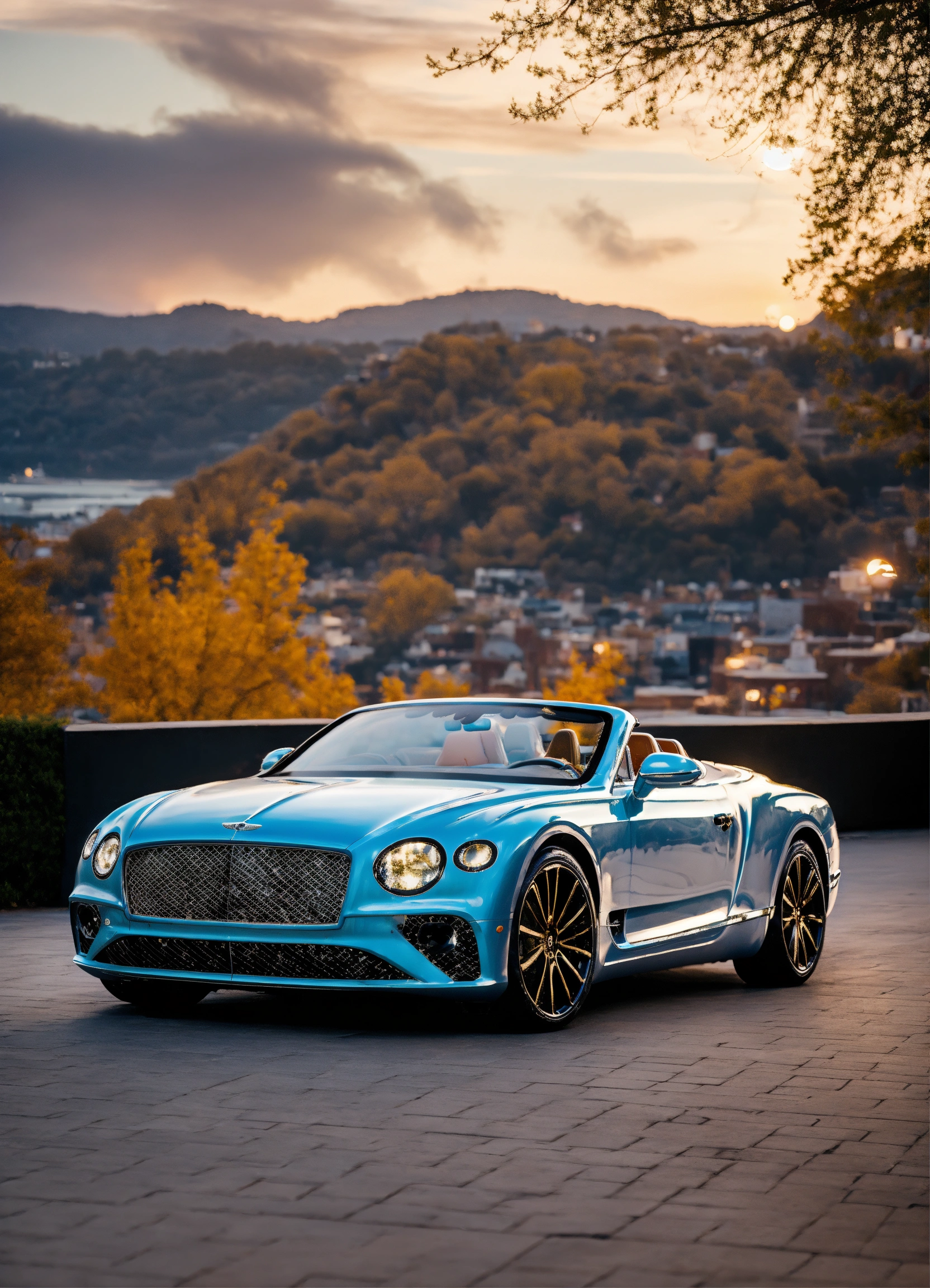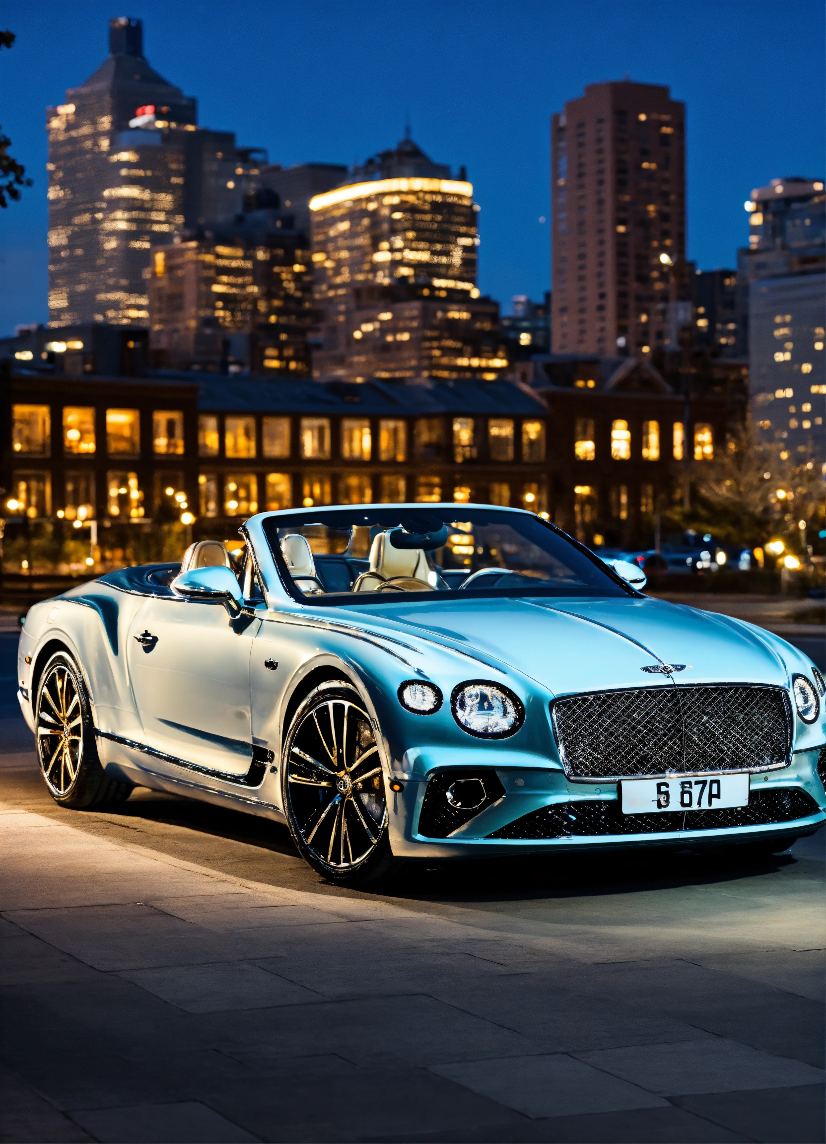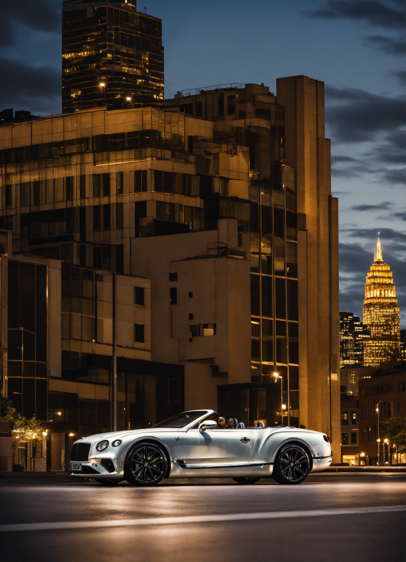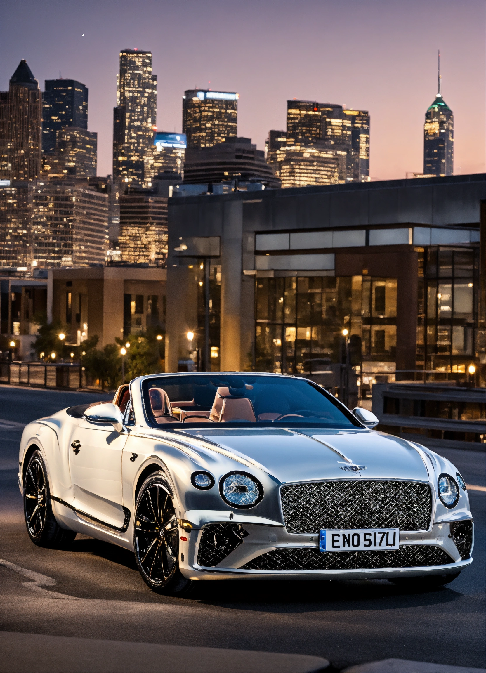 2022 bentley continental gt convertible white with gold trim downtown background with moonlight landscape