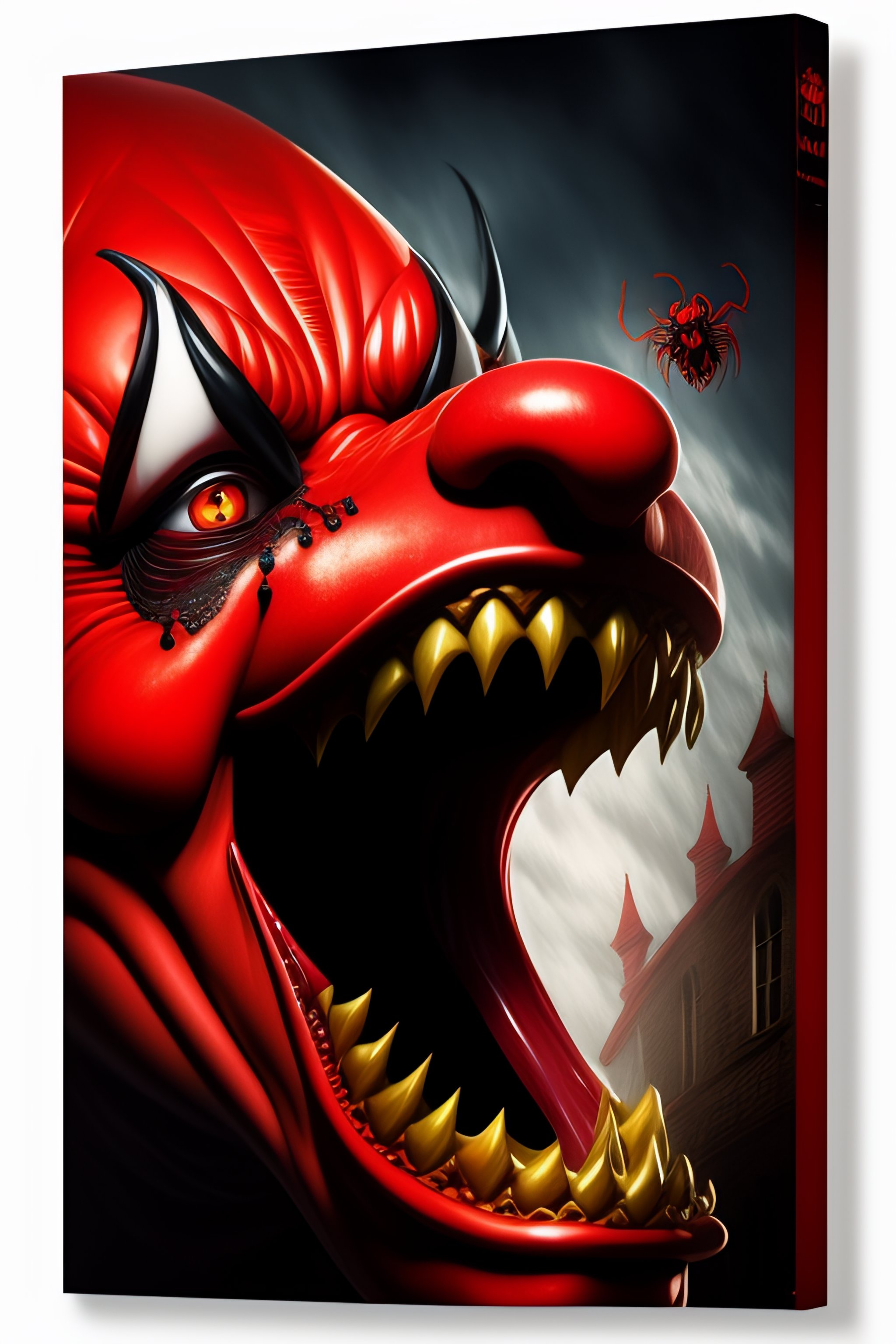 Scary clown, big tooths, red mouth, stephen king novel, derry, penniwise, spider, big, 2d, book, spider eyes