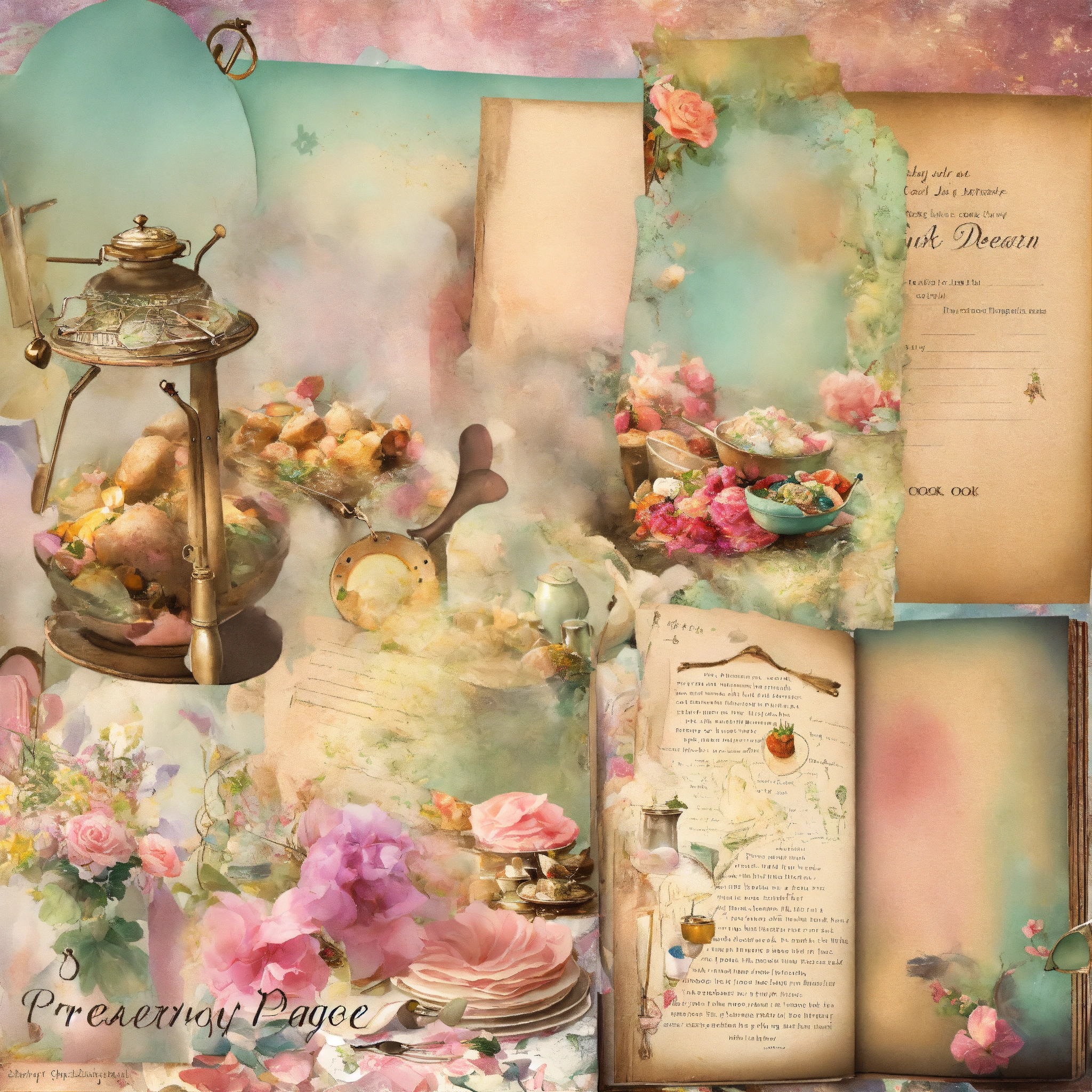Shabby chic dreamy mist pastel junk journals cooking cookbook cook book junk journal digital kit, printable collage sheets, cooking cookbook cook book add on junk journal, journal supplies, ephemera pages swirling magical fairytale abstract art style