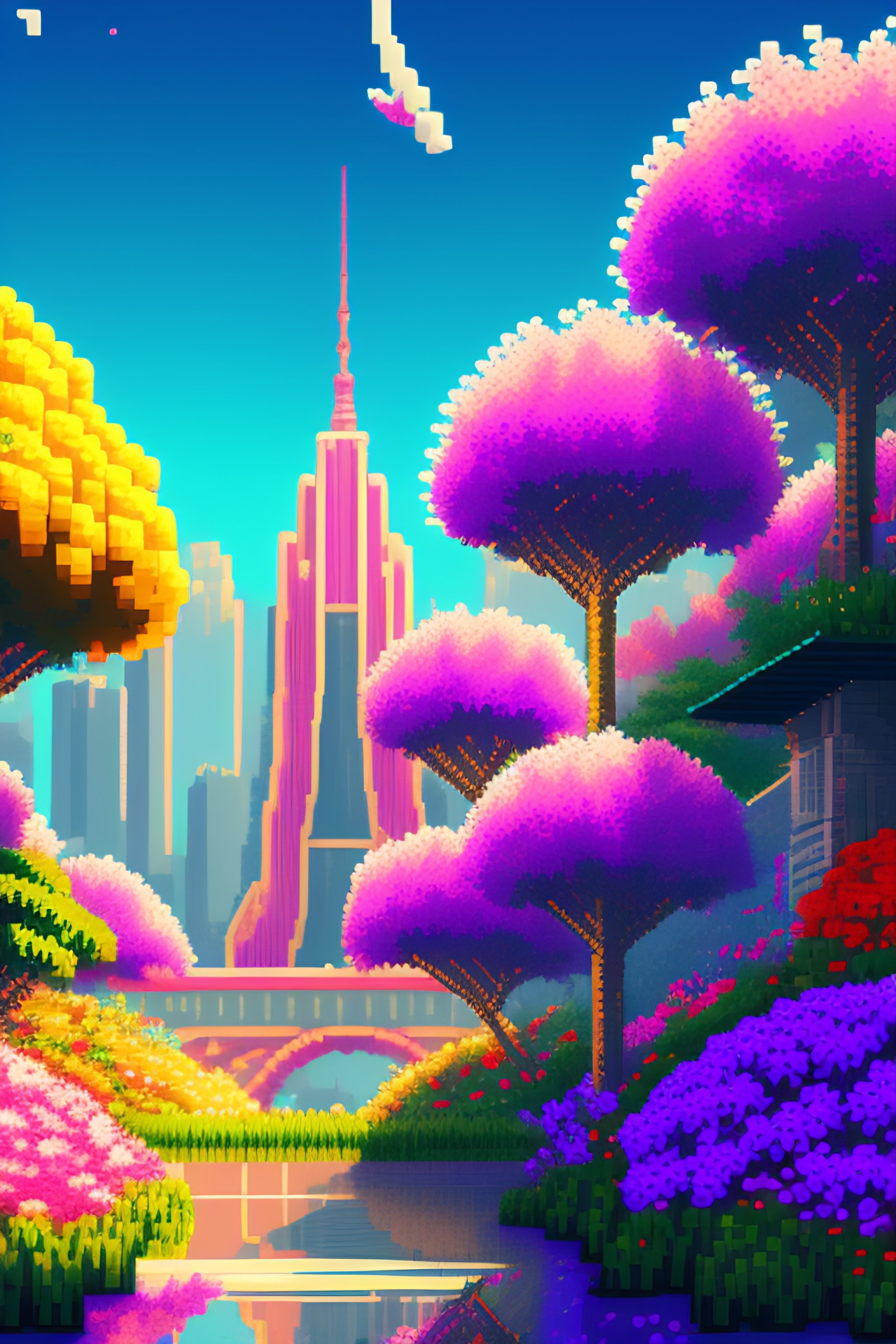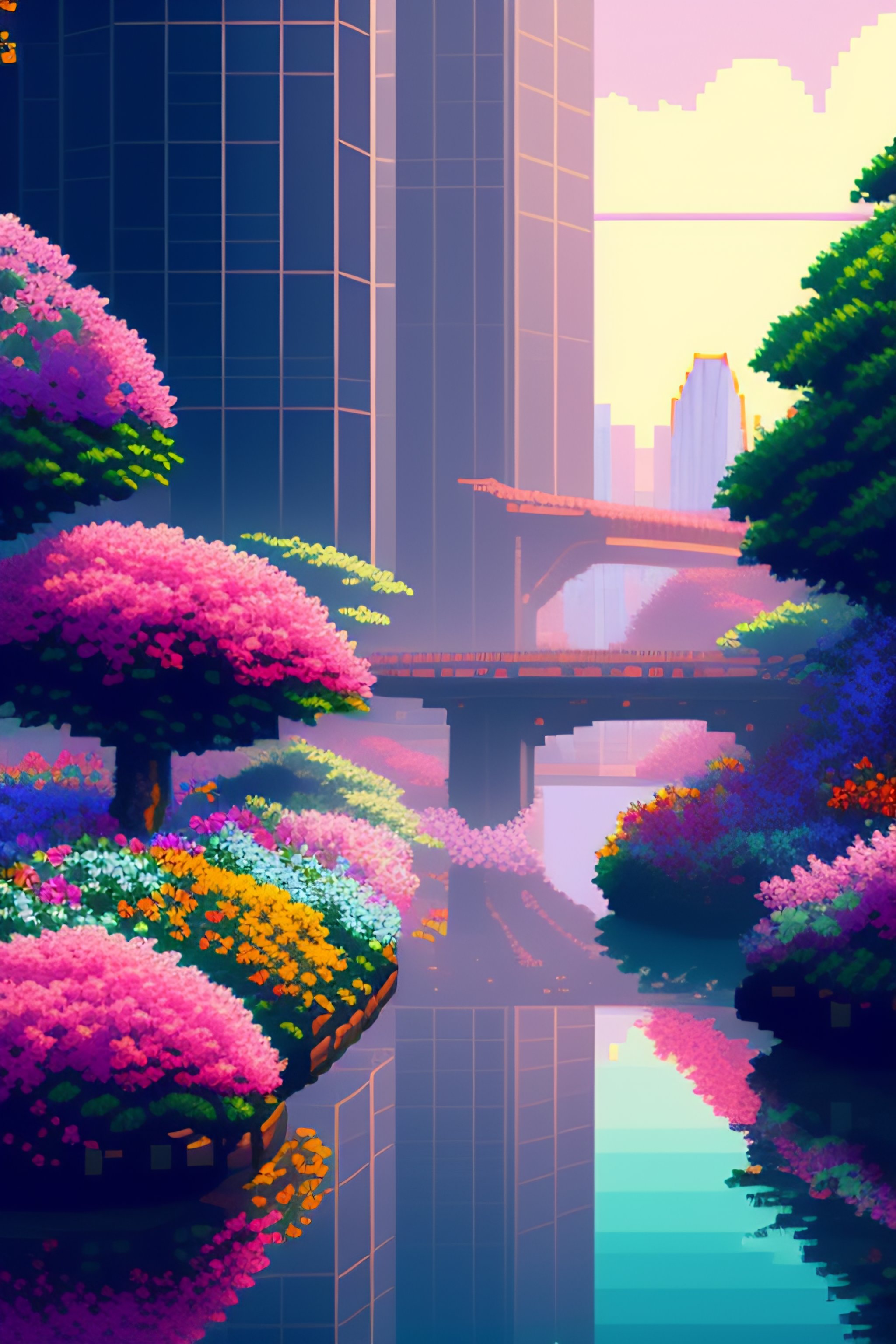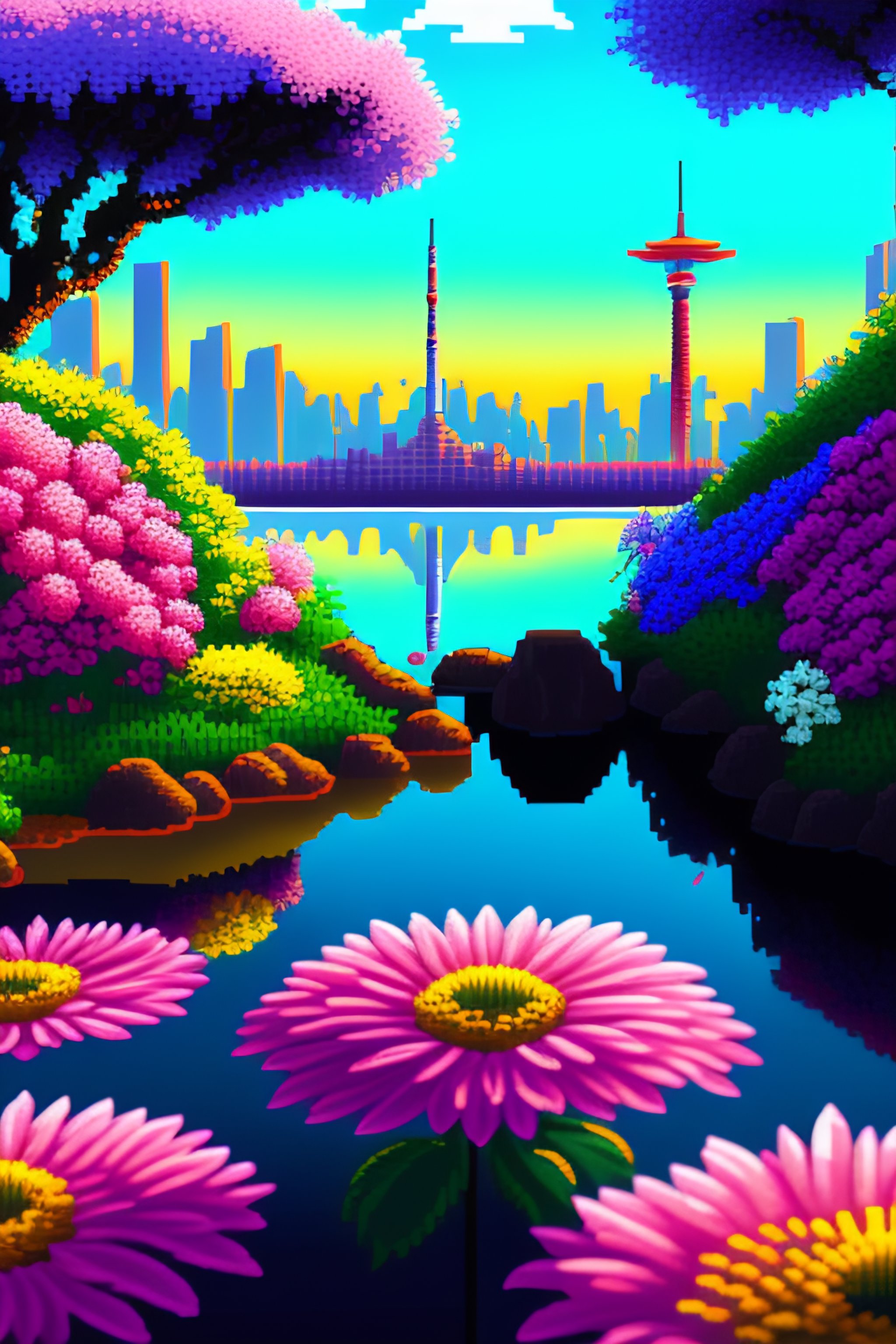 Pixel art tokyo, 3d pixel art 4k wallpaper, incredible pixel art details, flowers, pixel art, lots of flowers in foreground