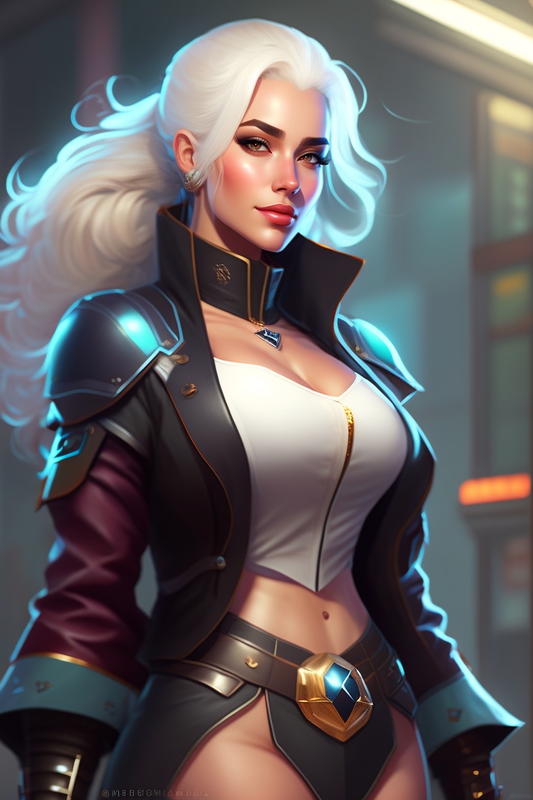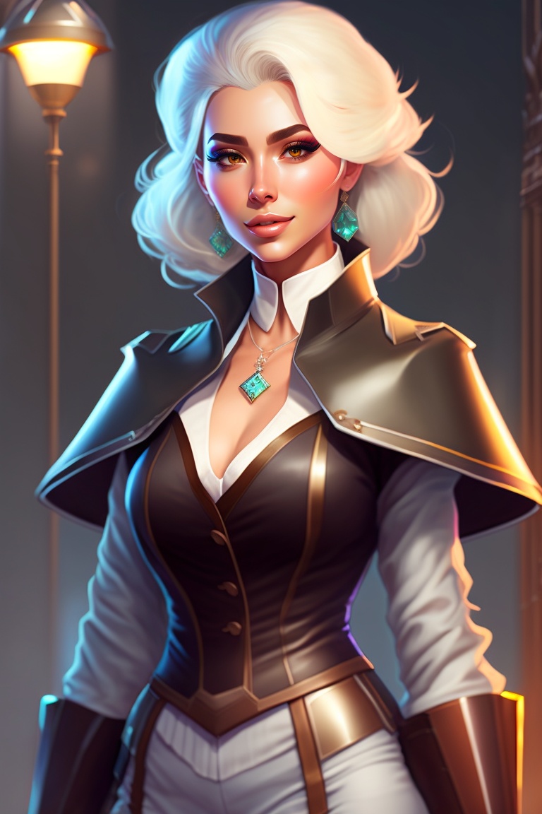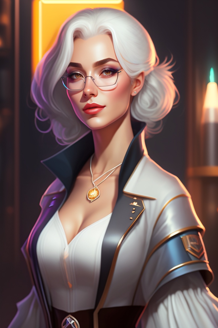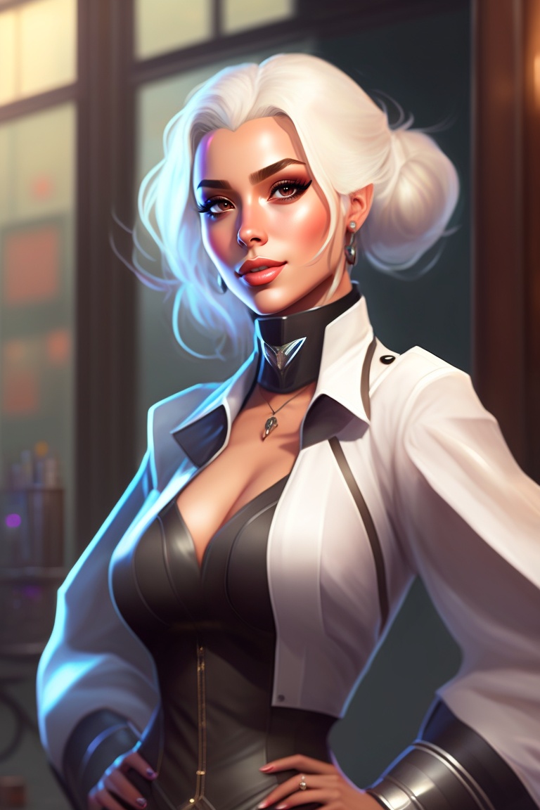 Extremely attractive female doctor, natural beauty, white hair, dark mood, dark light, digital art, concept art, character art, stylized, athletic, wide hips, plump, thick lips