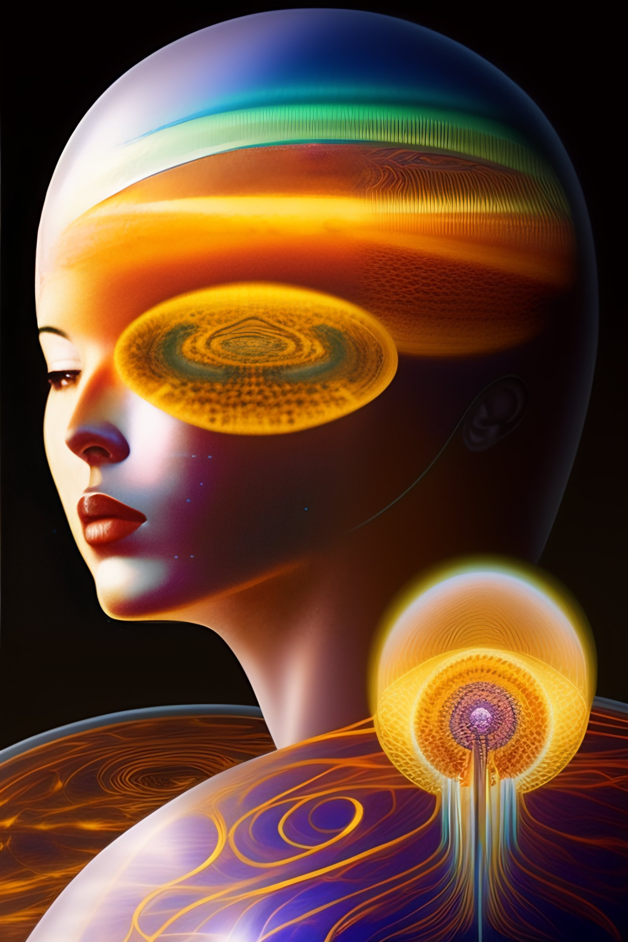 Portrait of magas, an alien humanoid species the magas have a small, almond-shaped organ located in the center of their brain called the "psychic gland." this gland is responsible for their ability to sense and perceive things beyond the five traditional senses of sight, hearing, taste, touch, and smell. the psychic gland is highly sensitive and can pick up on subtle vibrations, energy fields, and emotional states, allowing the magas to have a heightened awareness of their surroundings and the people and creatures around them. the psychic gland is connected to a network of fine, hair-like fibers called "psychic fibers" that run throughout the magas' body. these fibers act like antennae, picking up on the faintest of signals and transmitting them to the psychic gland for interpretation. the psychic fibers are particularly sensitive to the emotions of others, allowing the magas to sense when someone is happy, sad, angry, or fearful, even if they are not exhibiting any outward signs of emotion. the psychic gland and the psychic fibers are protected by a thin layer of tissue called the "psychic sheath, " which helps to filter out unnecessary or overwhelming stimuli. the psychic sheath is particularly important when the magas are in crowded or chaotic environments, as it helps to prevent sensory overload. overall, the psychic gland and its associated parts and fibers allow the magas to have a sixth sense that allows them to perceive and interact with the world in a way that is beyond the capabilities of other beings. one of the most important of these external parts is the "psychic antenna, " which is located on the top of the magas' head. the psychic antenna is a small, spiky protuberance that is connected to the psychic gland and the 6th sense organ via a network of fine, hair-like fibers. the psychic antenna is highly sensitive and is able to pick up on a wide range of stimuli, including electromagnetic fields, vibrations, and energy fields. the psychic antenna is especially useful for detecting the presence of other magas, as it is able to detect the unique energy signature of each individual. another important external organ is the "psychic eye, " which is located on the forehead of the magas. the psychic eye is a small, glowing orb that is connected to the psychic gland and the 6th sense organ via a network of blood vessels and nerves. the psychic eye is highly sensitive and is able to perceive things that are beyond the range of human vision, such as ultraviolet and infrared light. the psychic eye is also able to perceive auras and energy fields, allowing the magas to sense the emotions and intentions of others. finally, the magas have a number of small, plump protuberances called "psychic tentacles" located on their fingers and toes. the psychic tentacles are highly sensitive and are able to detect subtle changes in the environment, such as changes in temperature, humidity, and air pressure. the psychic tentacles are also able to detect the presence of other living beings, and are often used to communicate with other magas through touch.