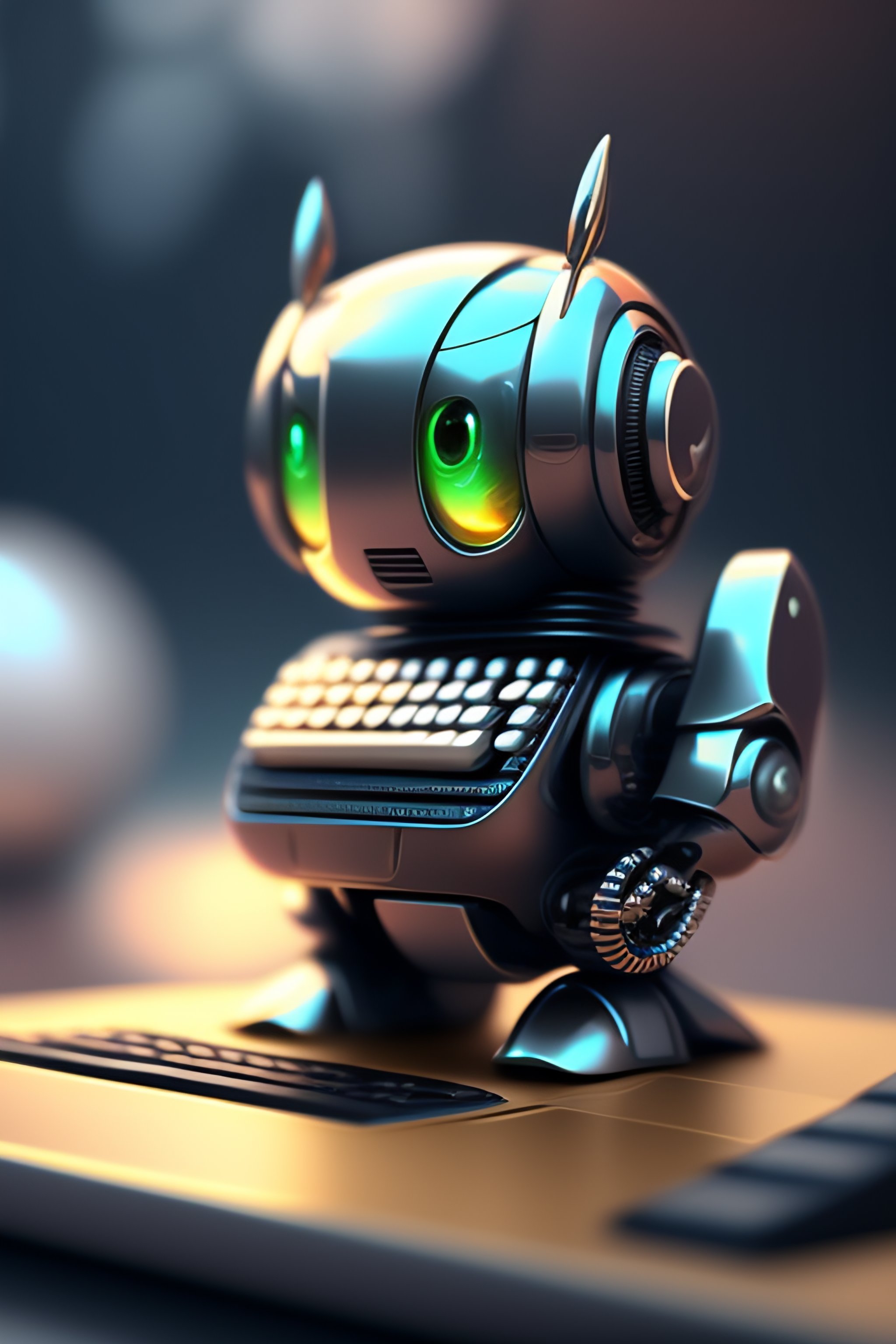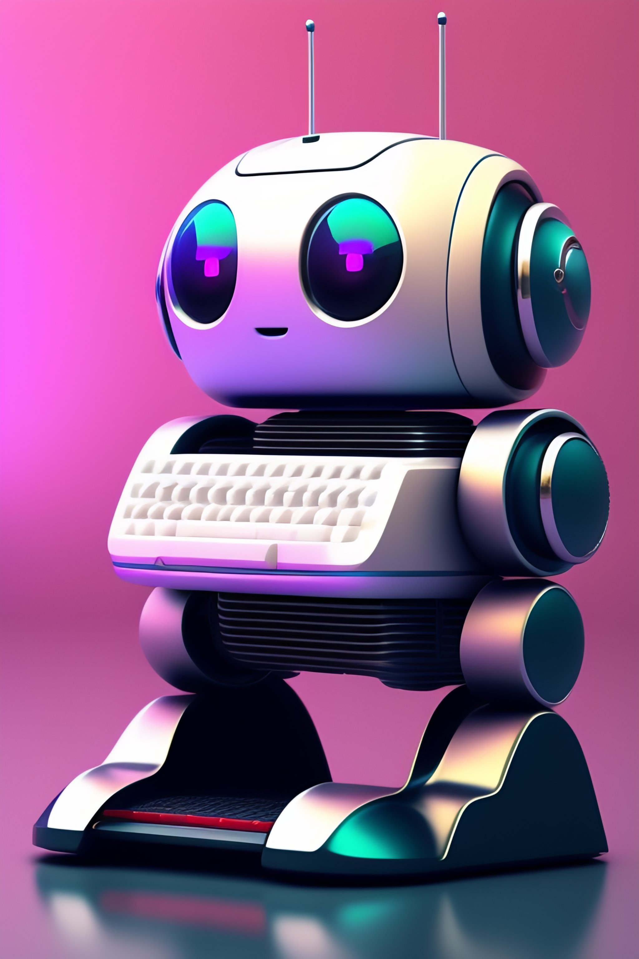 Cute robot typing in computer realistc