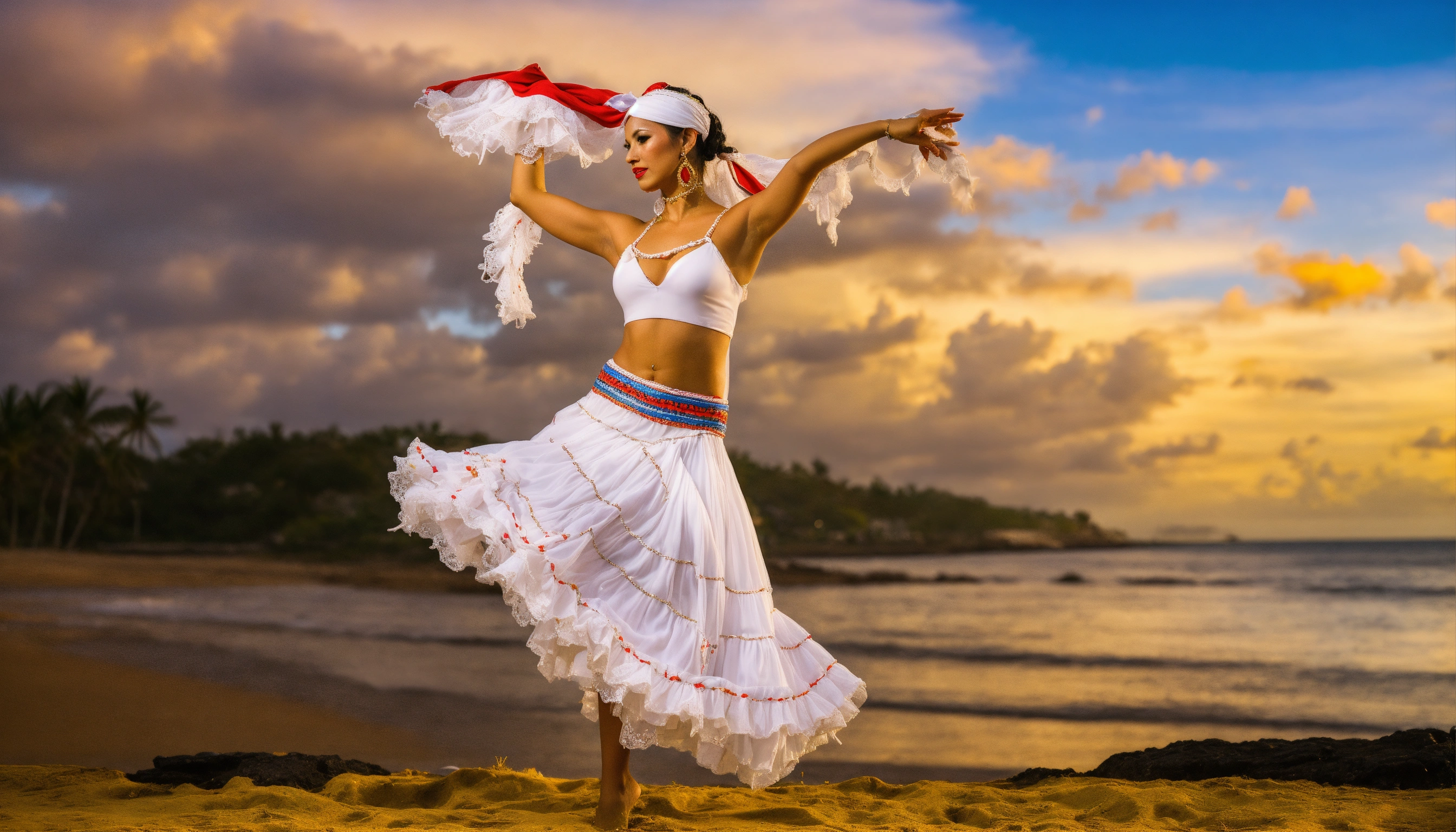 Traditional salsa dancer from puerto rico, she is wearing traditional white salsa dress and head wrap