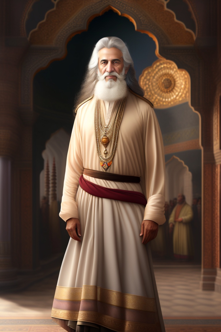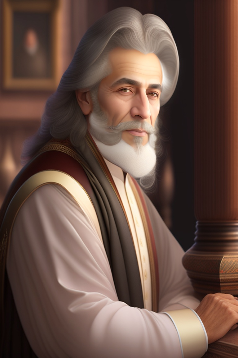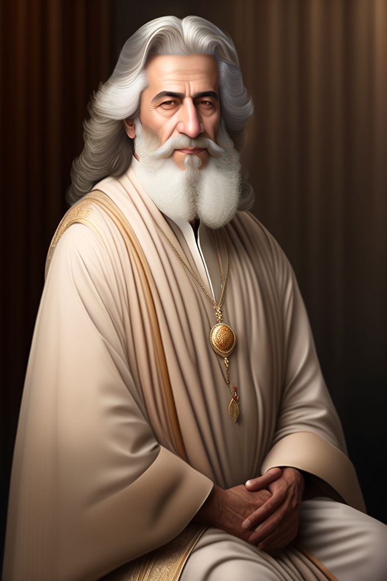 Please generate an image of imran khan with long grey hair, a beard without a mustache, and dressed in a dervish attire. the dervish dress should be traditional and simple, reflecting a humble and spiritual demeanor. the image should capture his serene presence and the essence of his dervish-like appearance