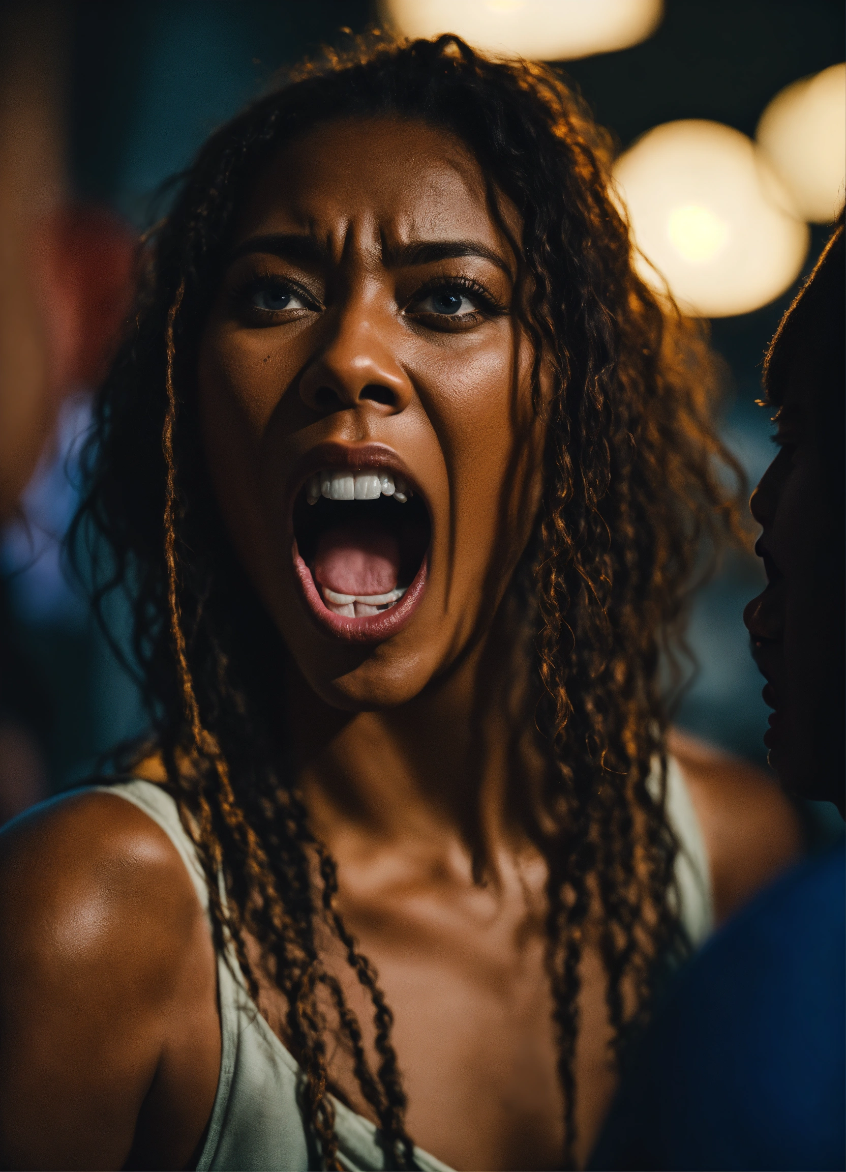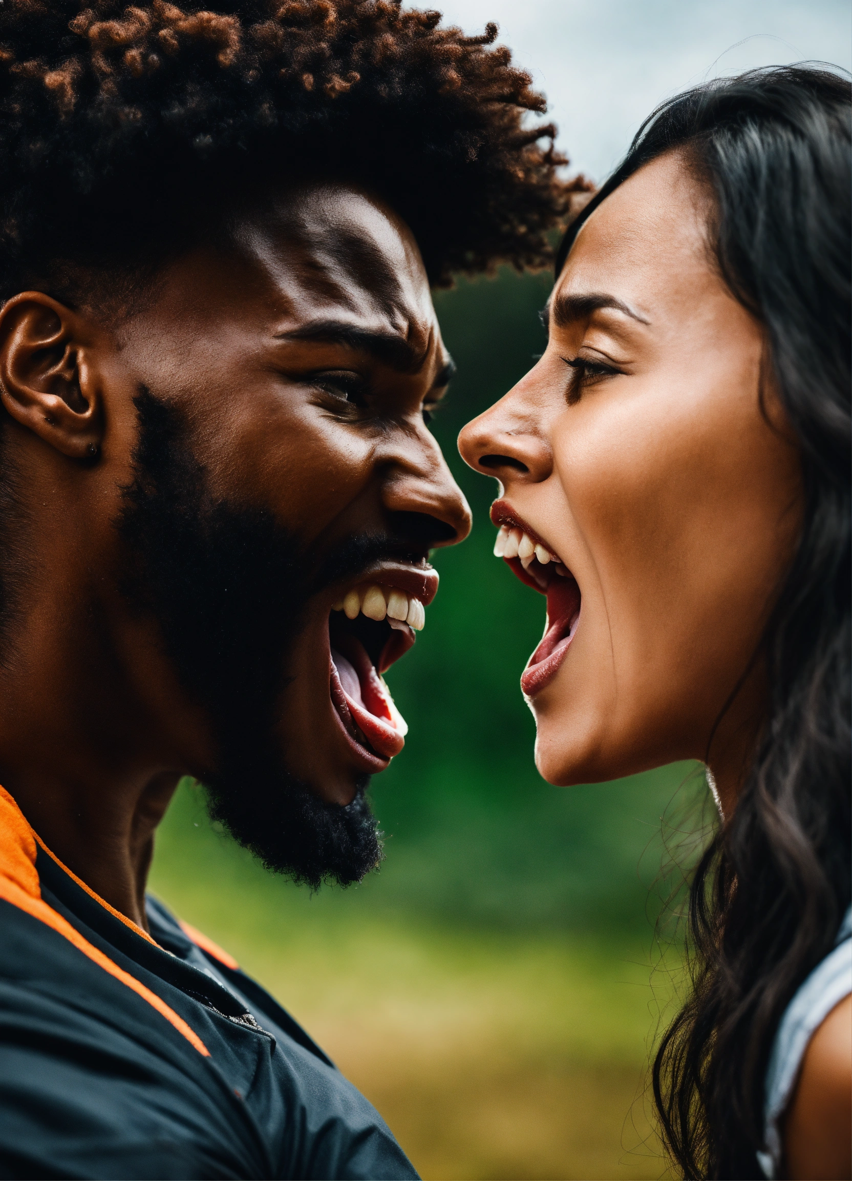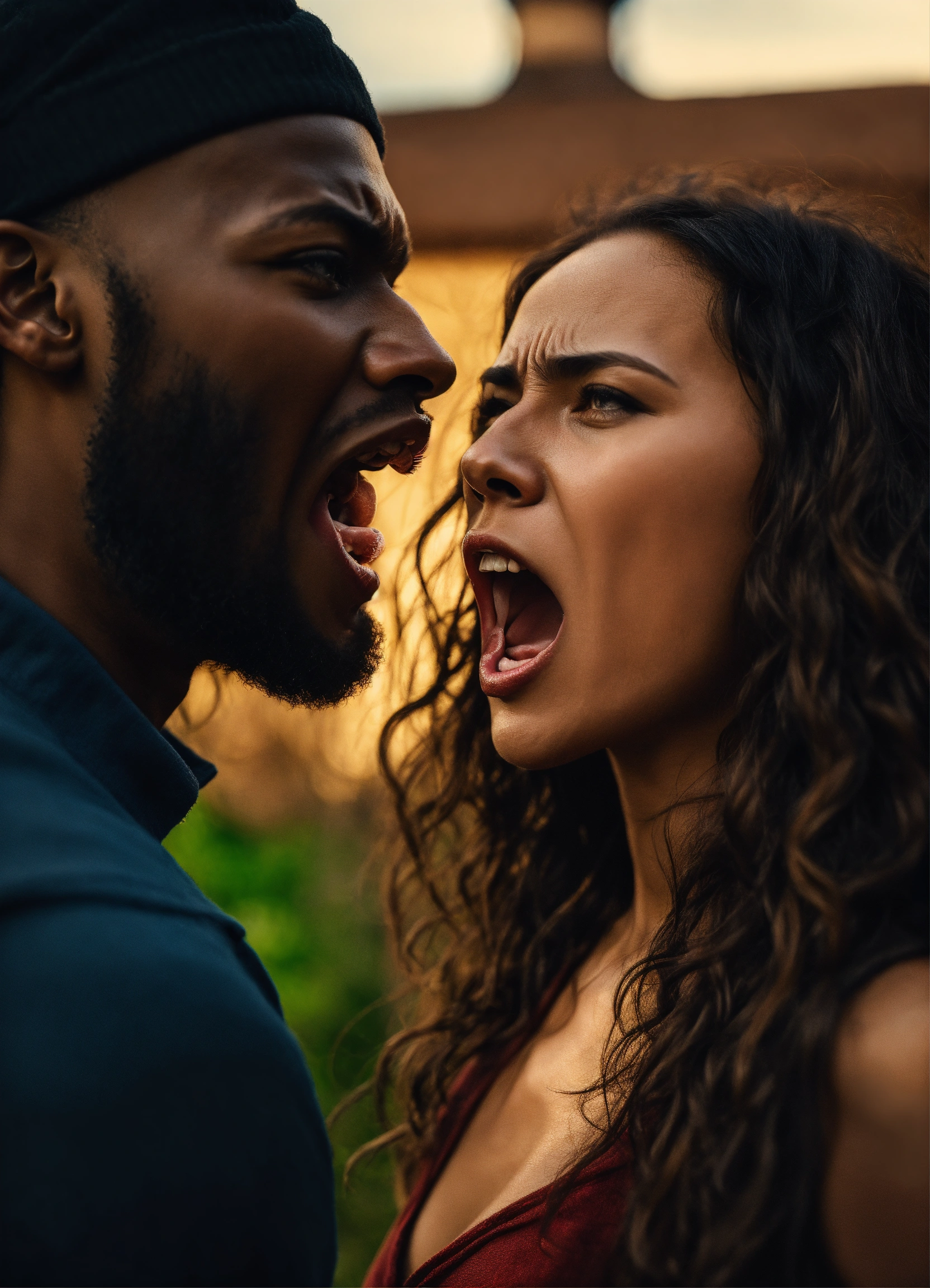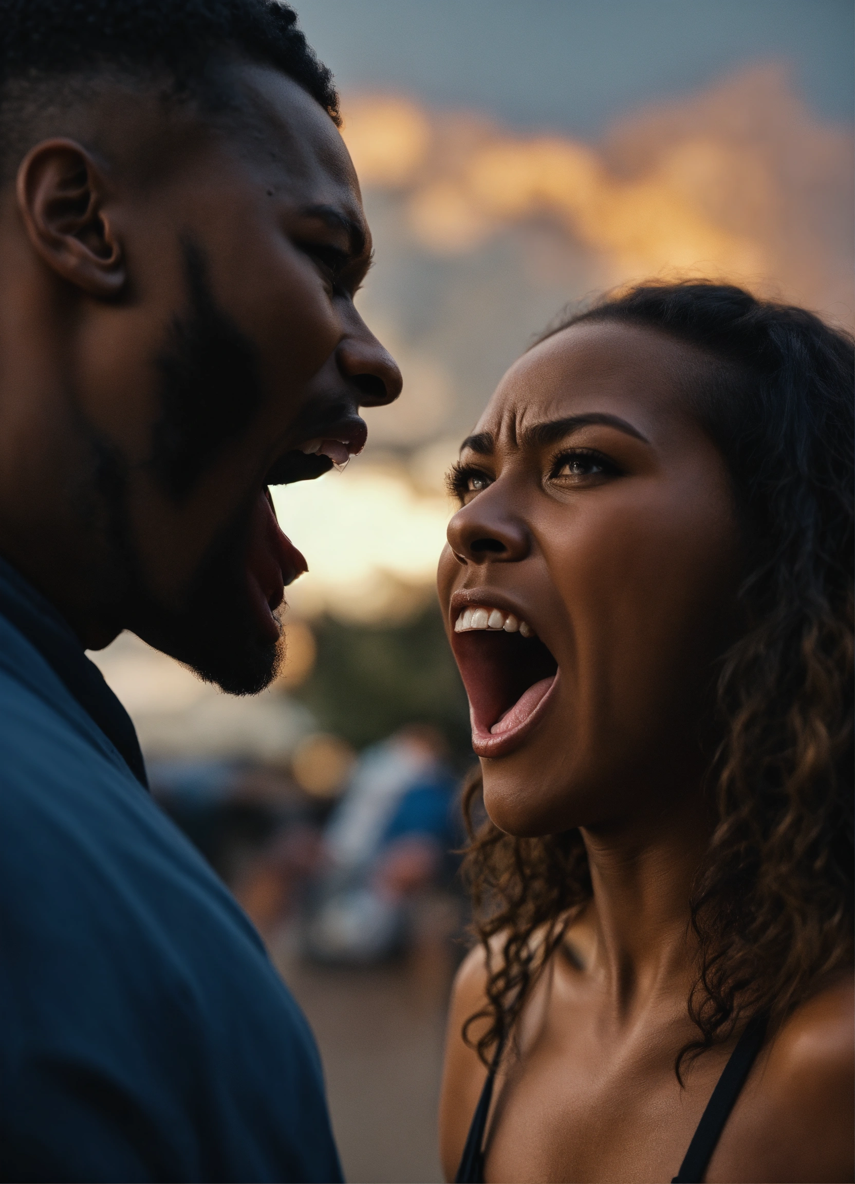 Cinematic photo blackman woman screaming at man