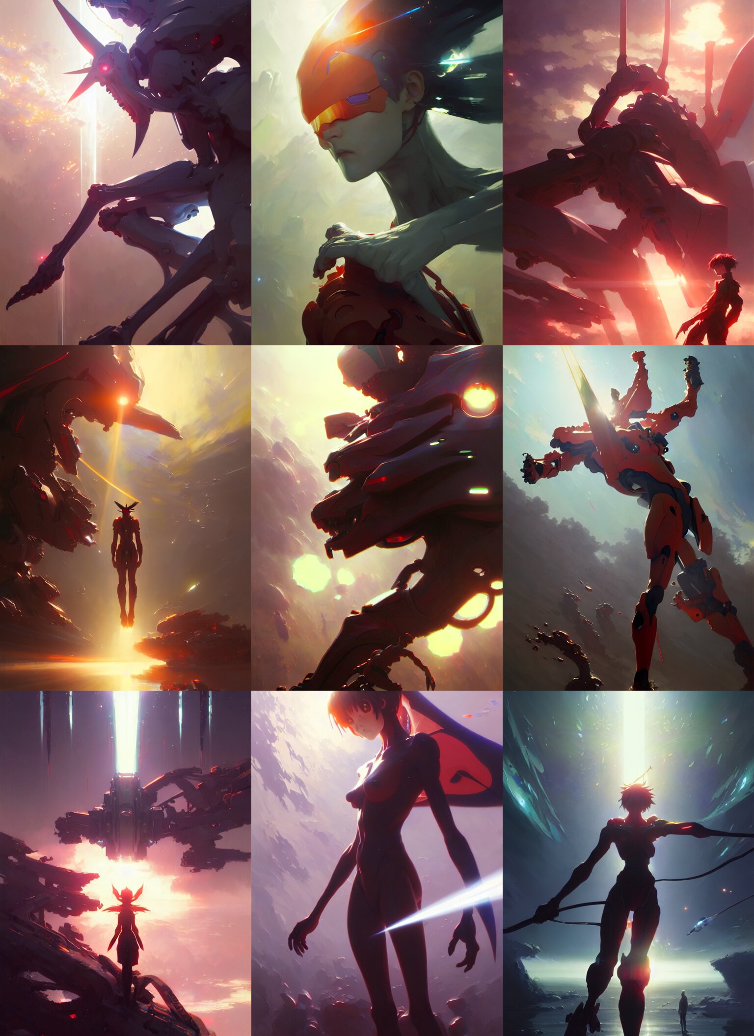 Evangelion, intricate, lens flare, bloom, sharp focus, illustration, highly detailed, digital painting, concept art, matte, art by ruan jia and wlop and greg rutkowski, masterpiece