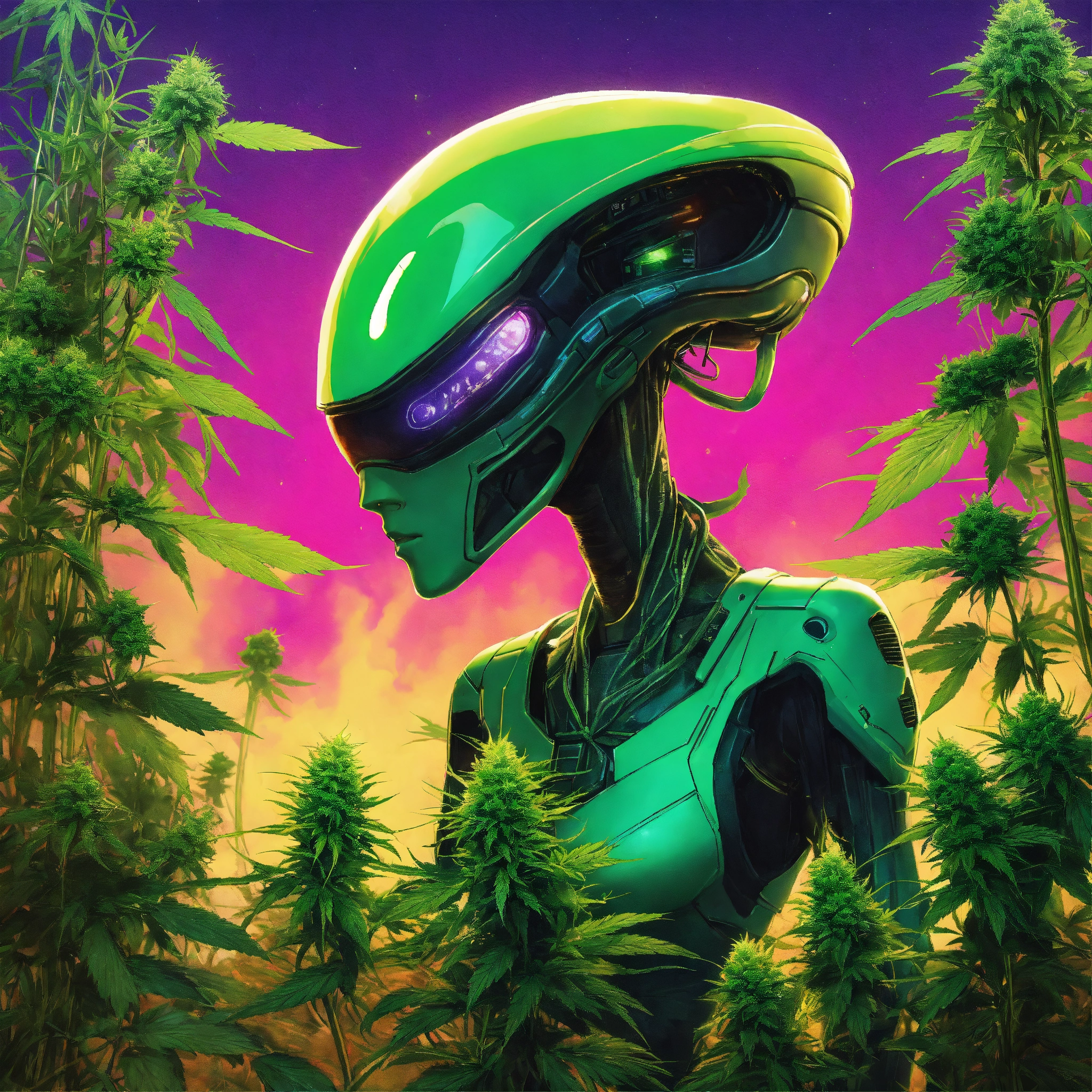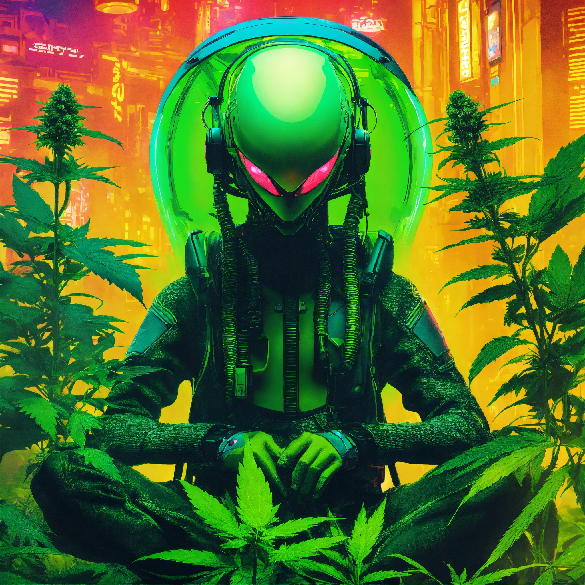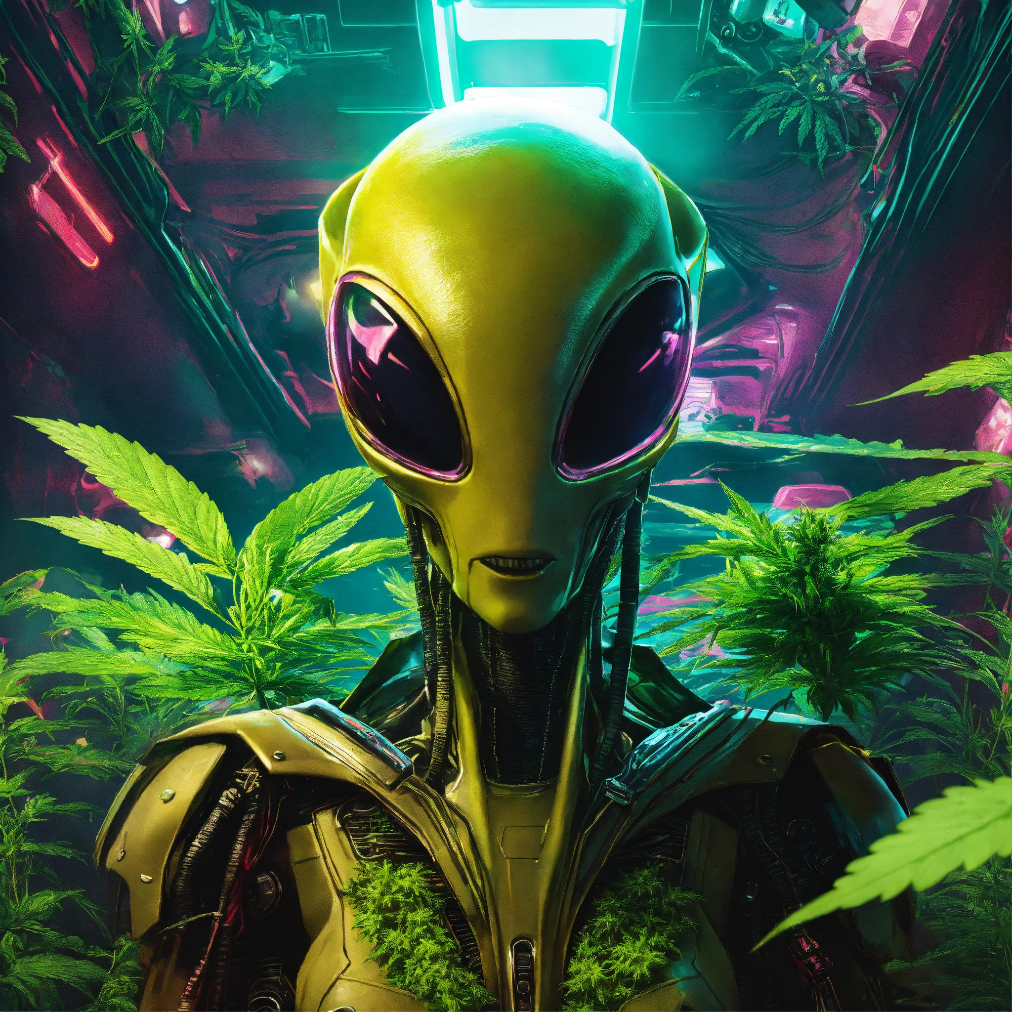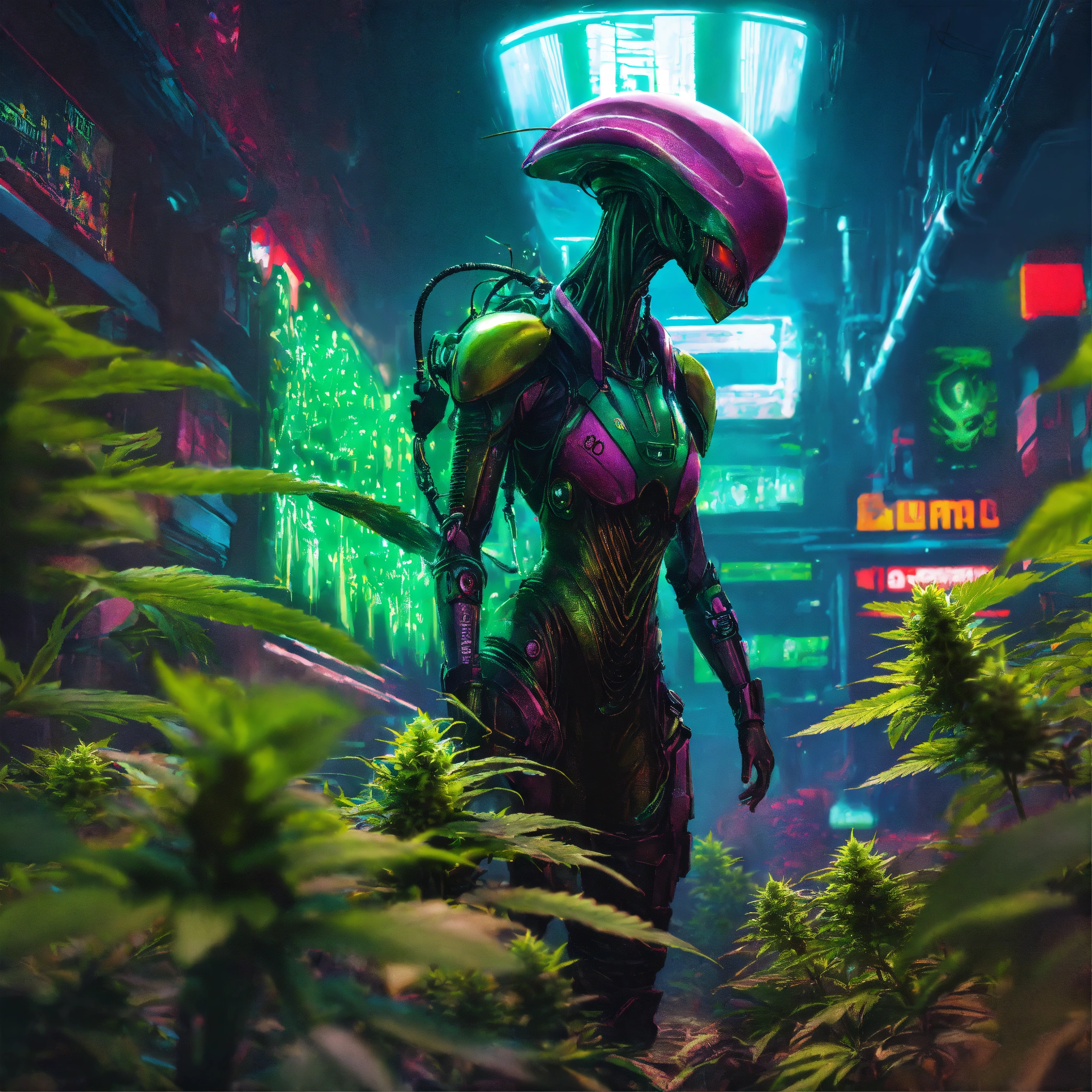 Cyberpunk advertising poster of alien
