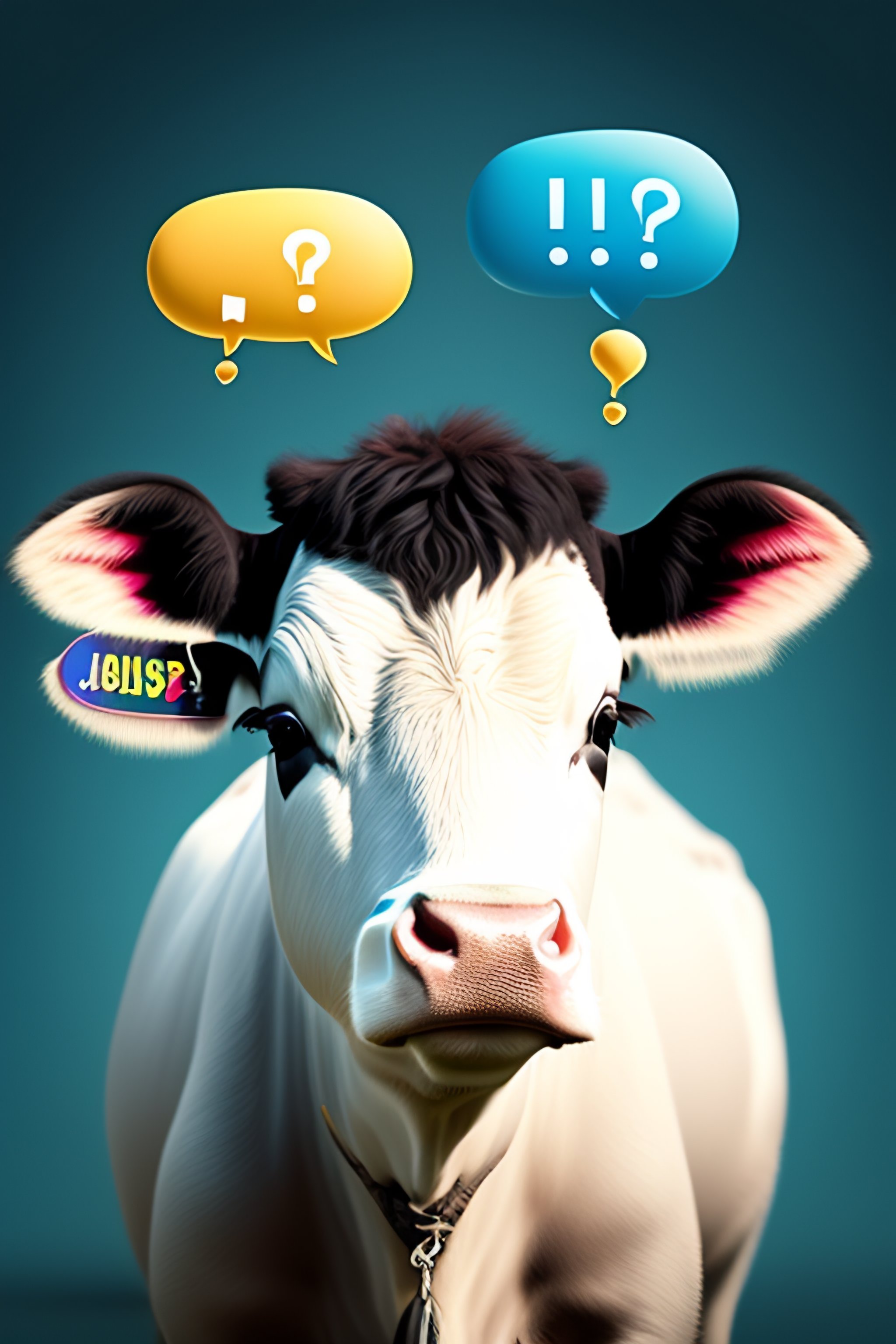 Cute cow looking confused with a speech bubble saying "what is the question"