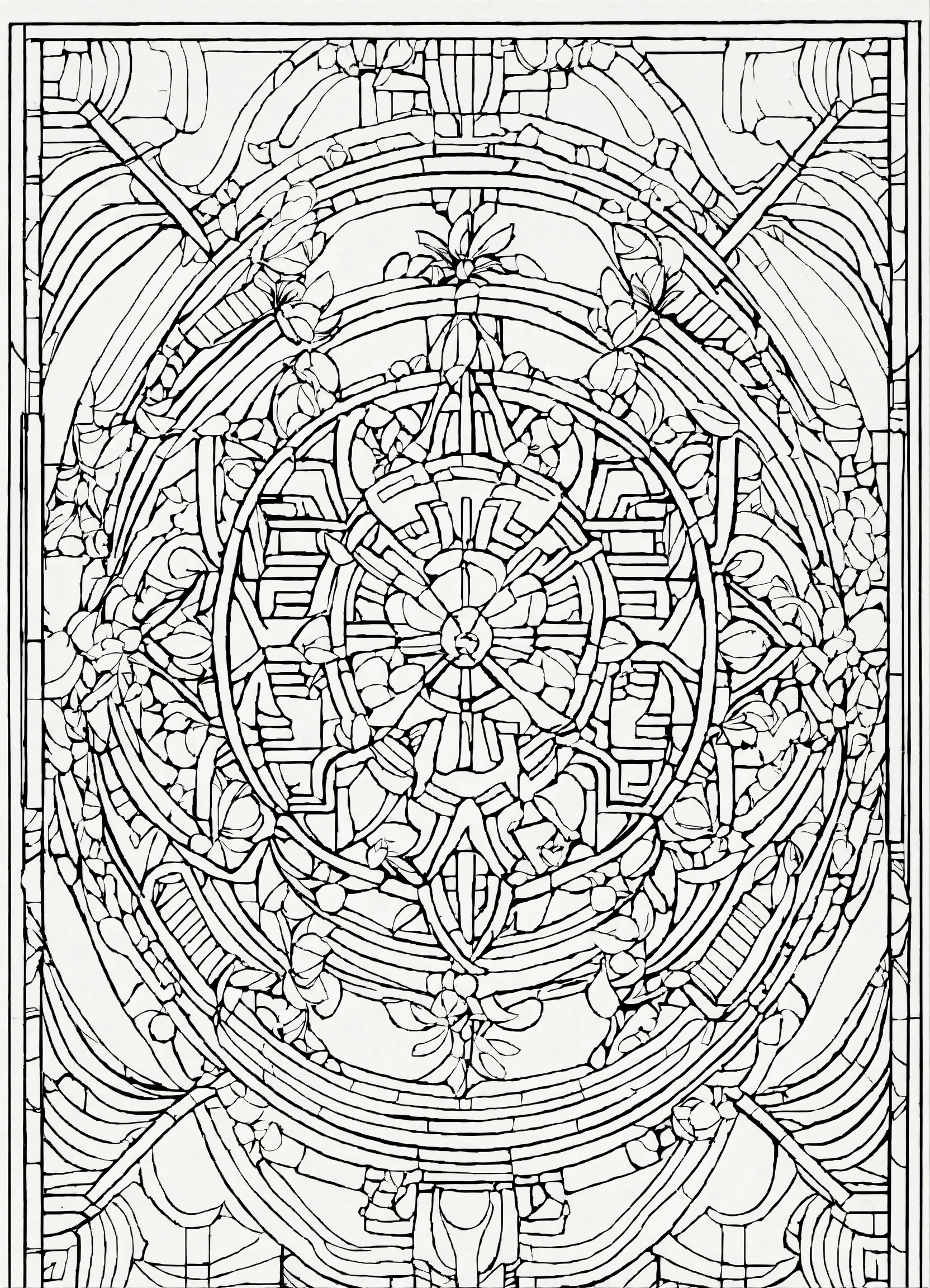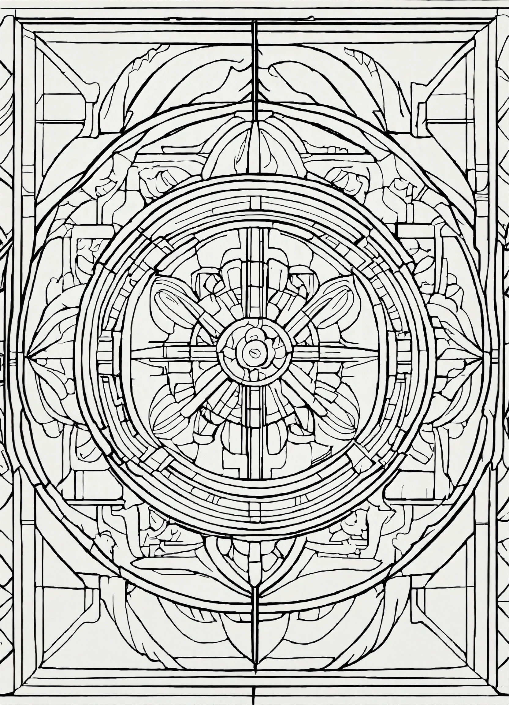 Coloring page for adults, bold lines, dark lines, symmetrical, white background, clean line art, fine line art, seal.