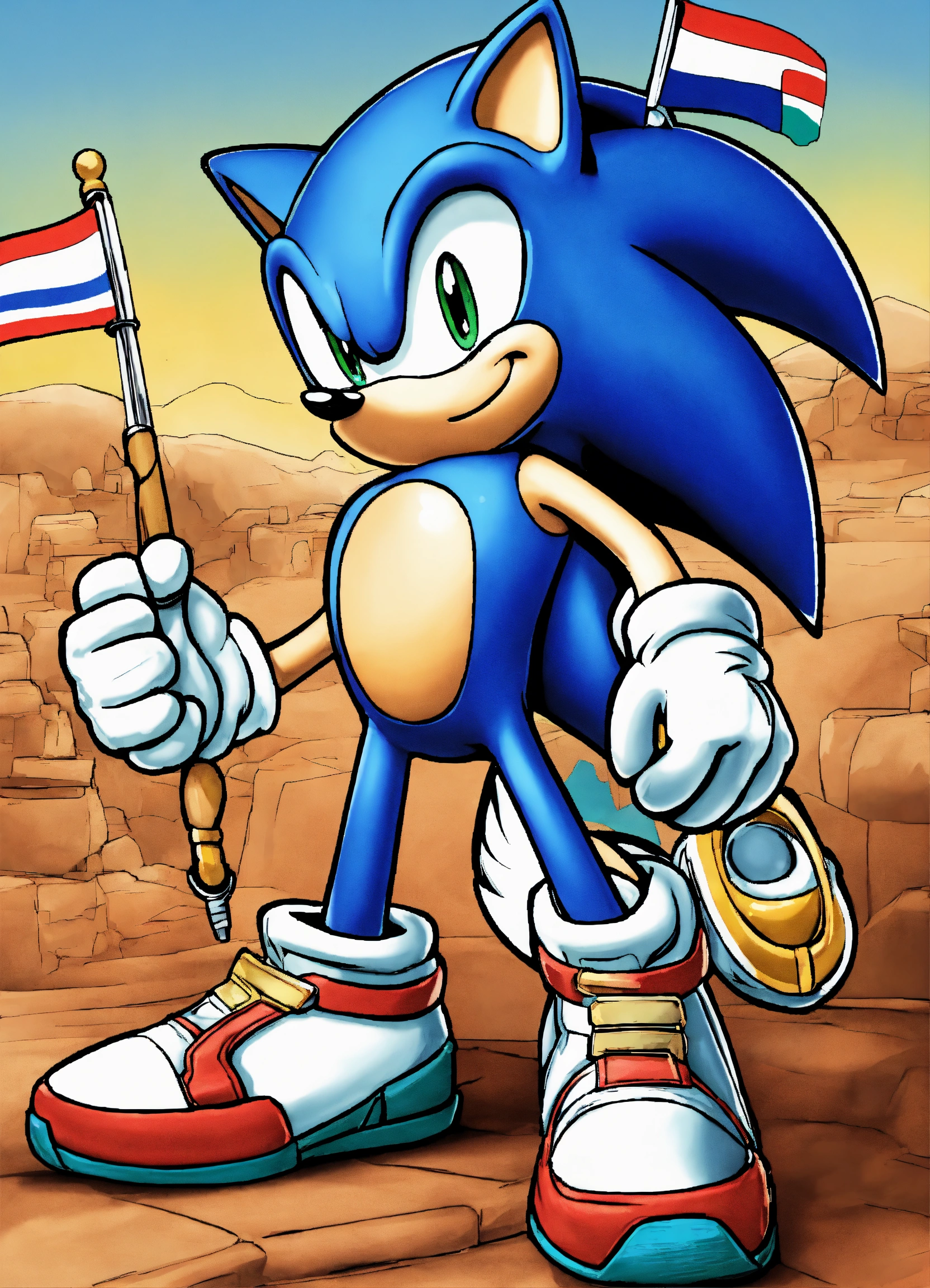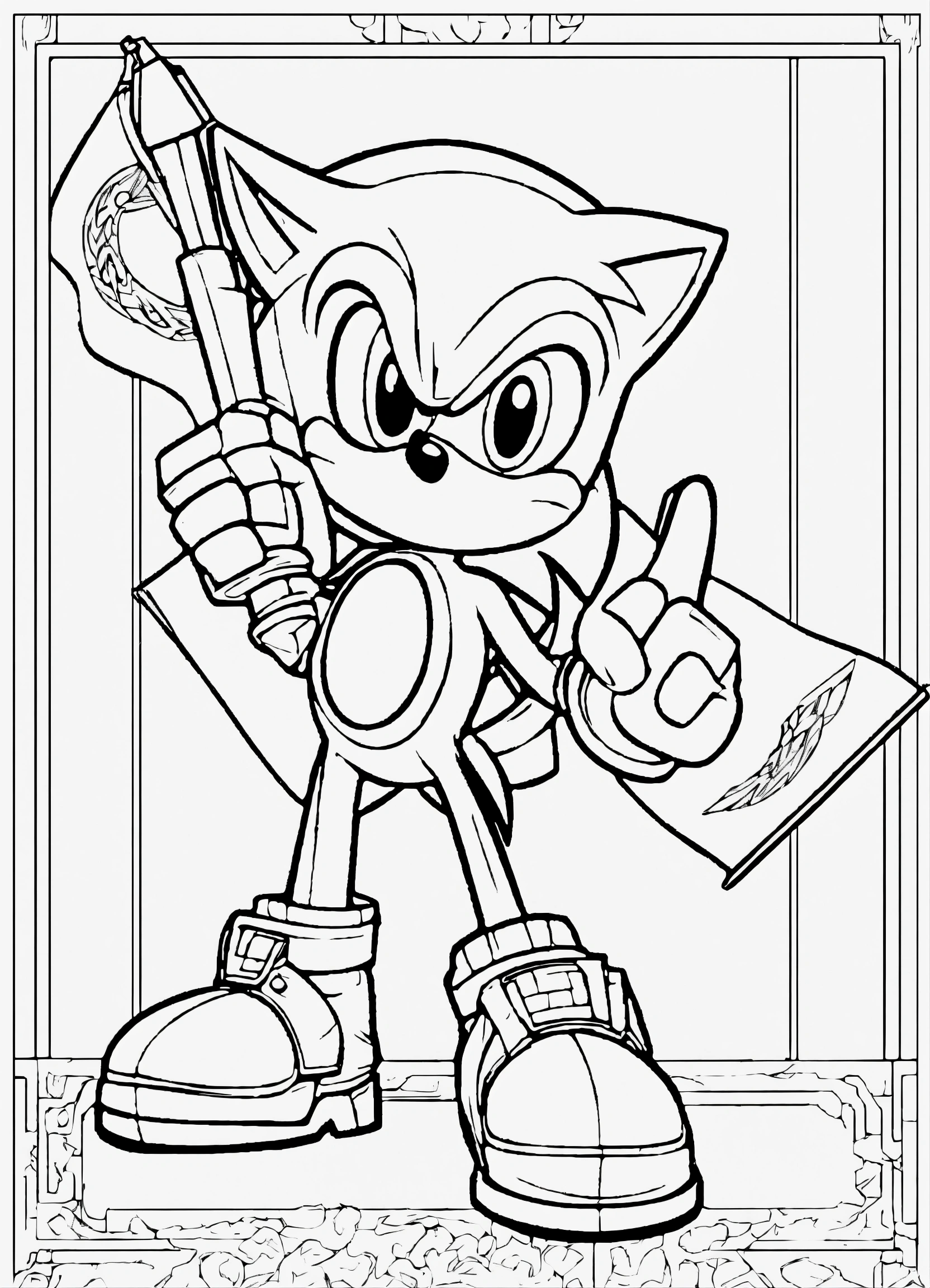 Coloring page for children with the figure of sonic the hedgehog holding the israeli flag