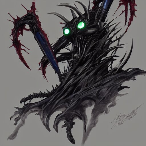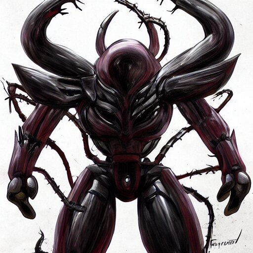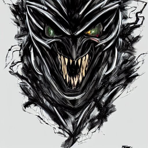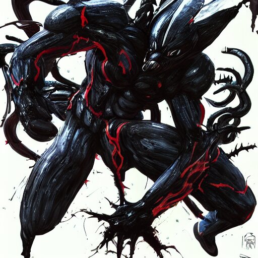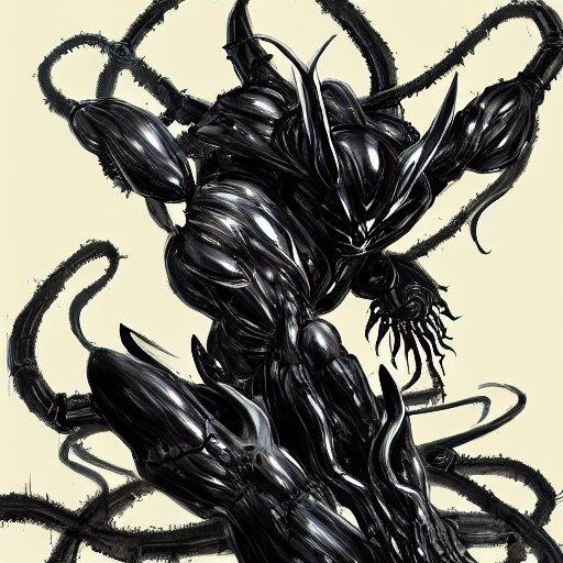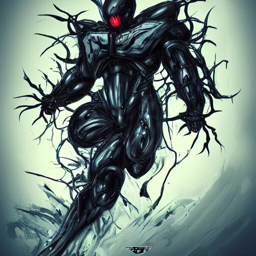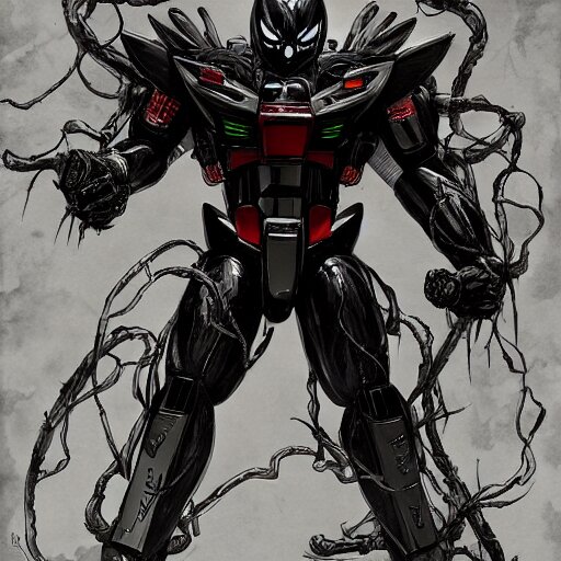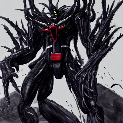 Gundam exposed to the symbiote and became venom.forest, horror, concept art, high detailed, fine art, trending on artstation, smooth draw, sharp focus.