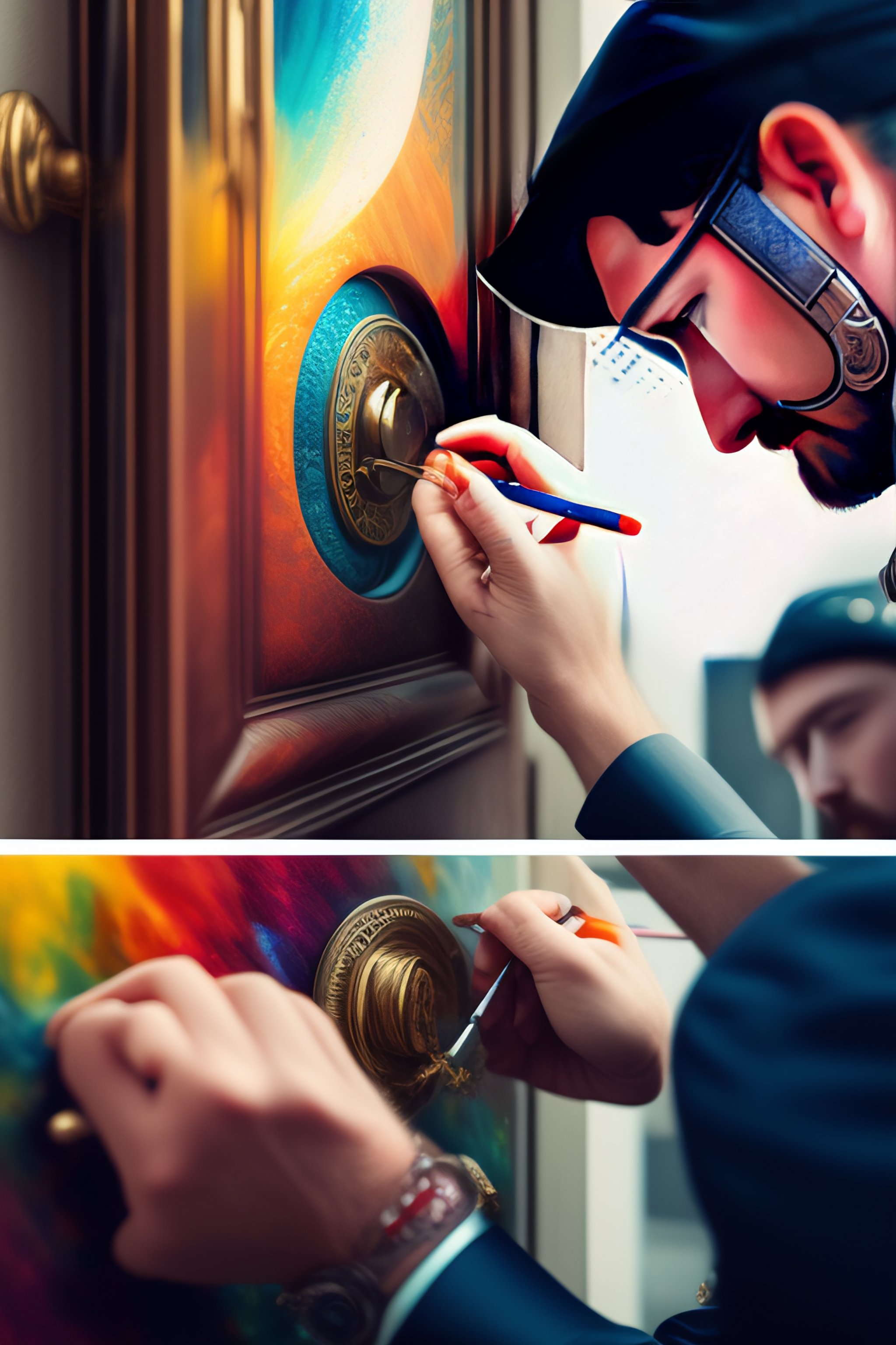 People of different professions locksmith, programmer, accountant and director work together, artpaint