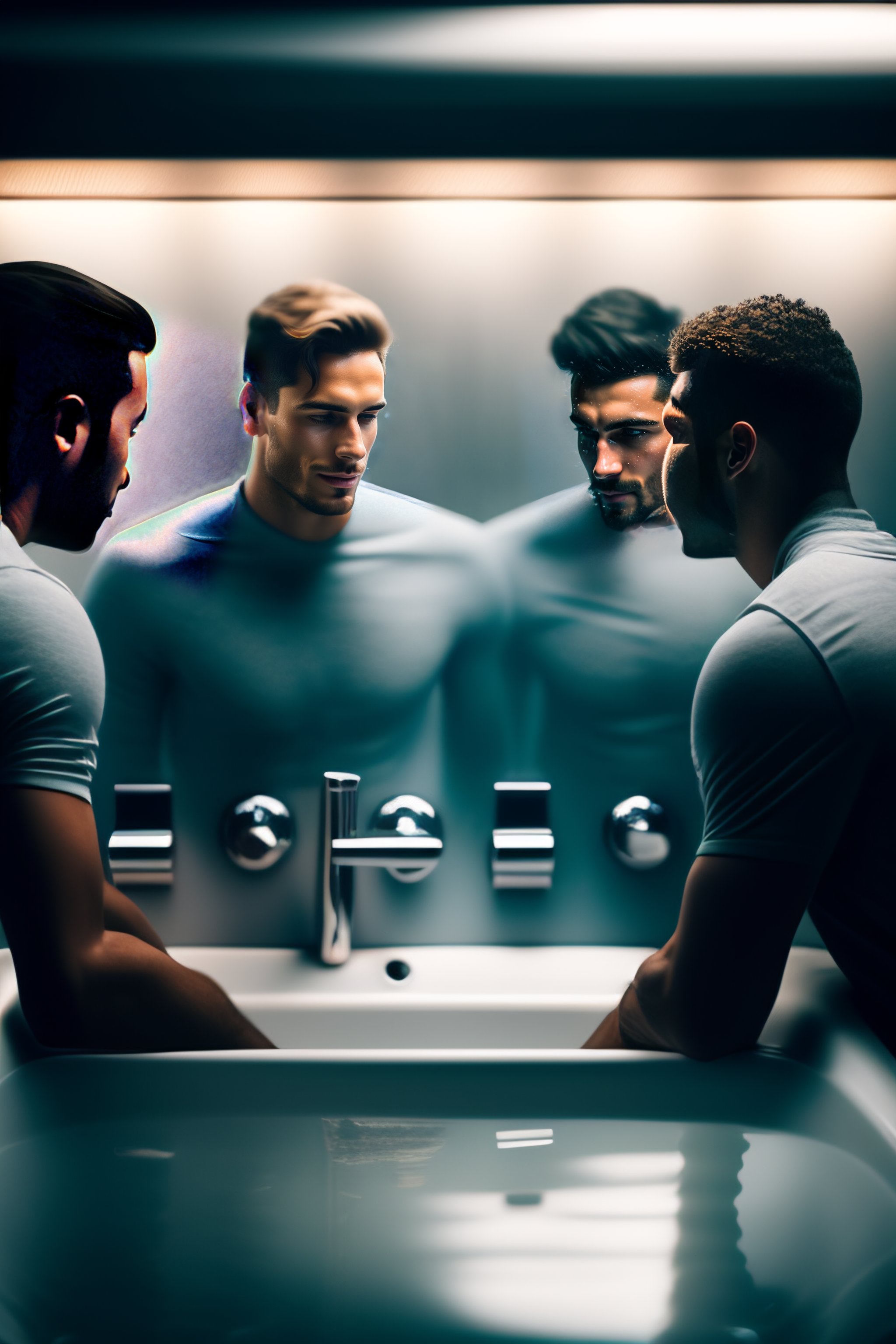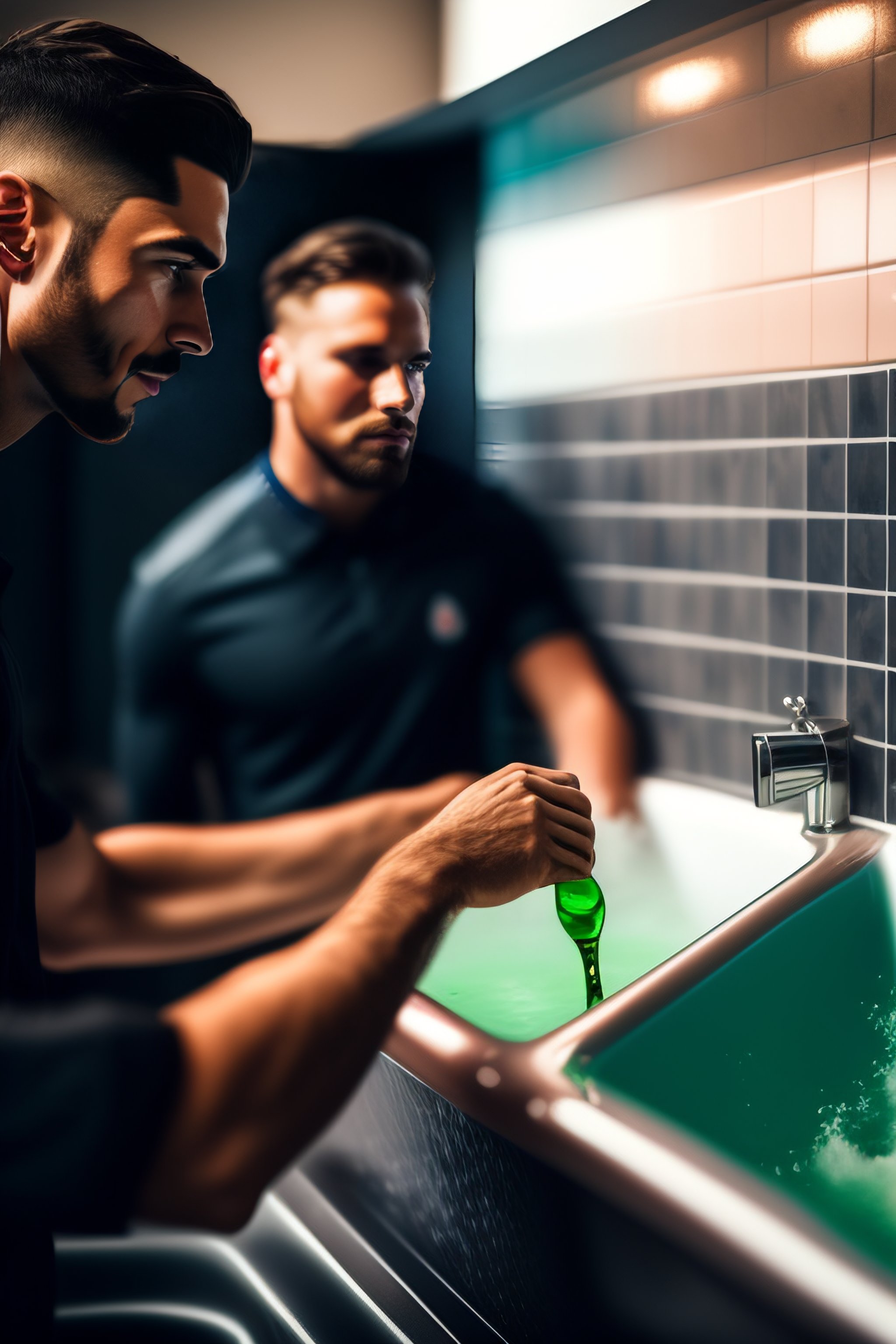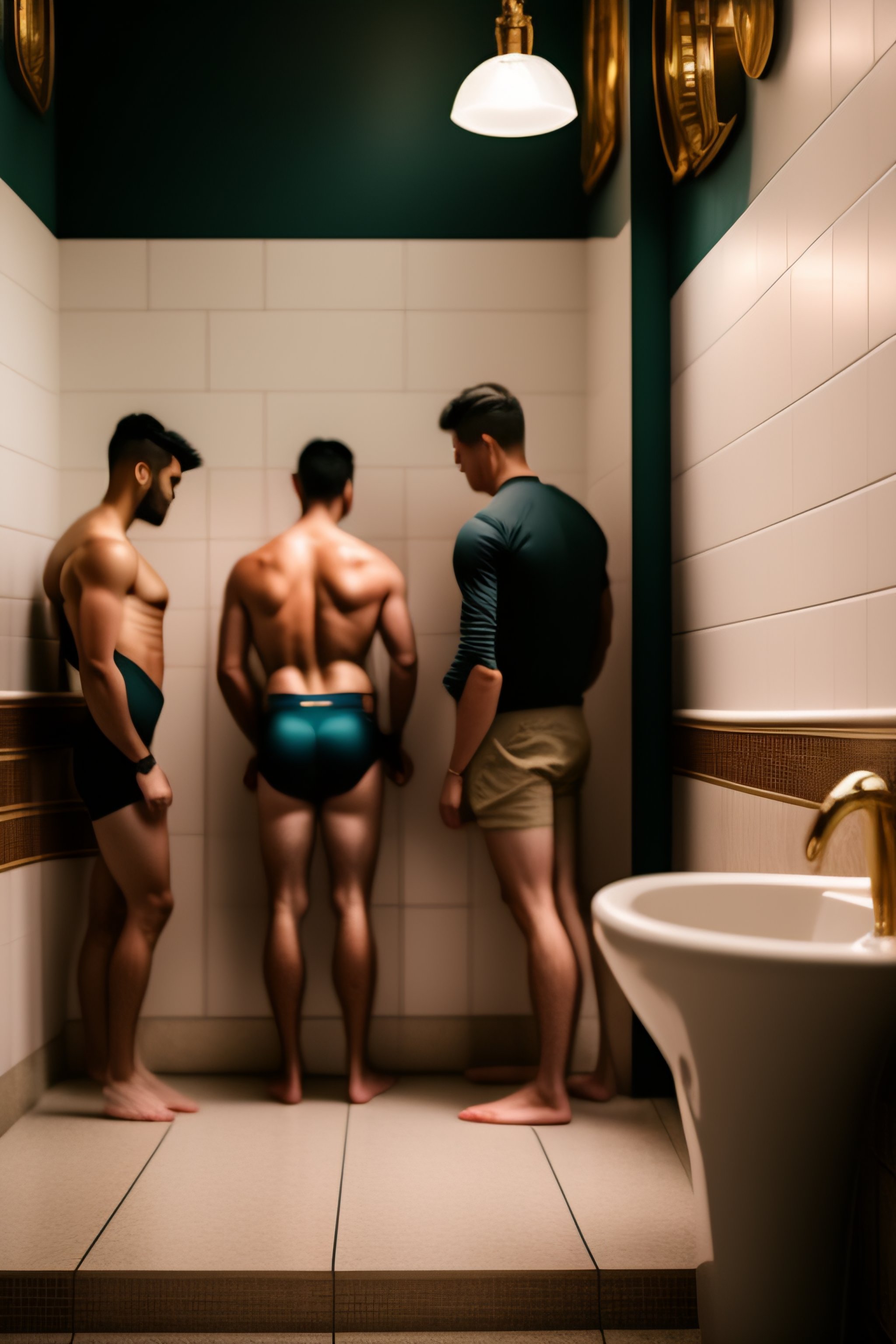 Photograph of guys using in urinals