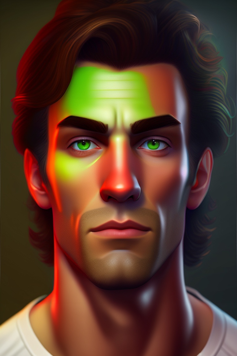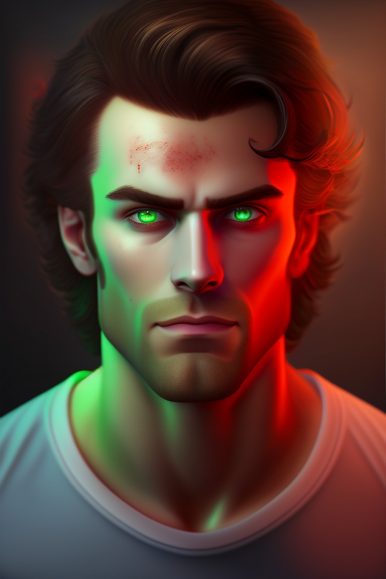 36-year-old green-eyed man, angry look, short disheveled dark brown hair of medium length, blood on the face, bloody white t-shirt, face_restore