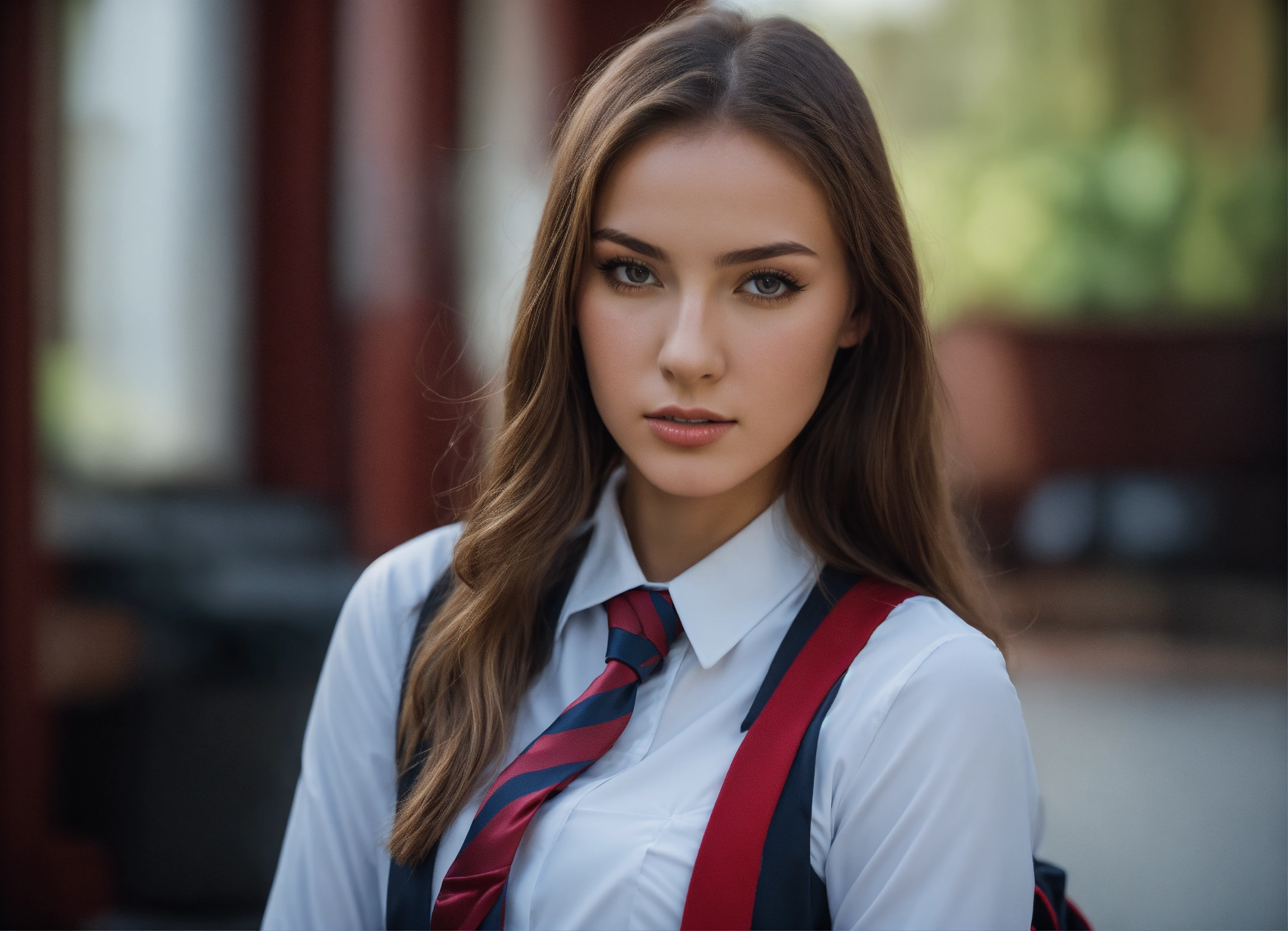 Hot adult woman, spanish girl, spain, schoolgirls in uniform, private school uniform, jacket, tight shirt, skirt, tights, feminine, school scenes, aura of beauty, relaxation, released tie, wide bust, belarussian girl, in belarus, sharp focus, 8k high definition, clothes too small and thin, undersized shirt and prominent body, shot on medium format filmschool], cinematic, 8k, masterpiece
